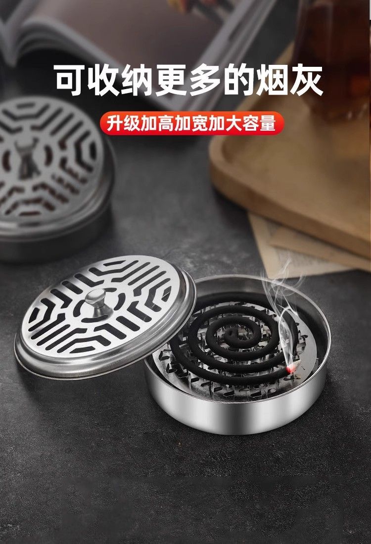防火蚊香盒大号不锈钢蚊香托盘家用带盖蚊香架便携式蚊香炉接灰盘