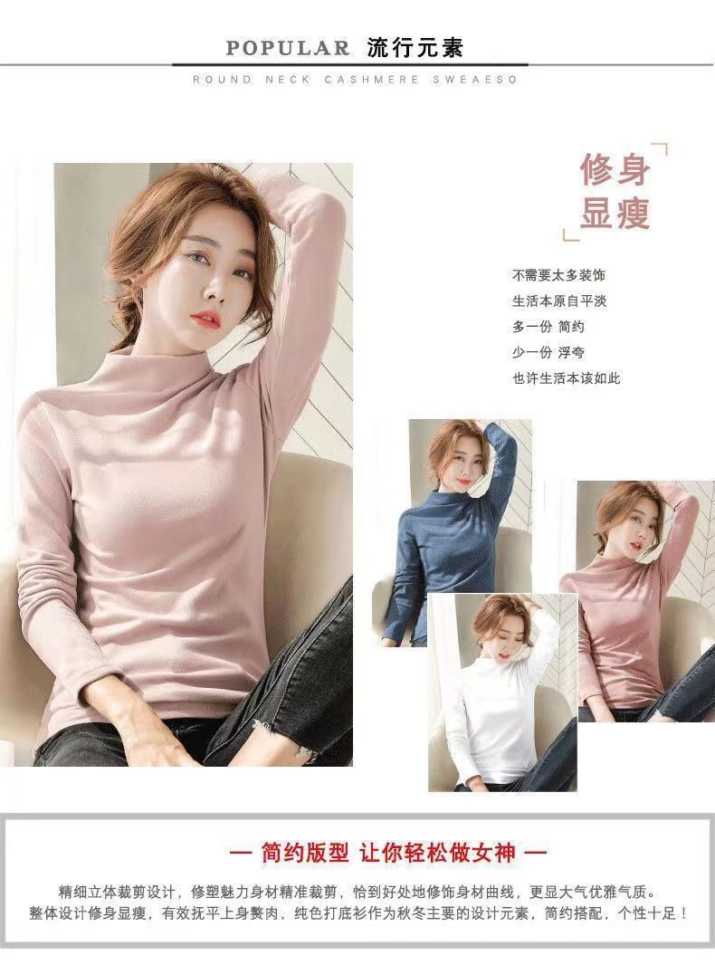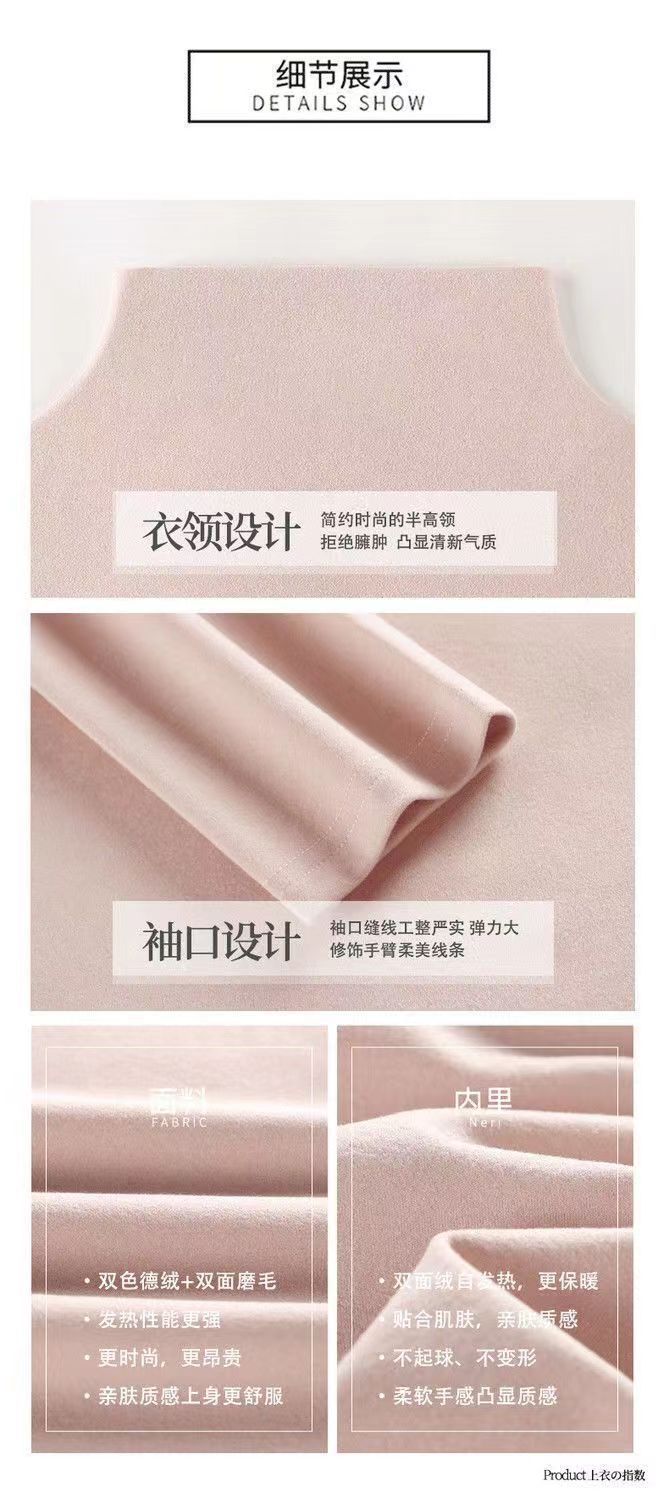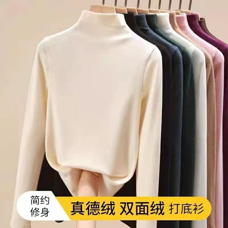 秋冬款德绒保暖内衣半高领打底衫女内搭长袖修身显瘦百搭大码上衣