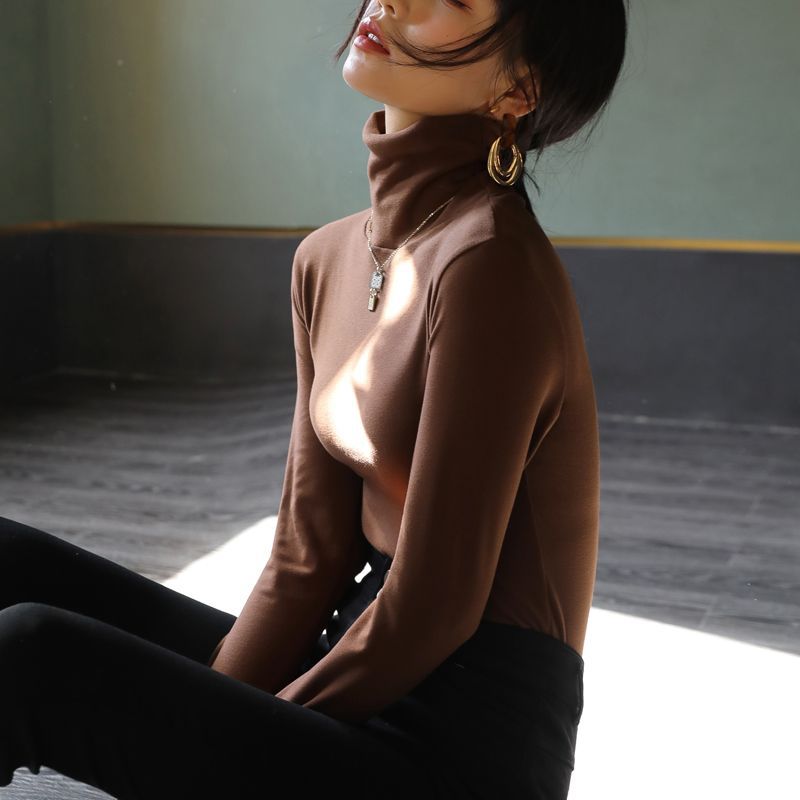 纯色德绒堆堆高领打底衫女内搭秋冬季加绒加厚长袖打底衣紧身t恤