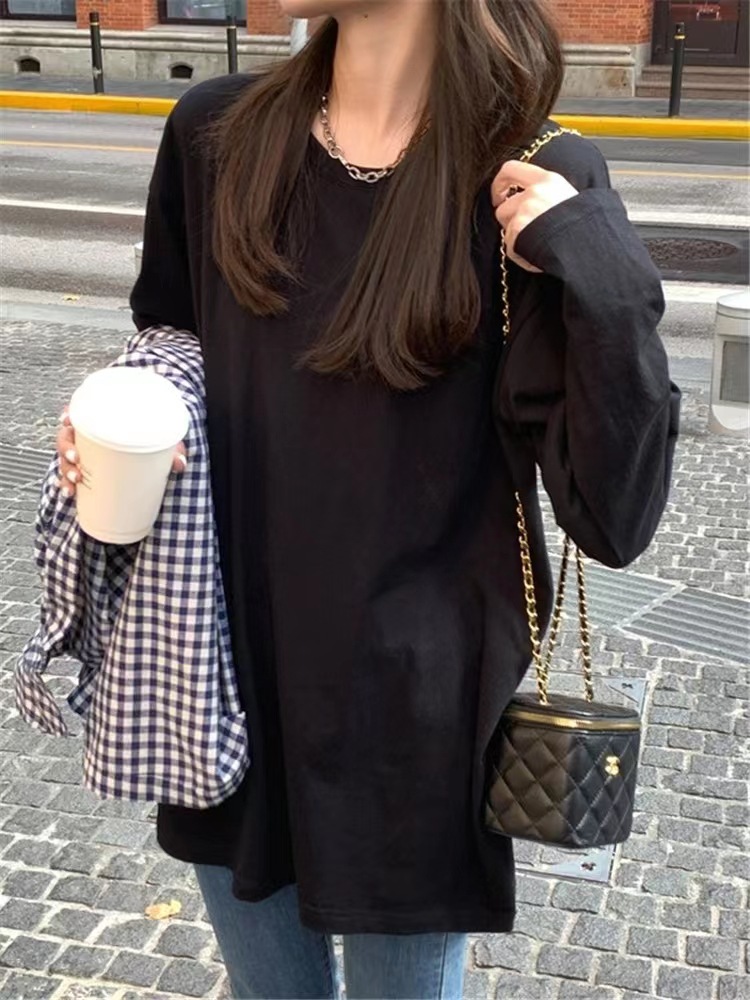 秋冬白色长袖t恤纯棉卫衣中长款打底衫女内搭遮屁股加绒德绒上衣