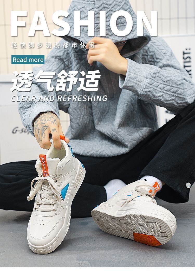 春季男鞋新款透气高帮鞋子男款潮流百搭小白鞋厚底运动鞋休闲板鞋