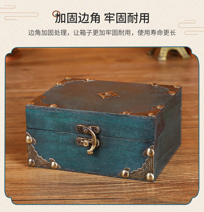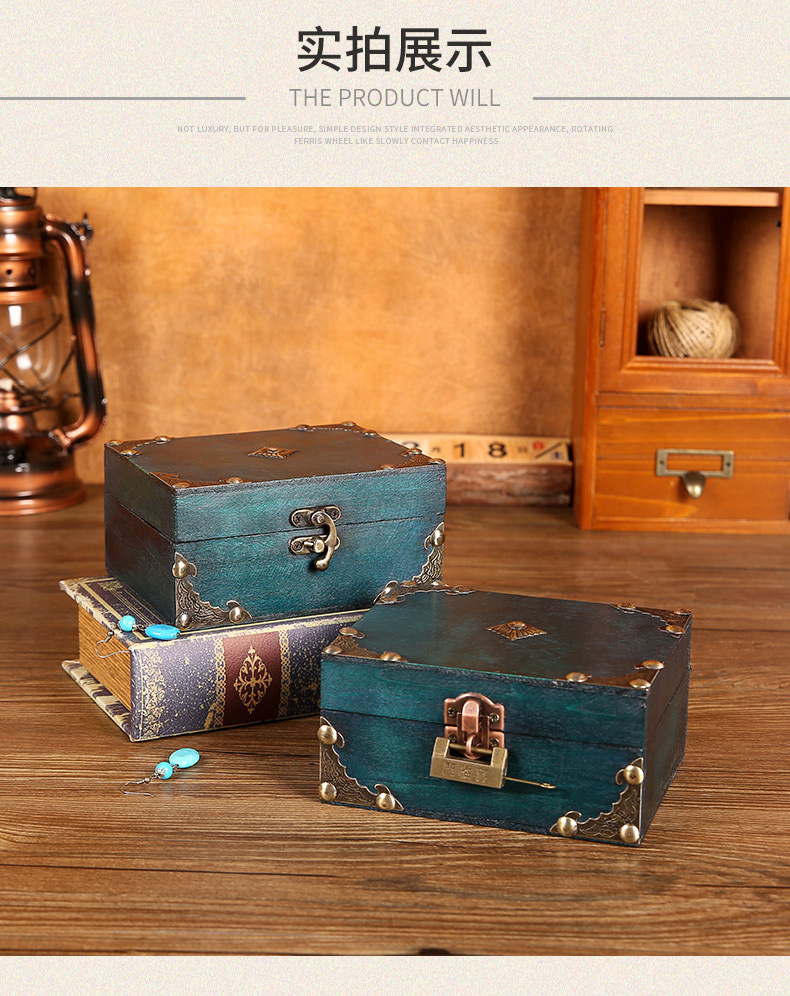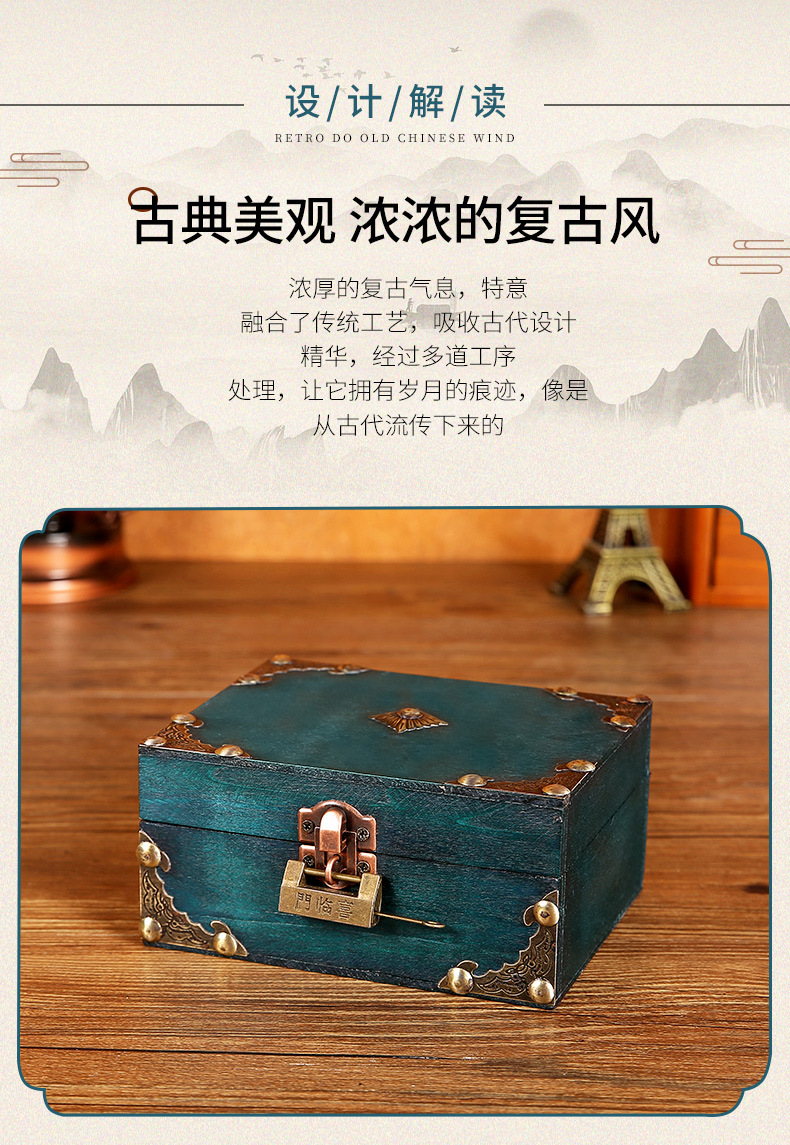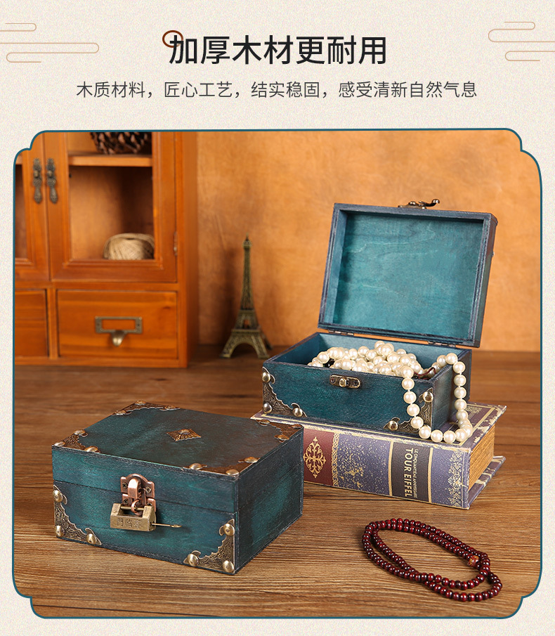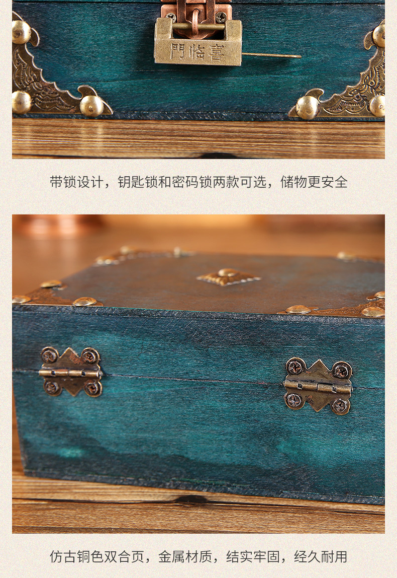 复古首饰盒木盒家用桌面证件首饰收纳带锁密码箱橱窗摆件包装木盒