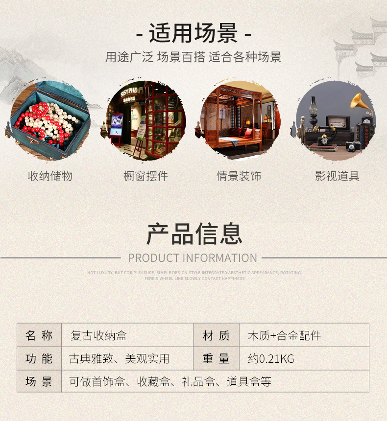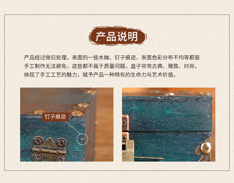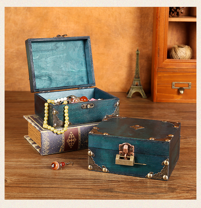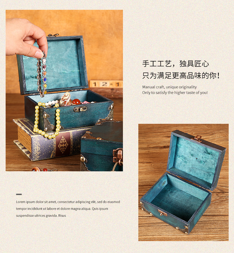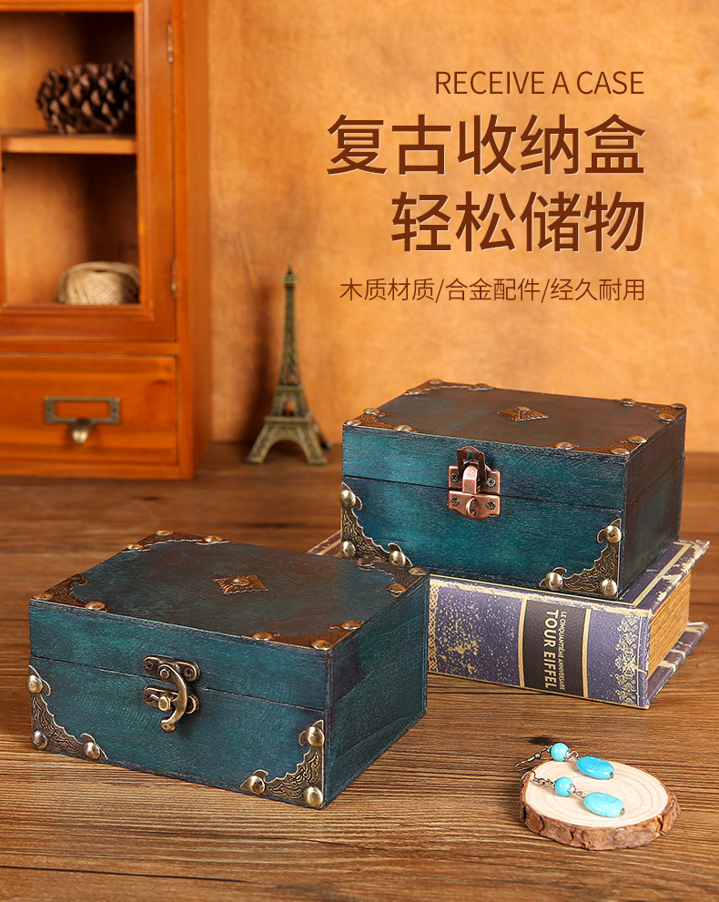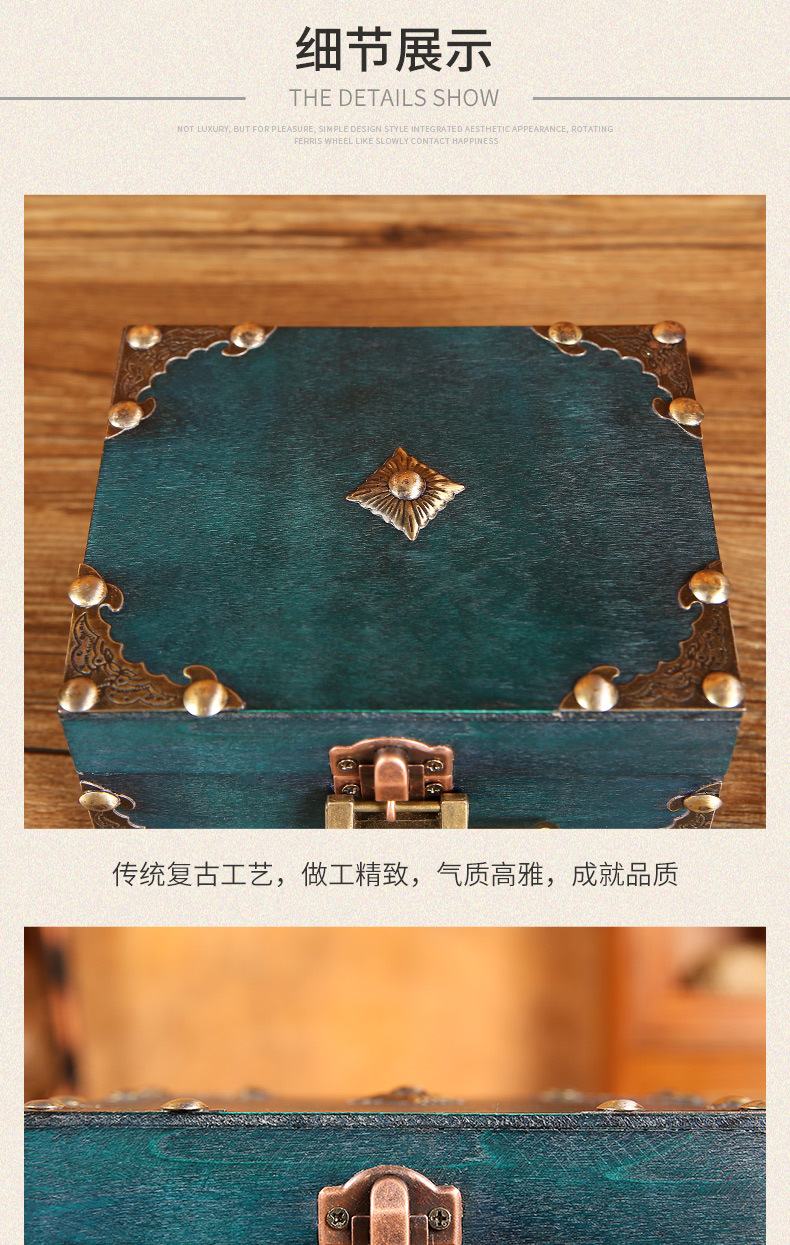 复古首饰盒木盒家用桌面证件首饰收纳带锁密码箱橱窗摆件包装木盒