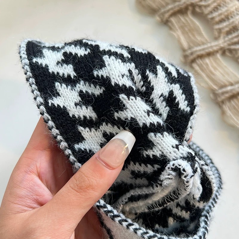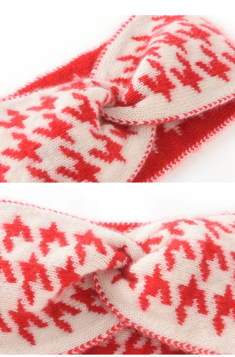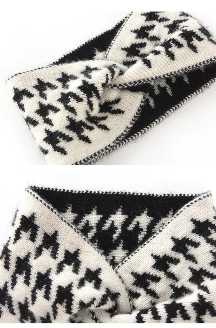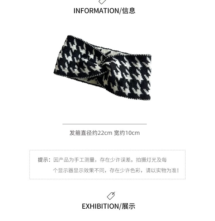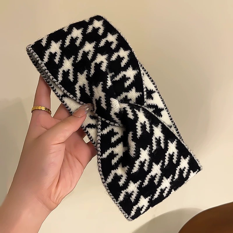 秋冬季新款网红交叉千鸟格发带女毛线针织宽边外出月子束发带头饰
