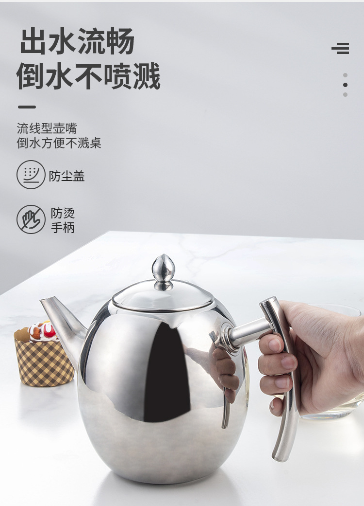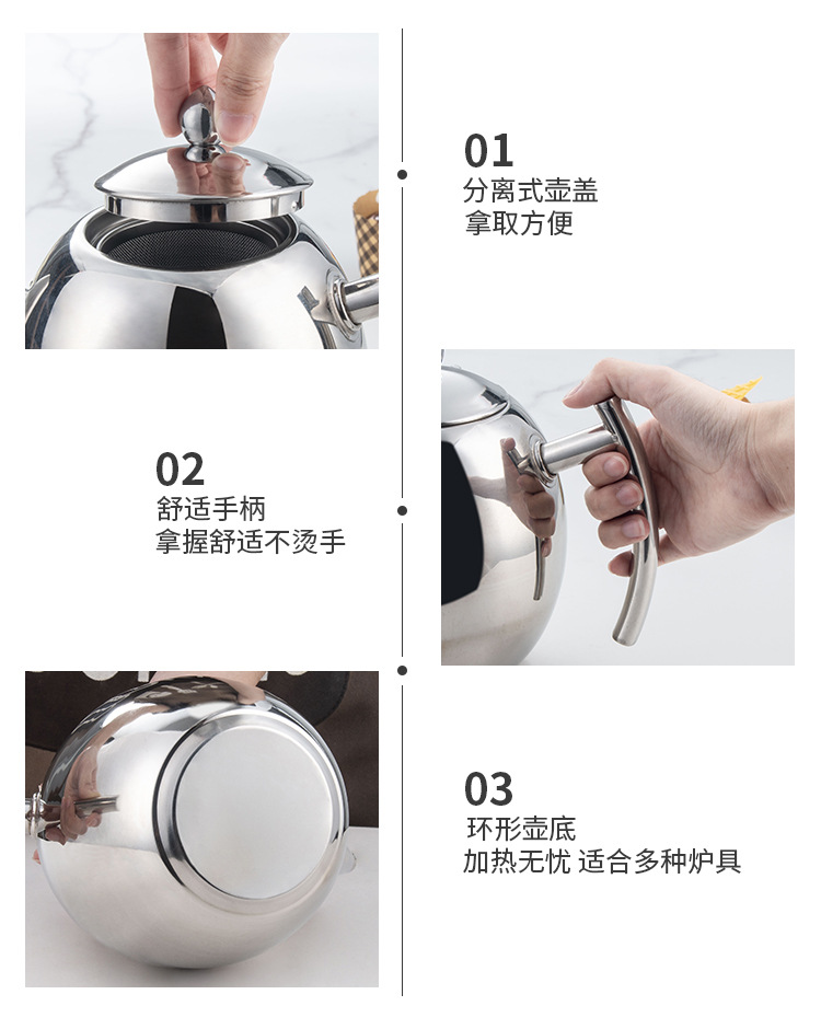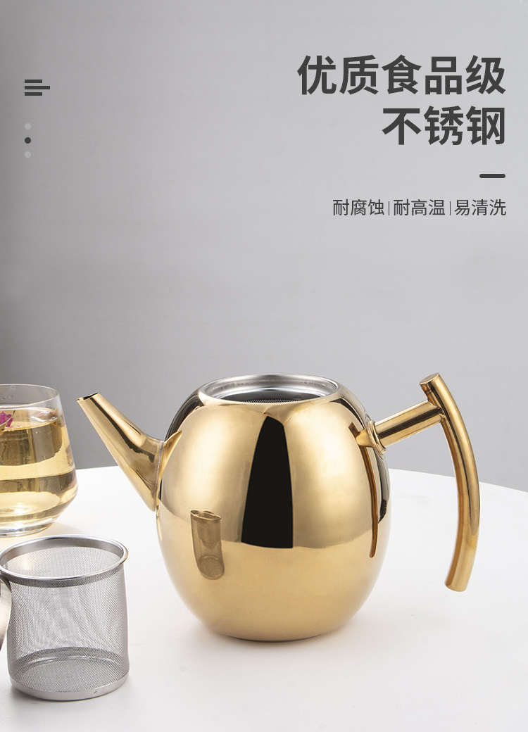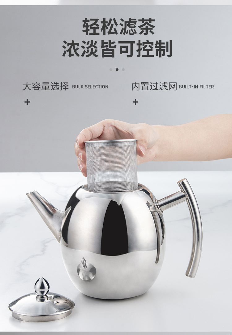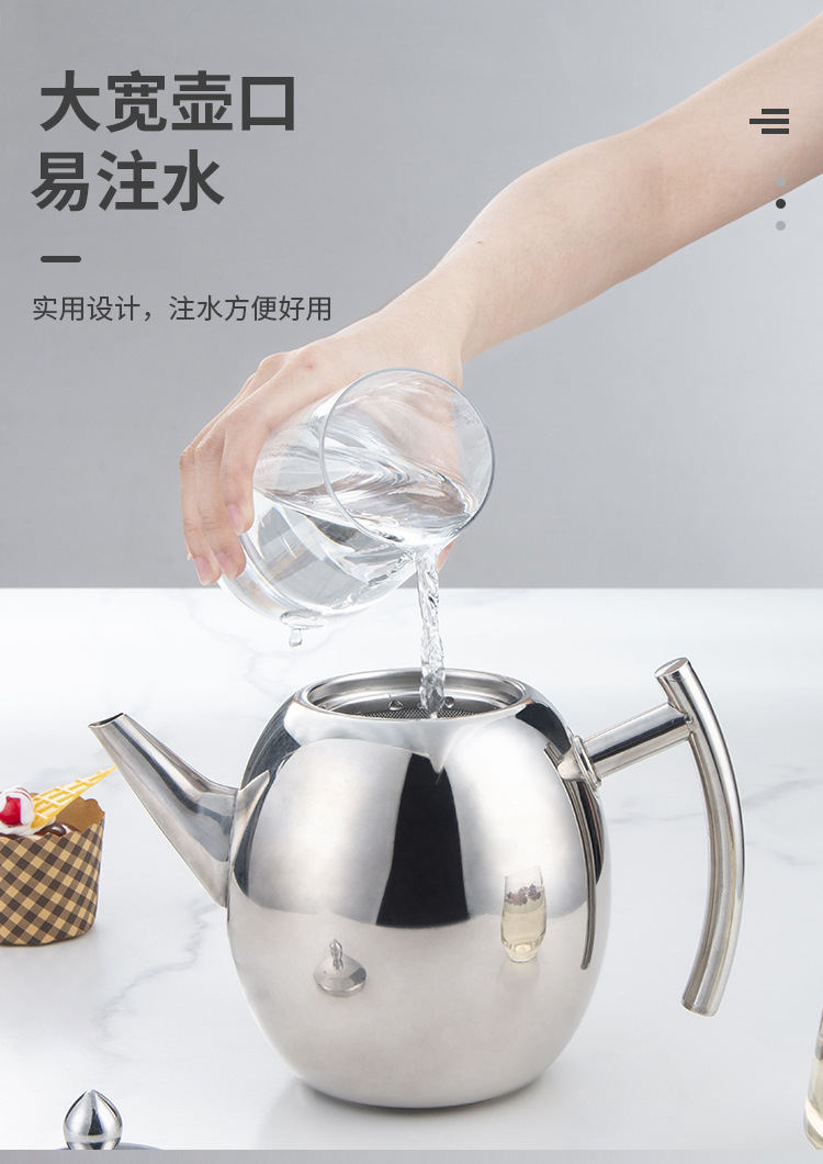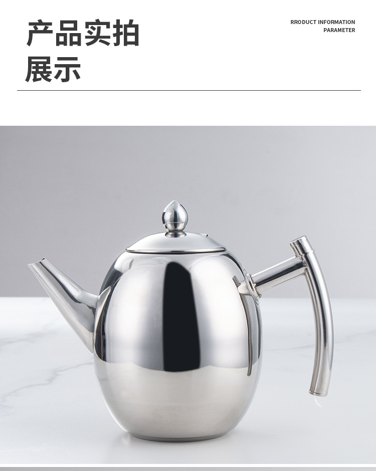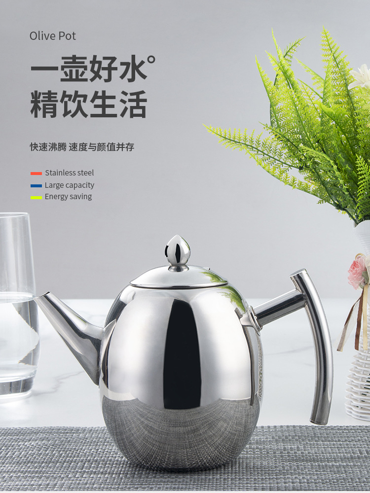 不锈钢橄榄胡酒店咖啡壶餐厅饭店茶壶带网凉水壶家用泡茶水壶平底
