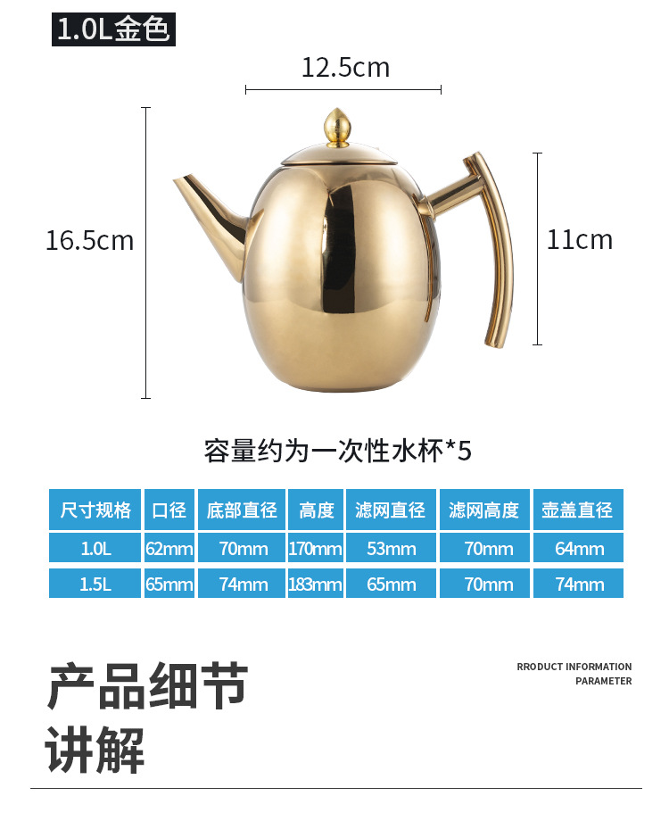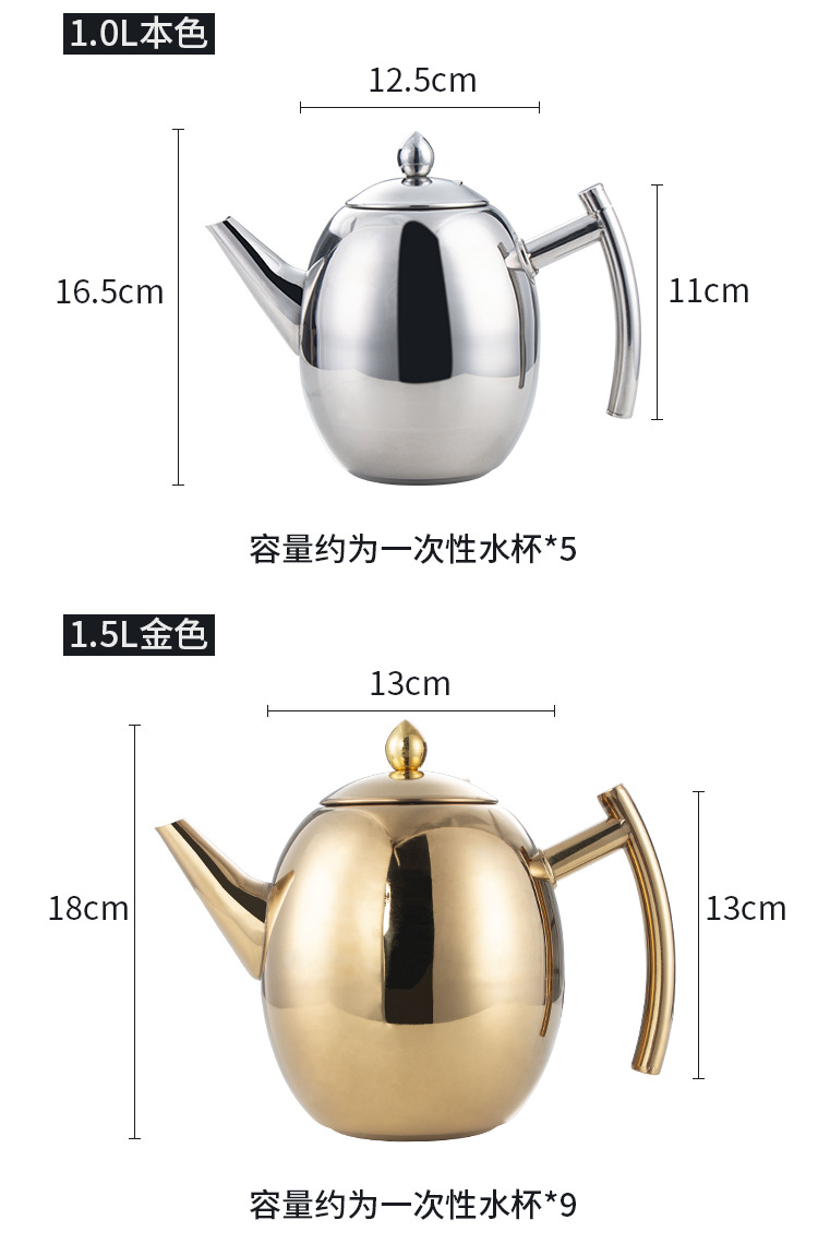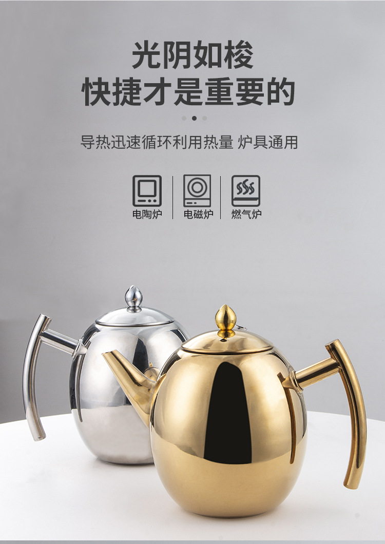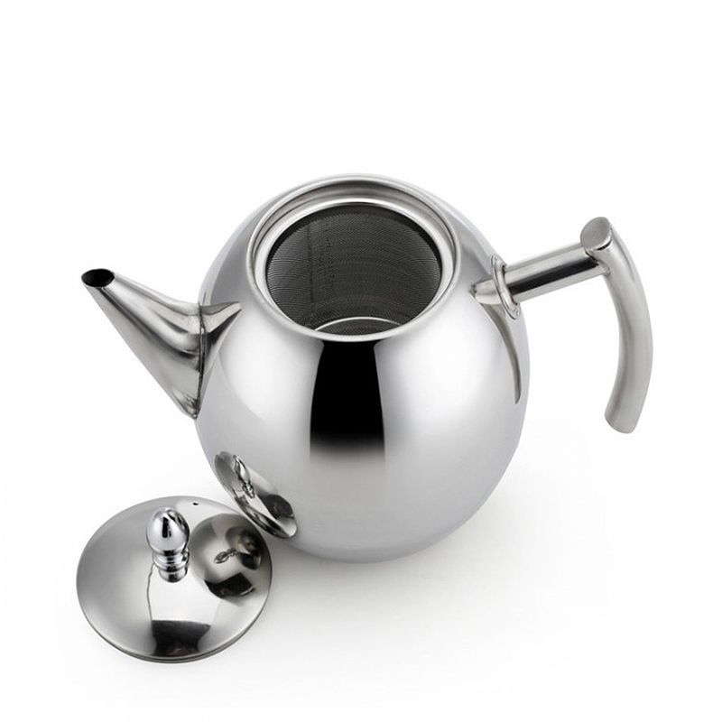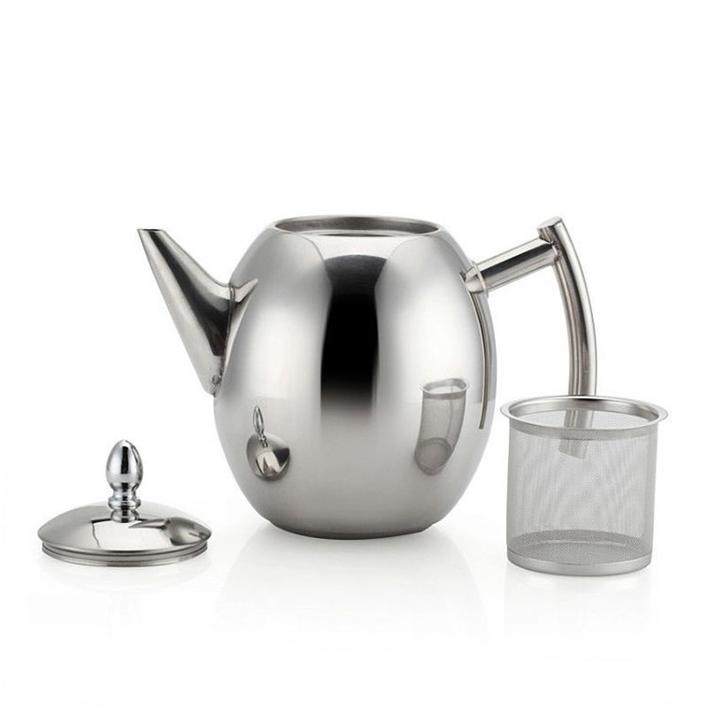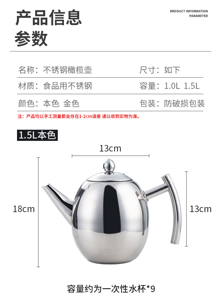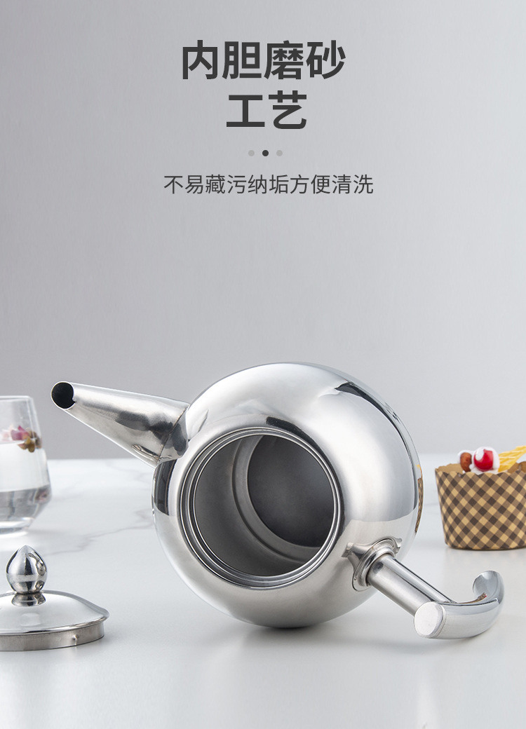 不锈钢橄榄胡酒店咖啡壶餐厅饭店茶壶带网凉水壶家用泡茶水壶平底