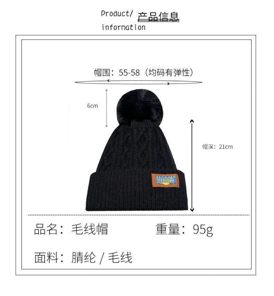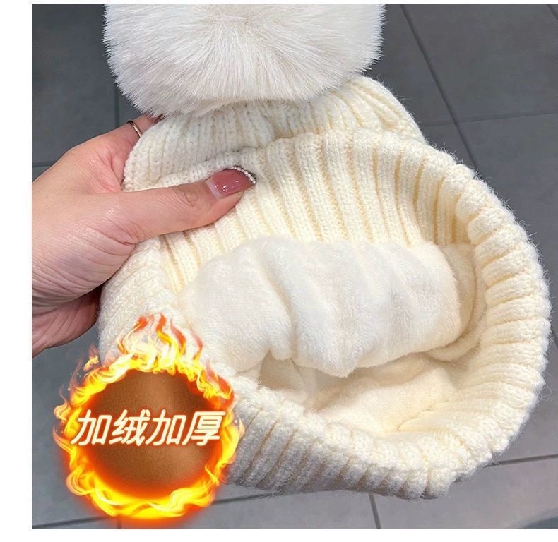 冬季保暖护耳毛球帽女百搭新款加绒加厚针织帽户外防风套头毛线帽