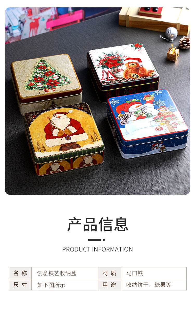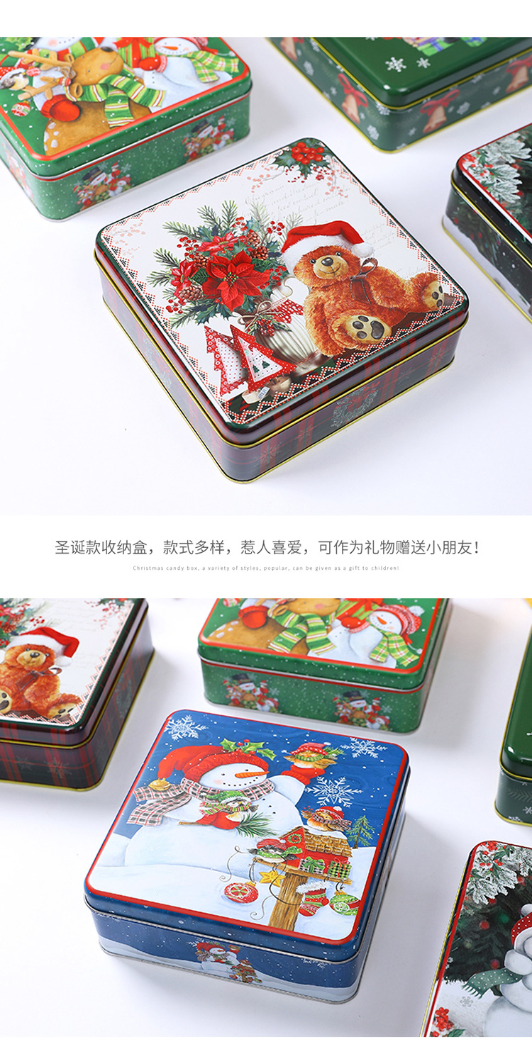 圣诞节新款马口迷你收纳小铁盒儿童正方形桌面储物糖果杂物小盒子