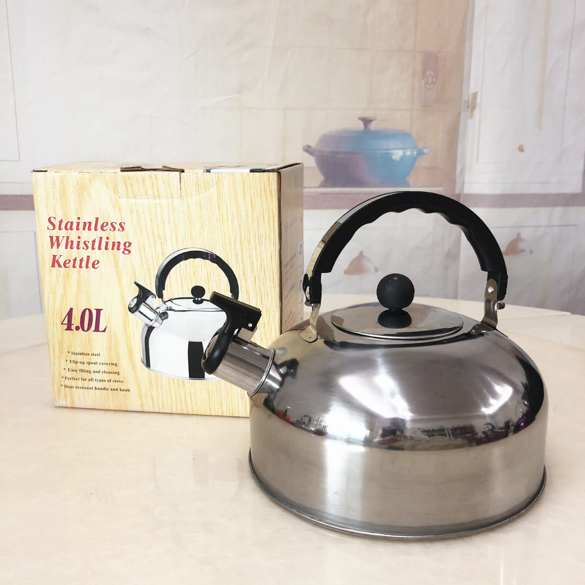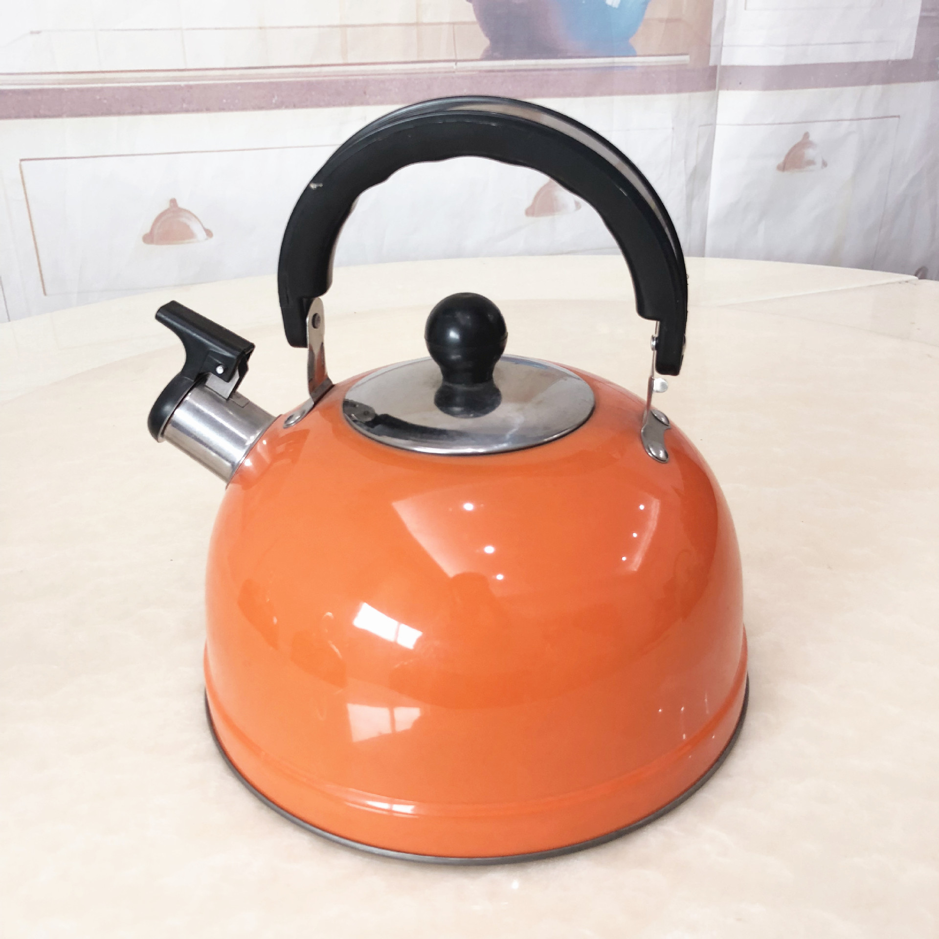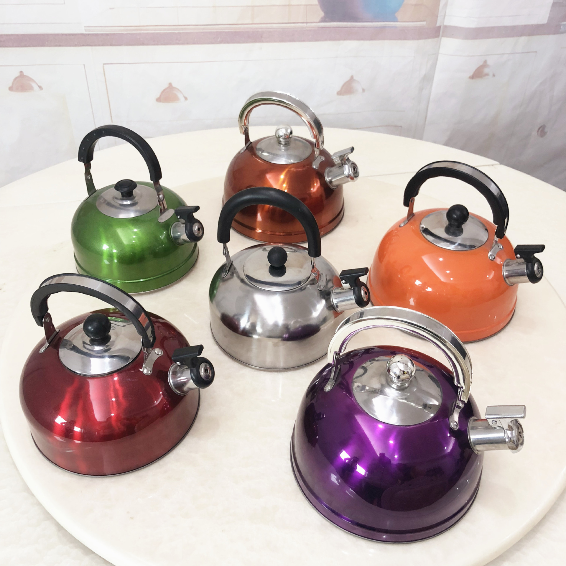 自销不锈钢平底壶 出口鸣音平底烧水壶本色彩色壶批发