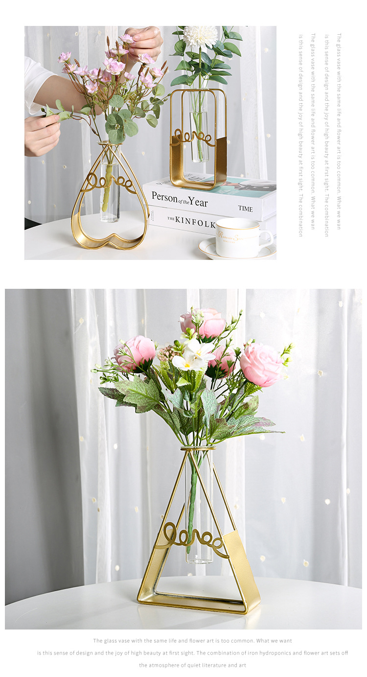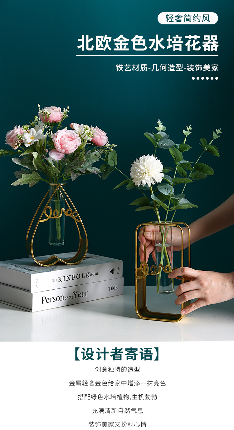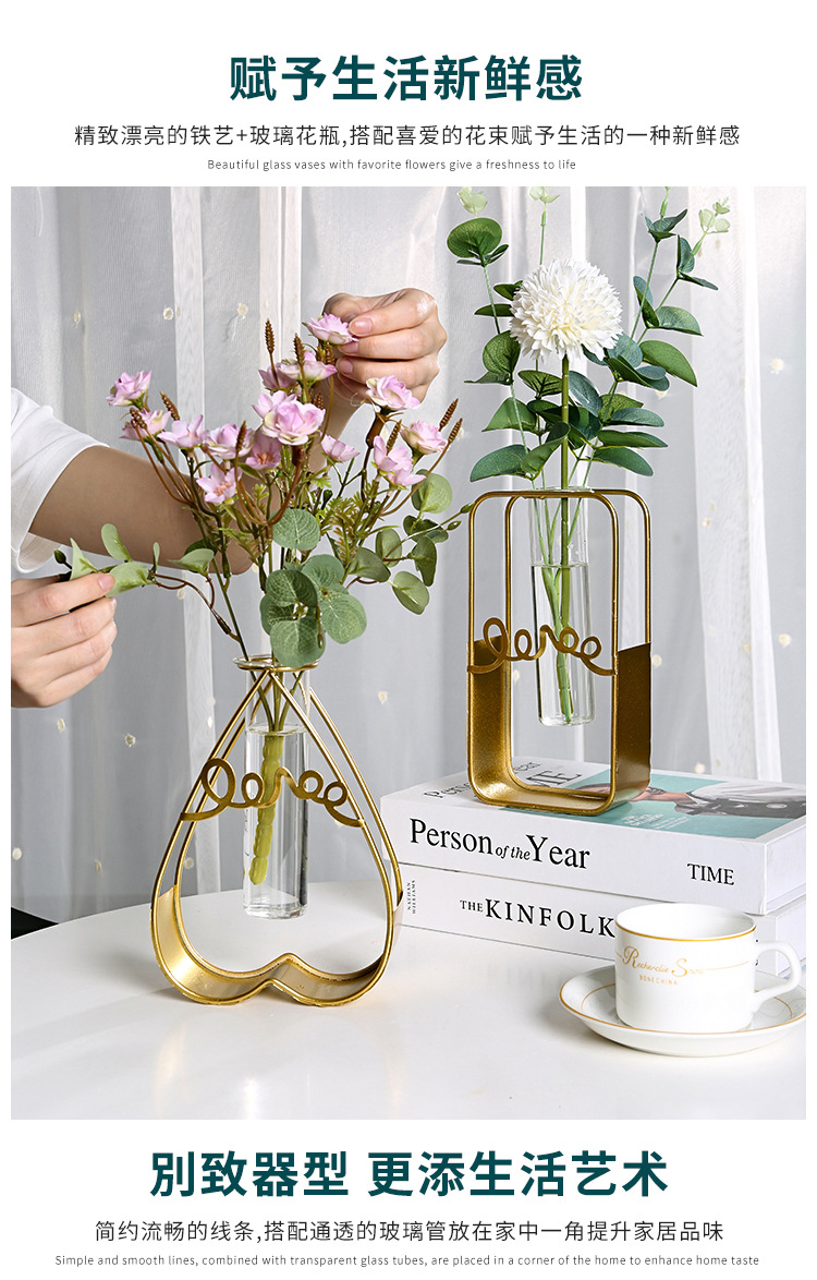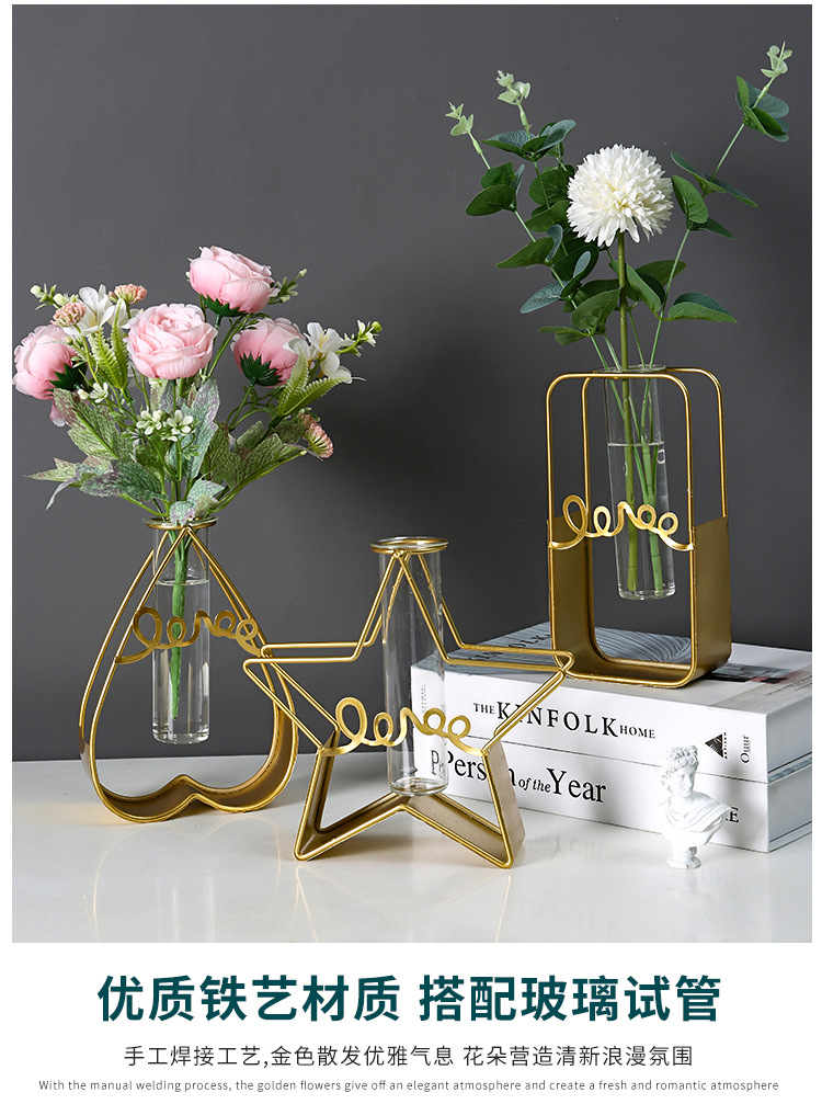 现代简约花瓶摆件轻奢家居客厅卧室餐厅摆设金属装饰试管水培花瓶