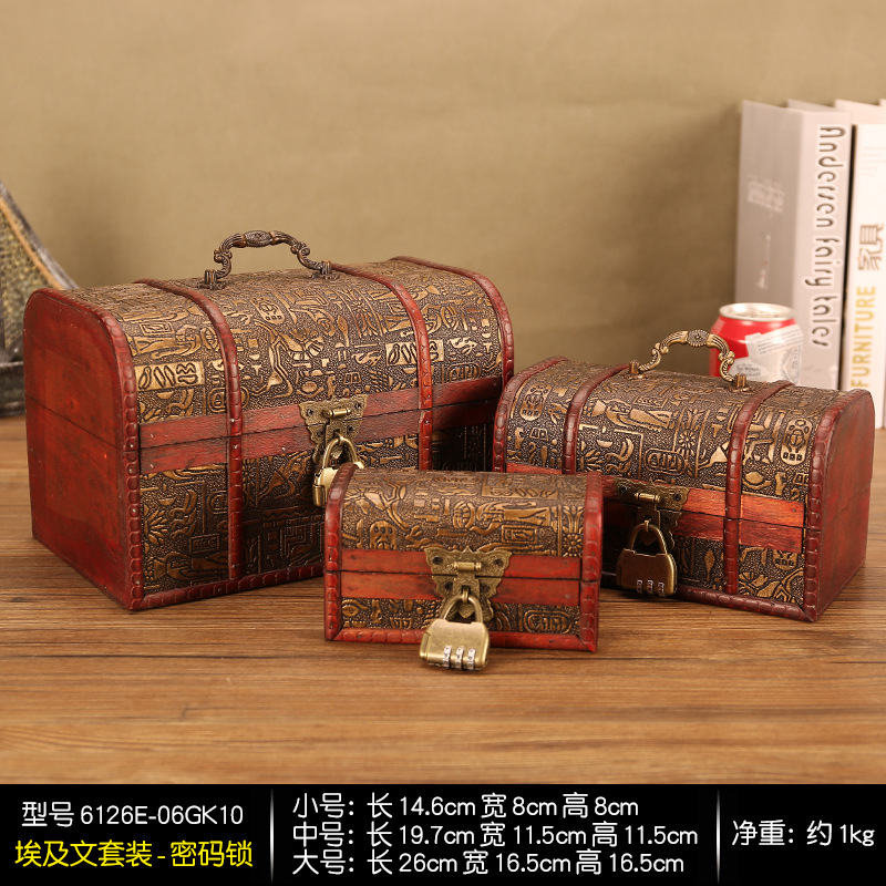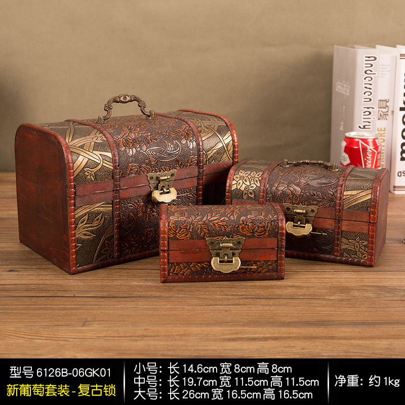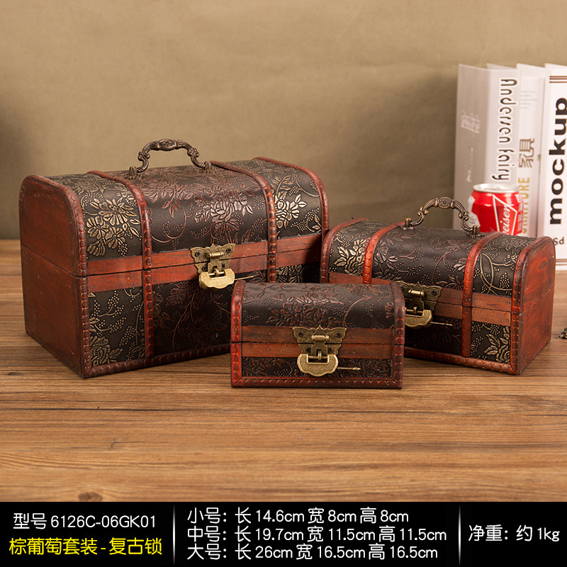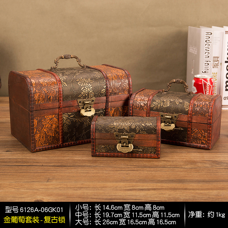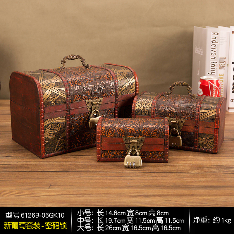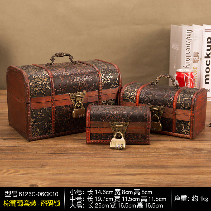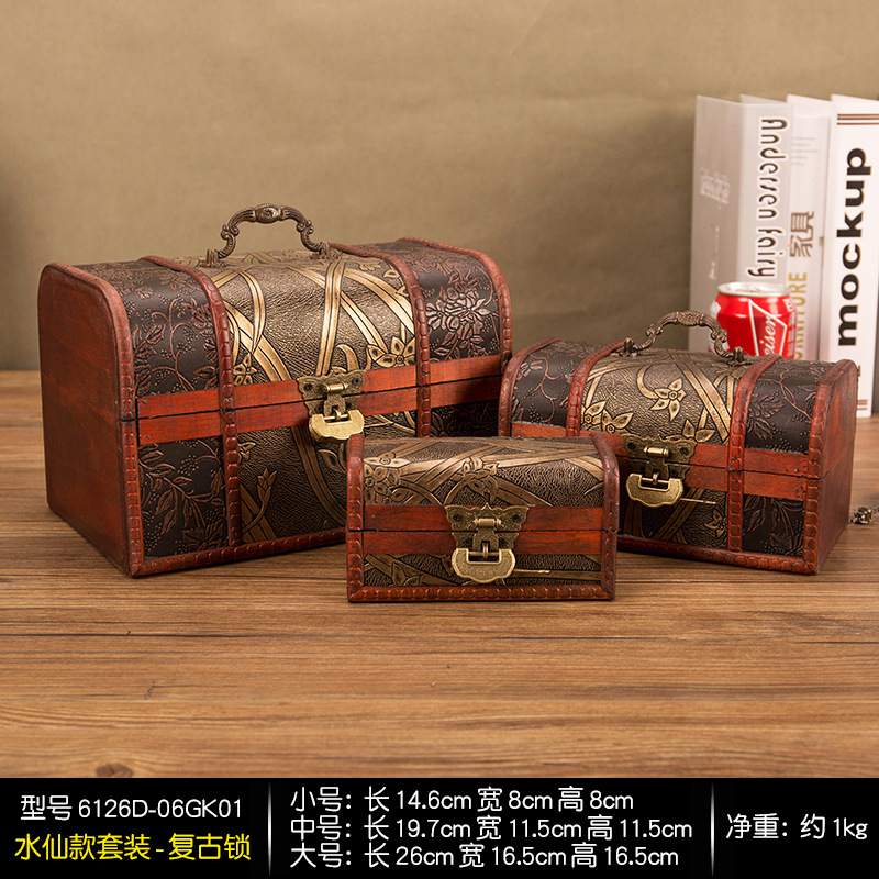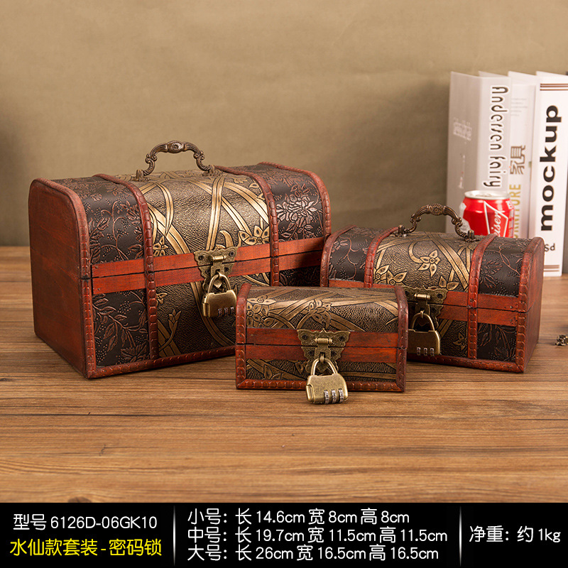 厂销复古收纳盒带锁木质套装储物盒家居首饰品整理木盒子一件代发 |