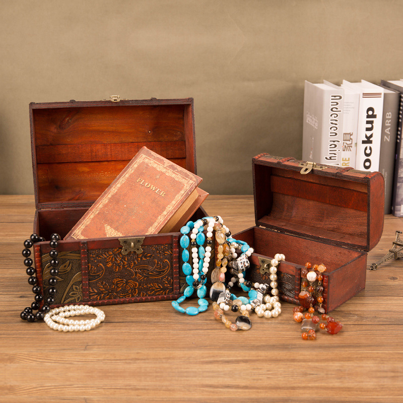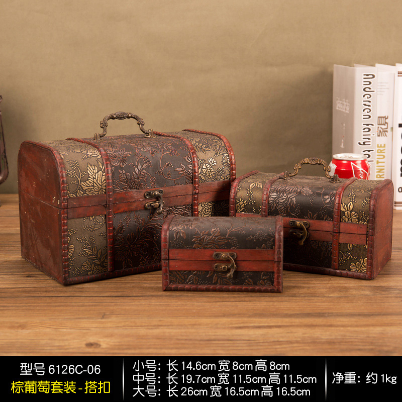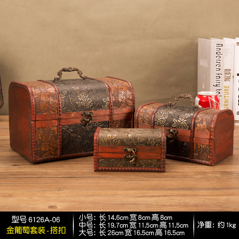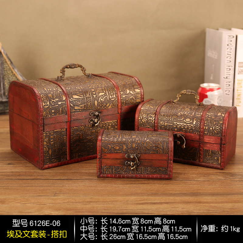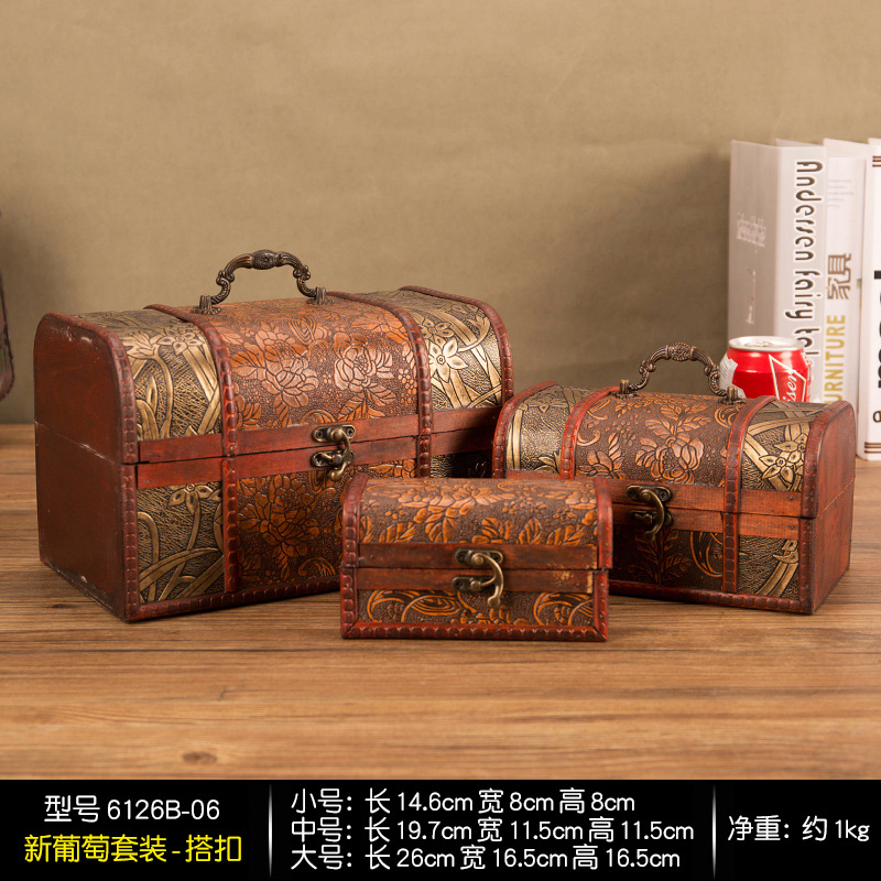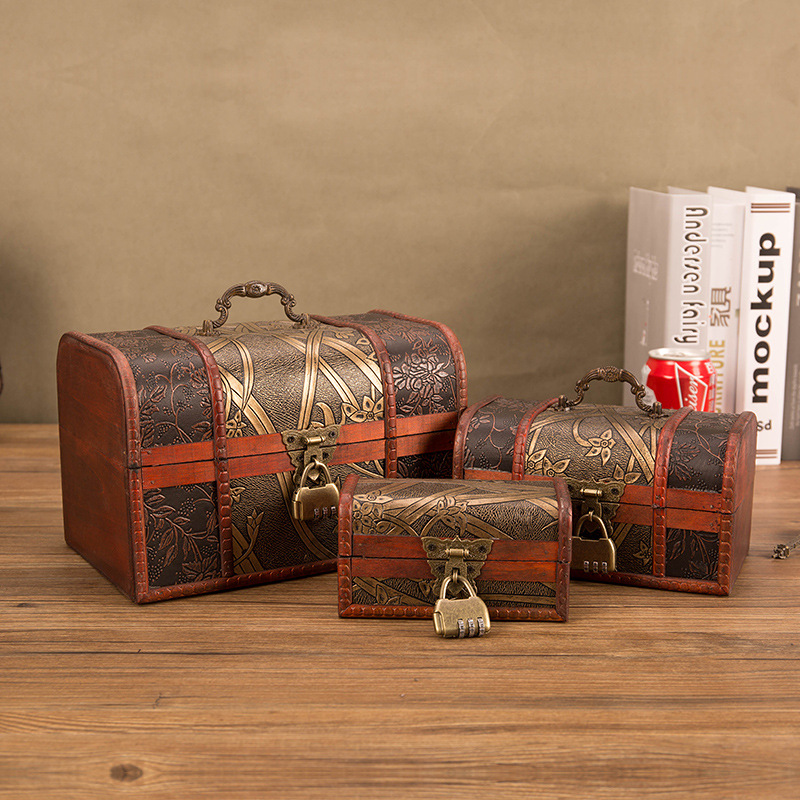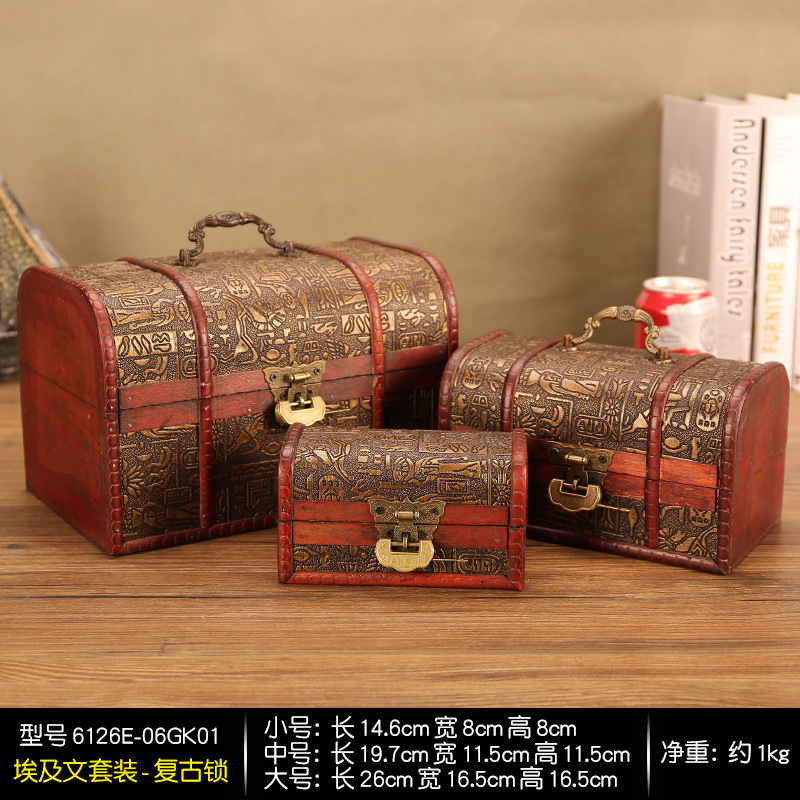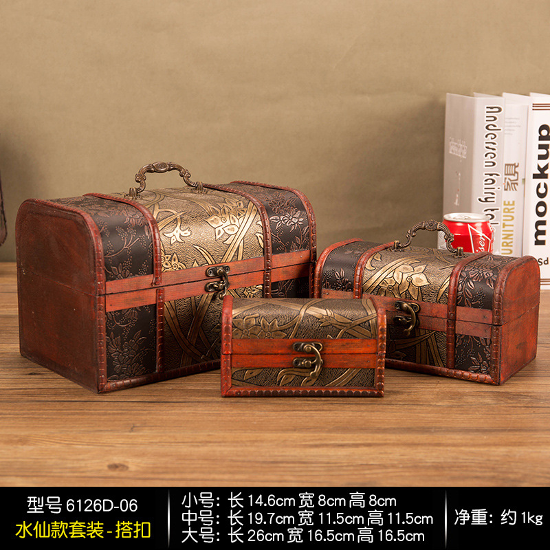 厂销复古收纳盒带锁木质套装储物盒家居首饰品整理木盒子一件代发 |