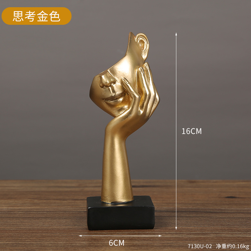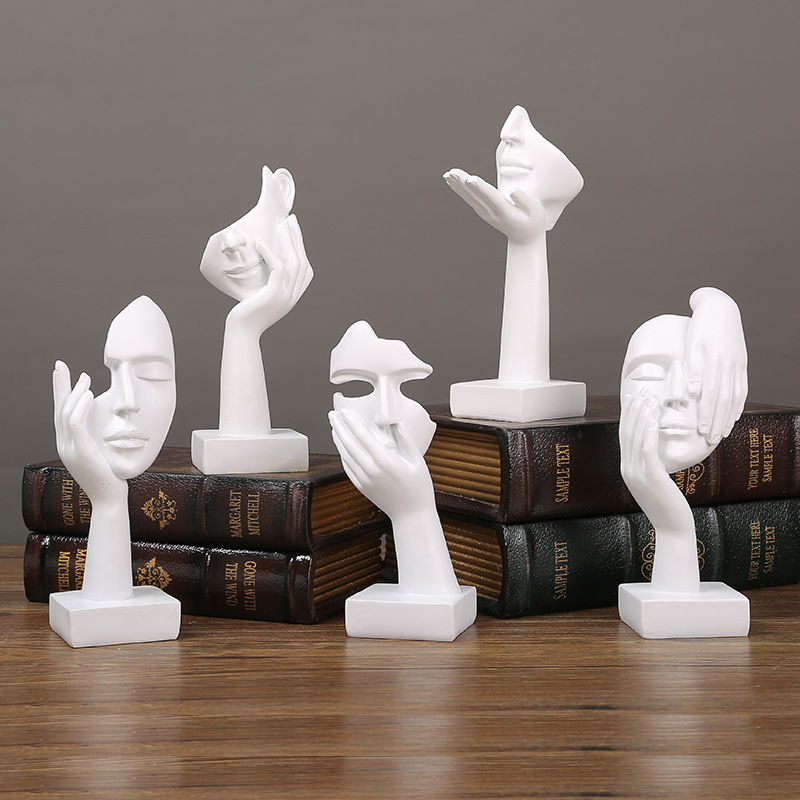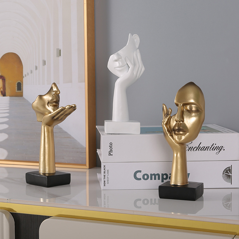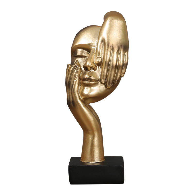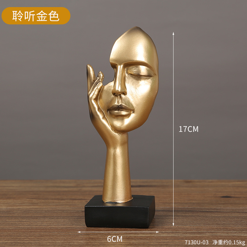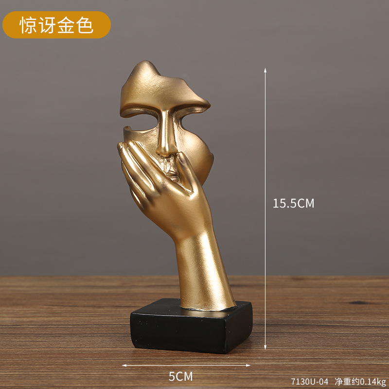 个性抽象艺术面具人物摆件创意沉默是金树脂工艺品玄关酒柜装饰品