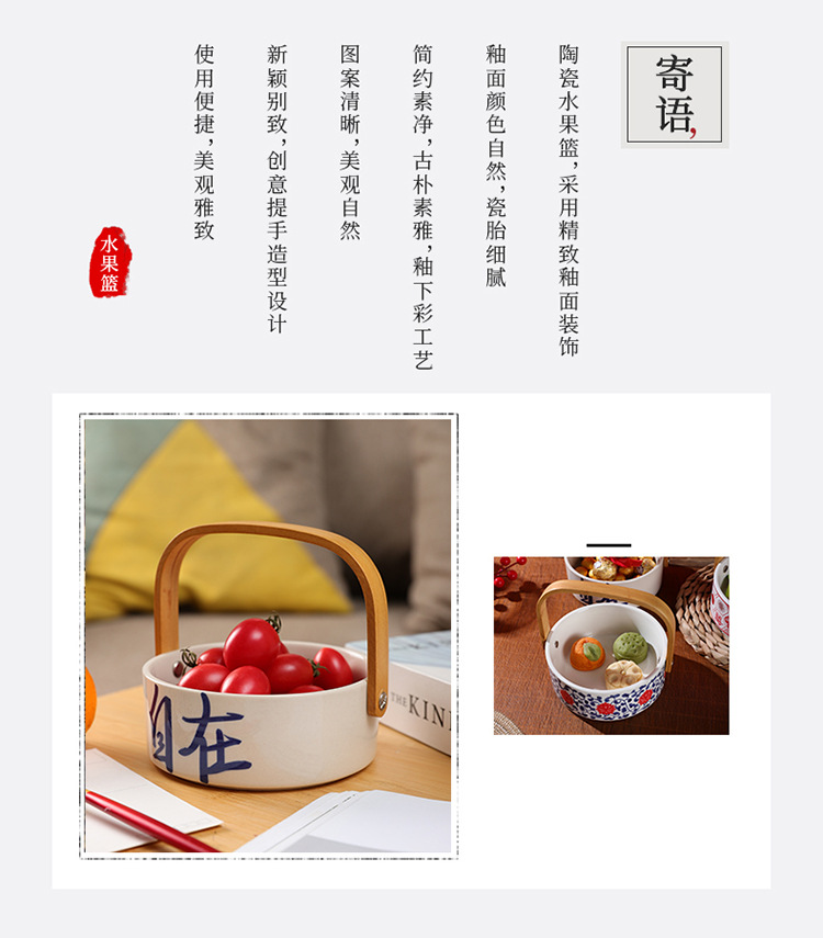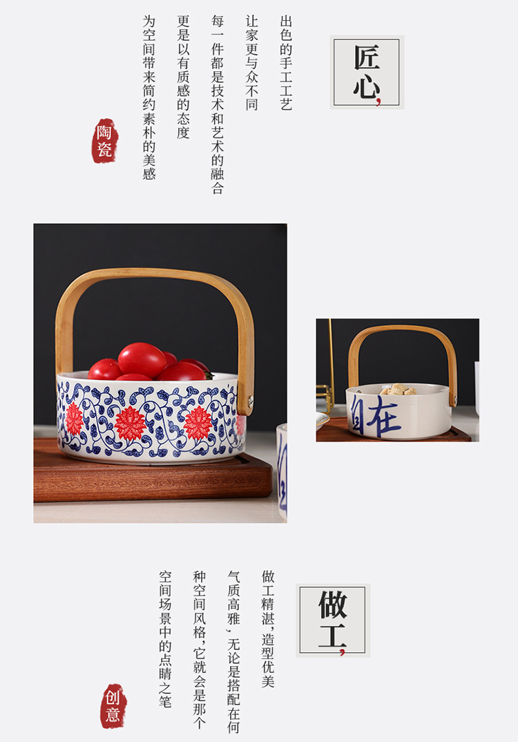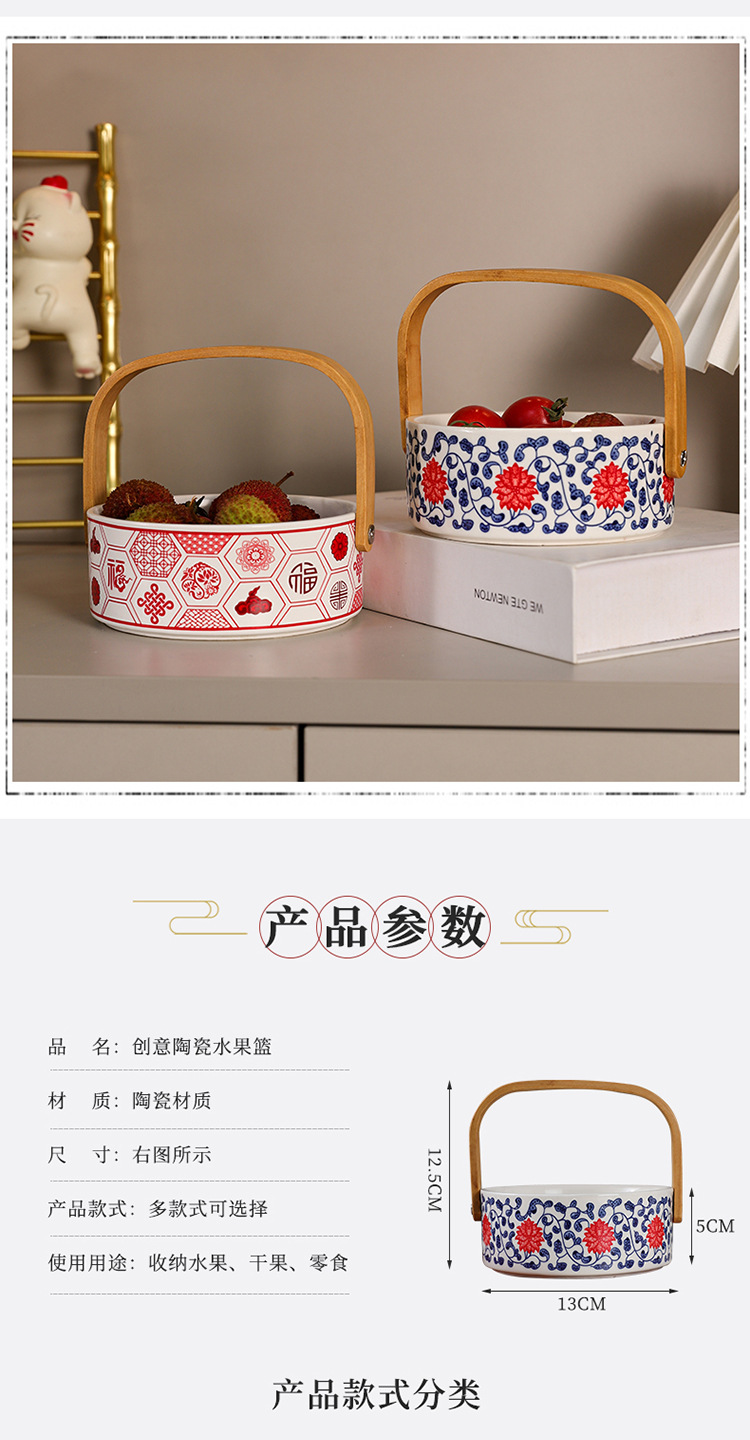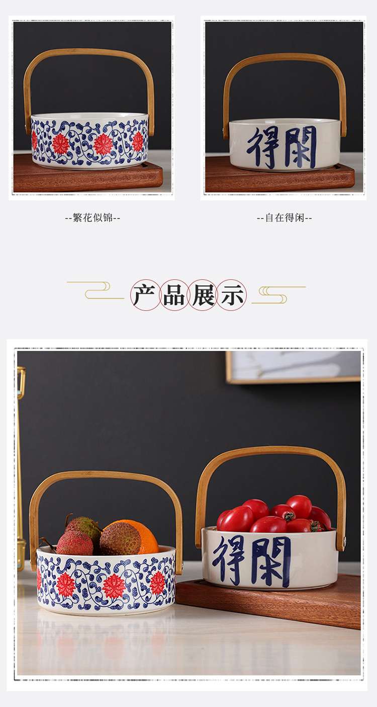 新中式陶瓷水果篮家用手提篮零食摆放盘围炉煮茶户外茶点盘收纳碗