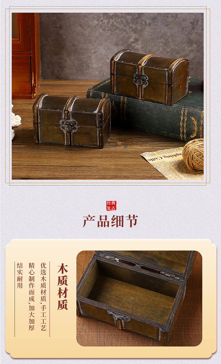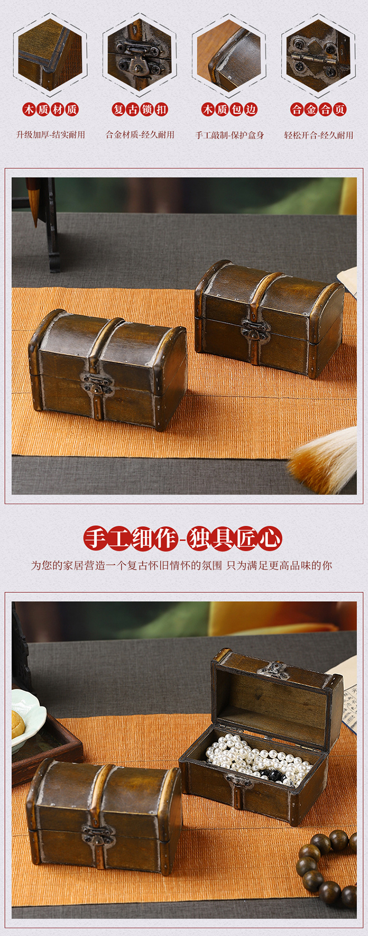 跨境仿复古珠宝木盒家用桌面首饰项链包装收纳盒店铺橱窗装饰用品
