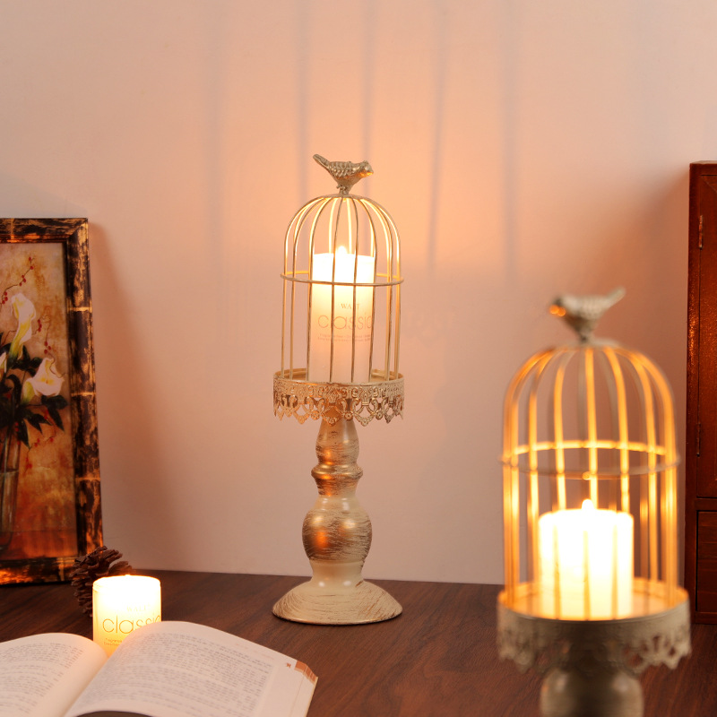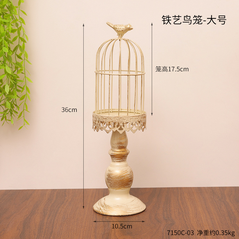 欧式古典铁艺鸟笼烛台桌面装饰品工艺品酒店西餐厅精致花边蜡烛台