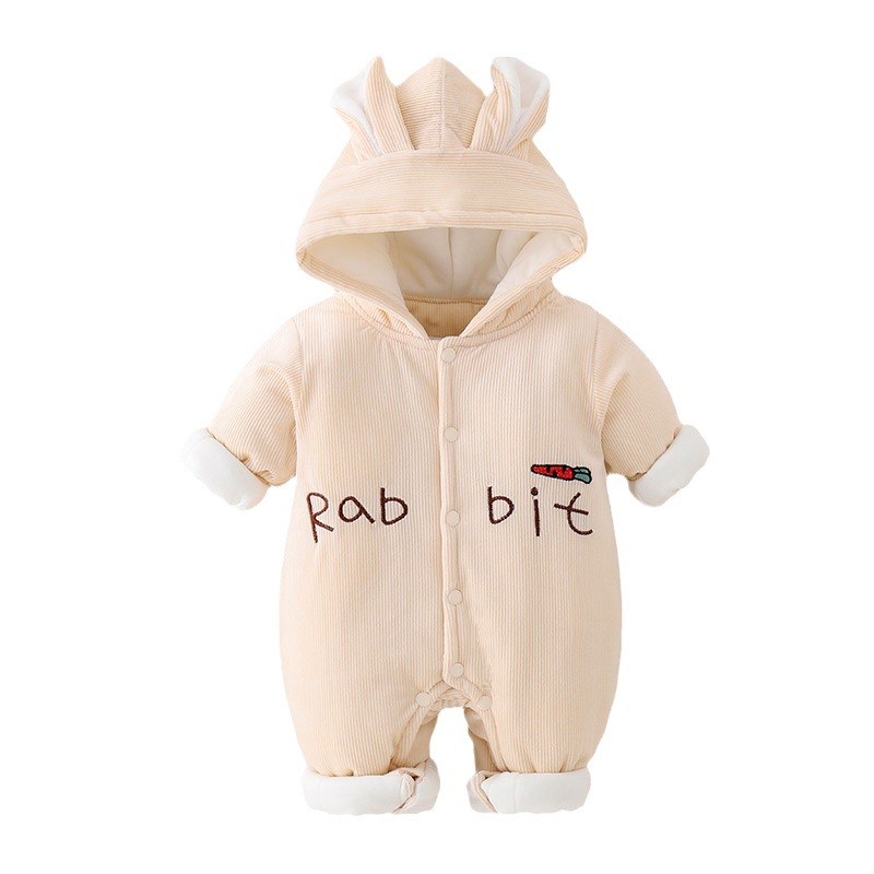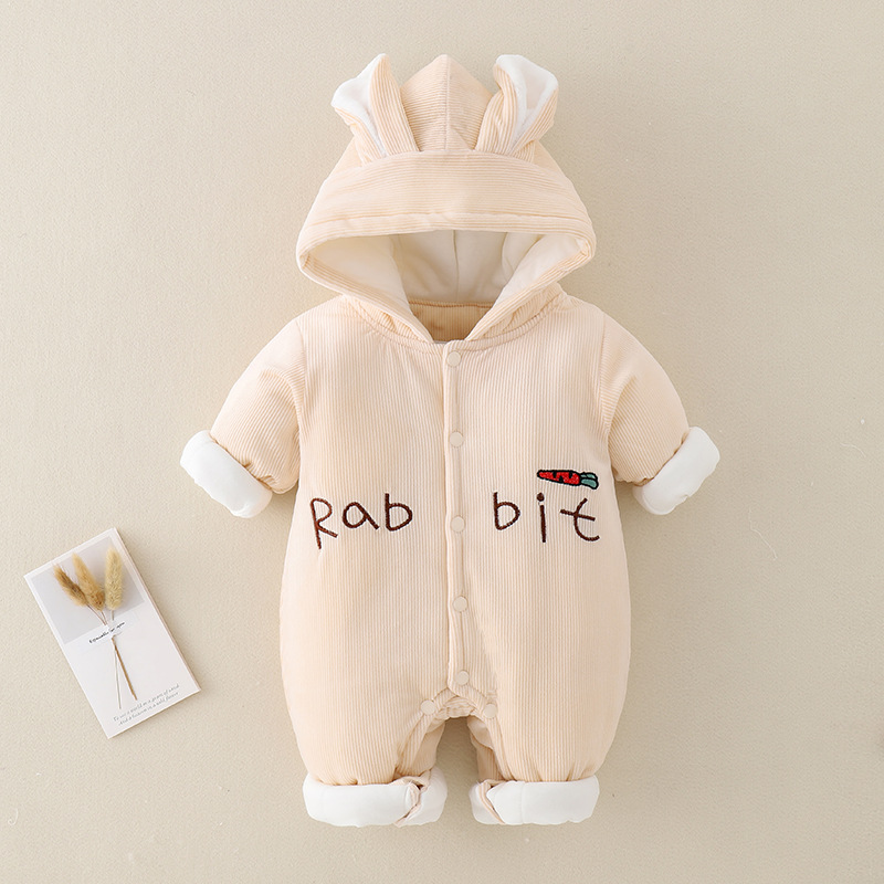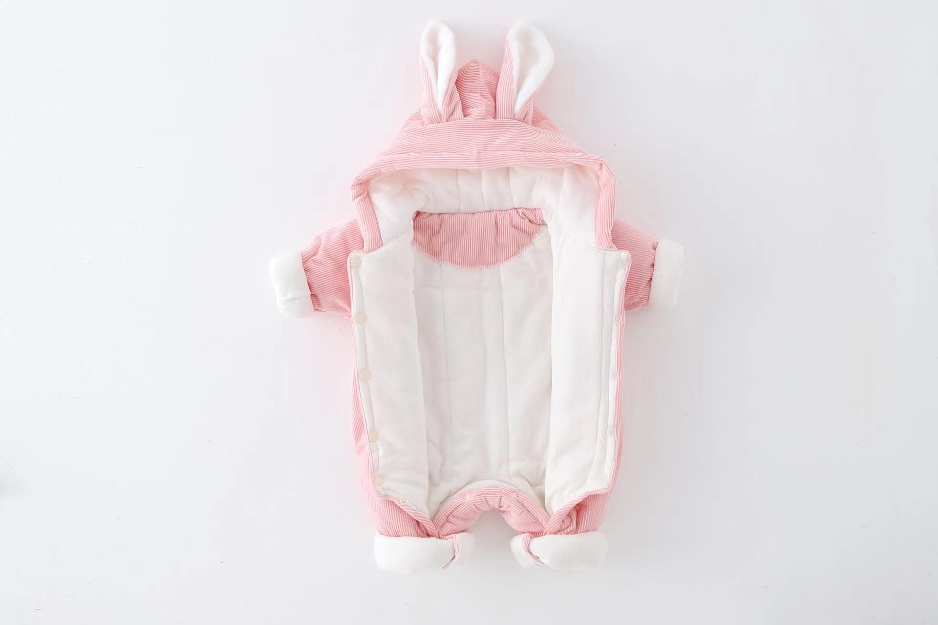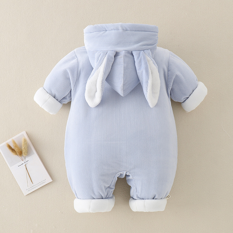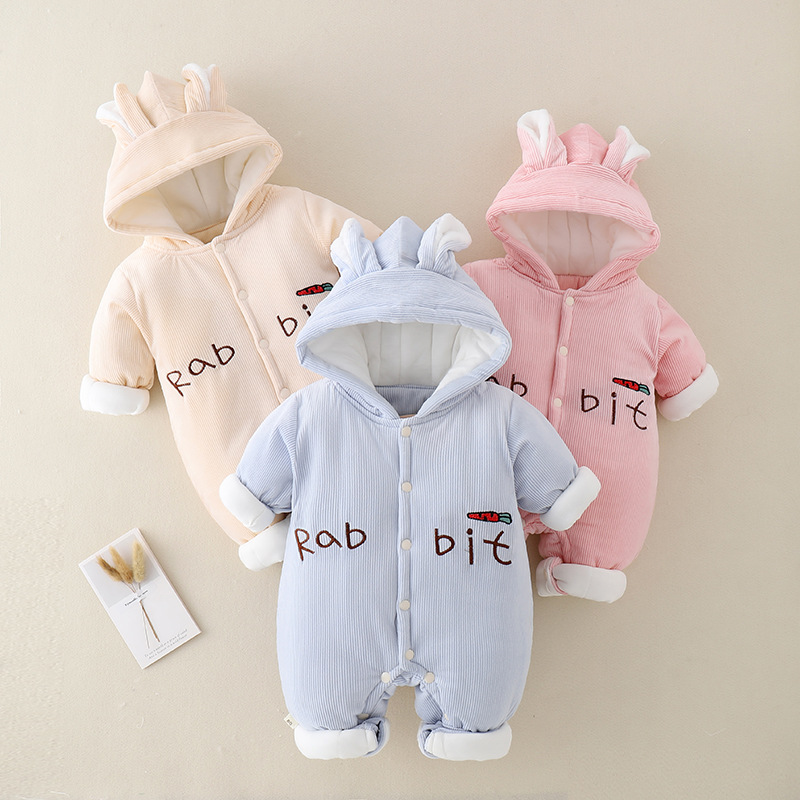 三色小兔子薄棉婴儿连体衣2023冬装加厚小兔子哈衣外出服宝宝爬服