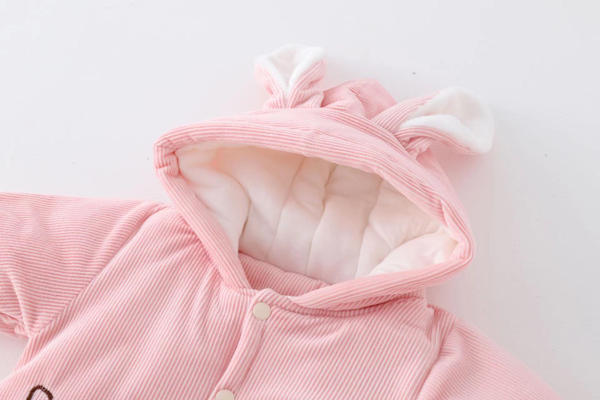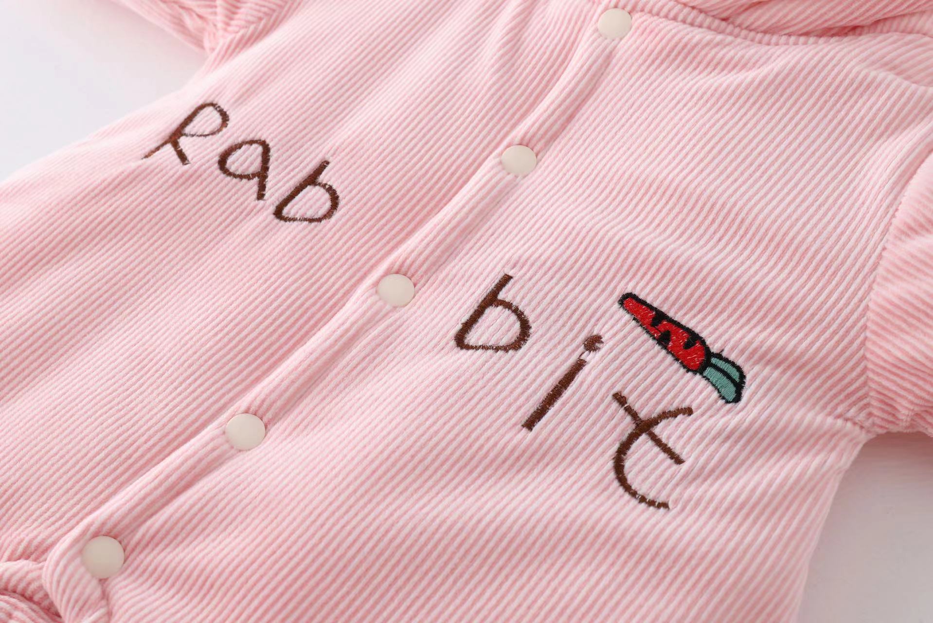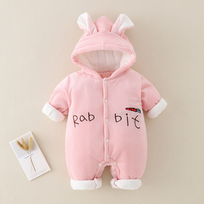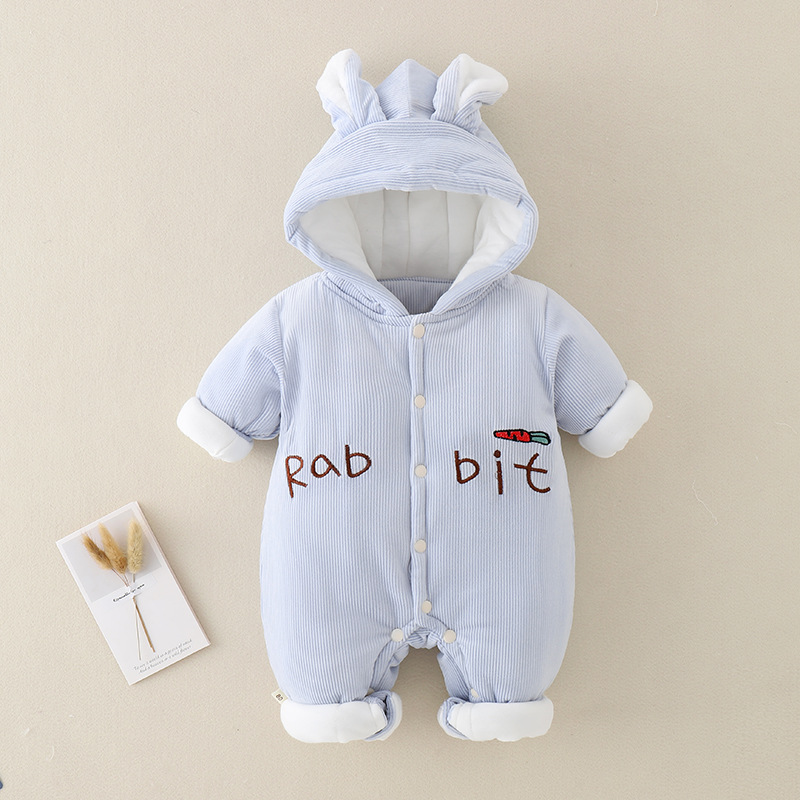 三色小兔子薄棉婴儿连体衣2023冬装加厚小兔子哈衣外出服宝宝爬服