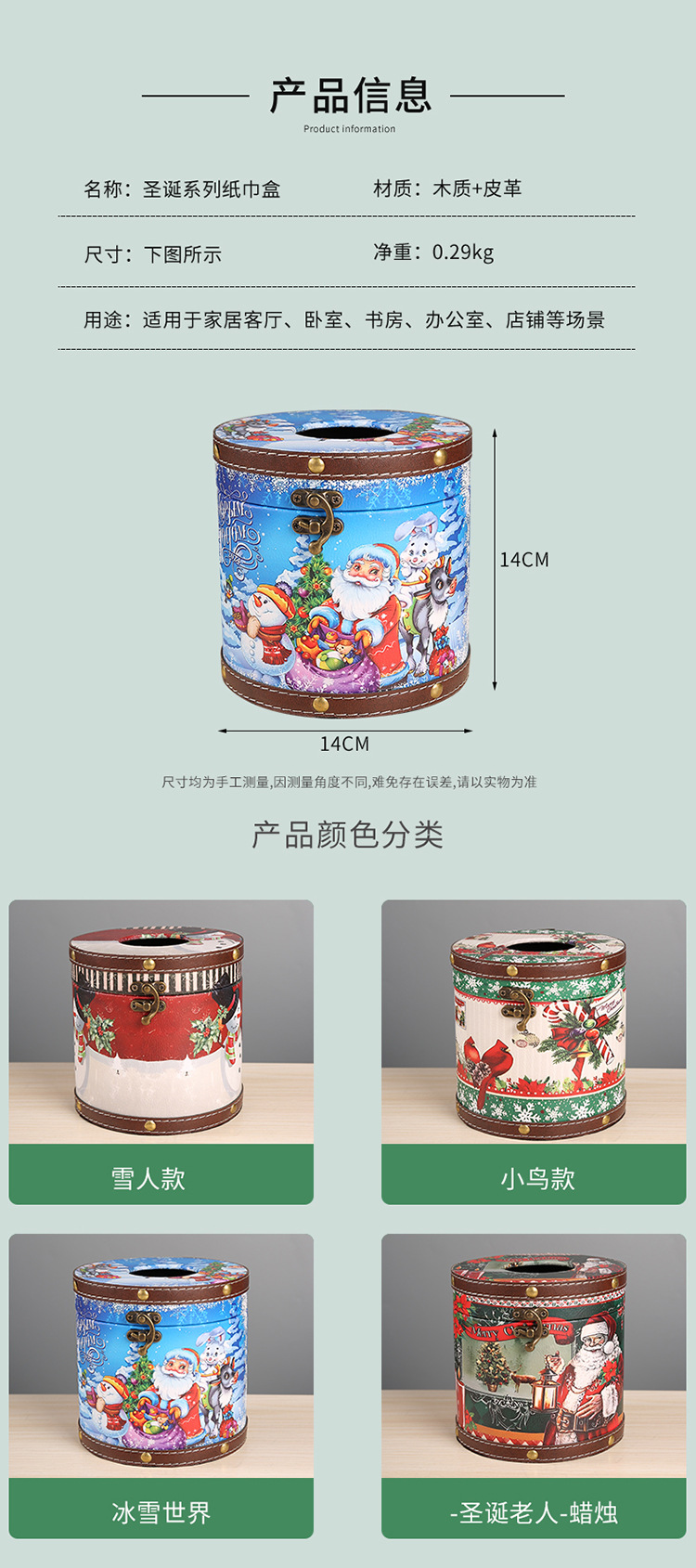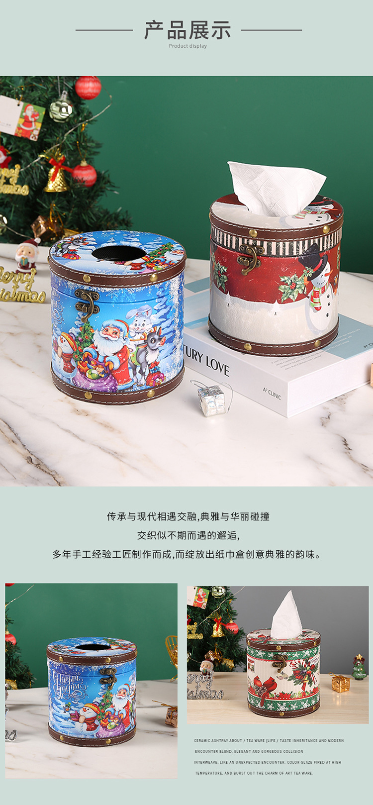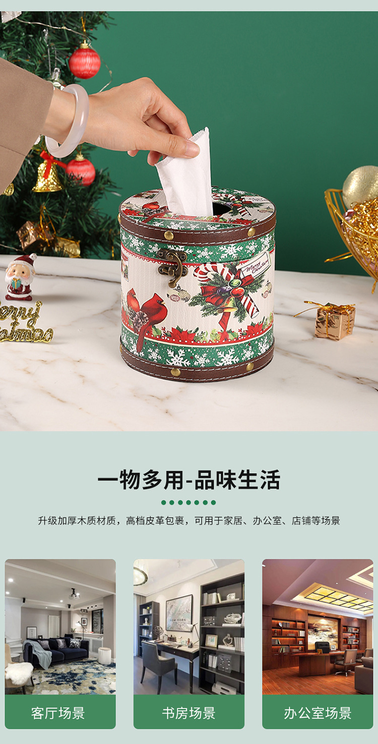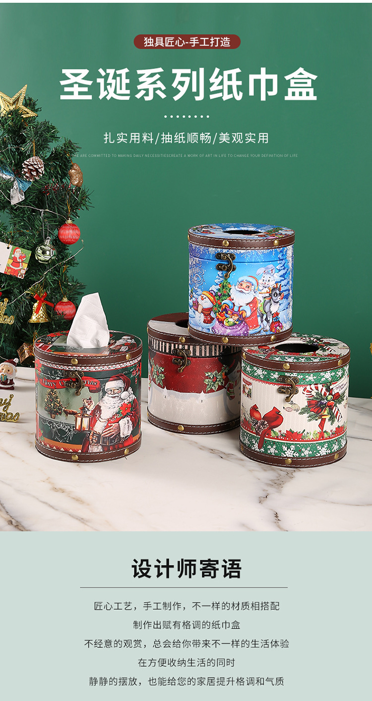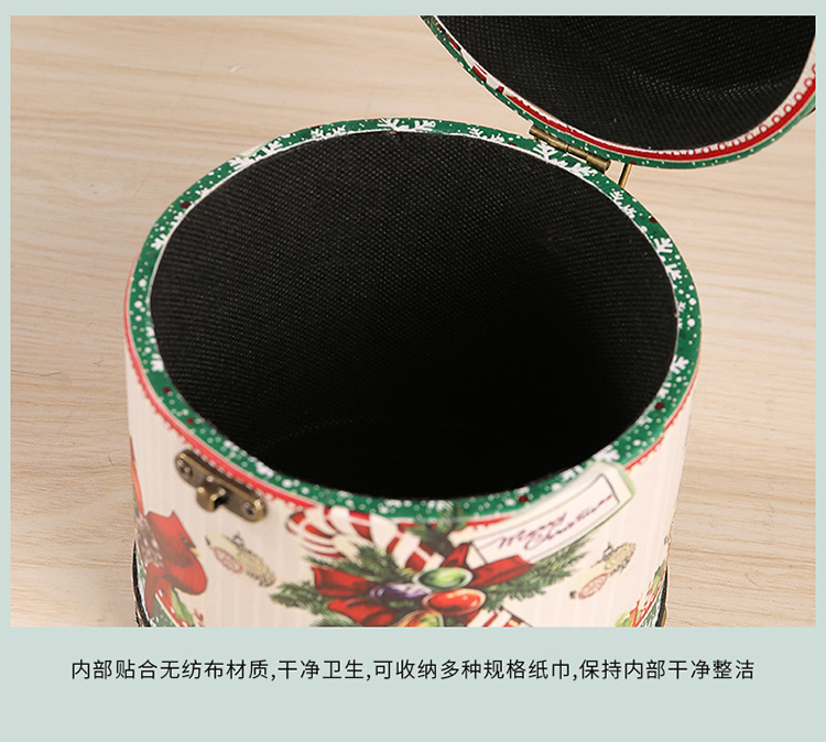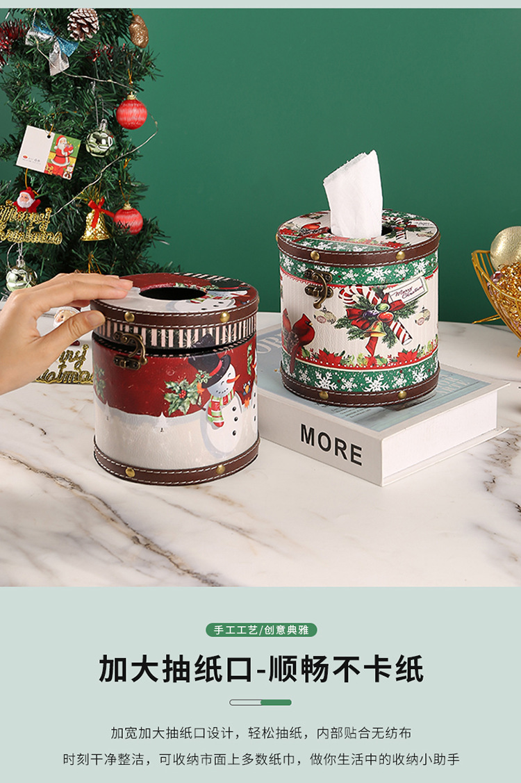 跨境圣诞节圆形纸巾盒家用室内餐桌客厅茶几桌面抽纸盒圆形纸巾筒