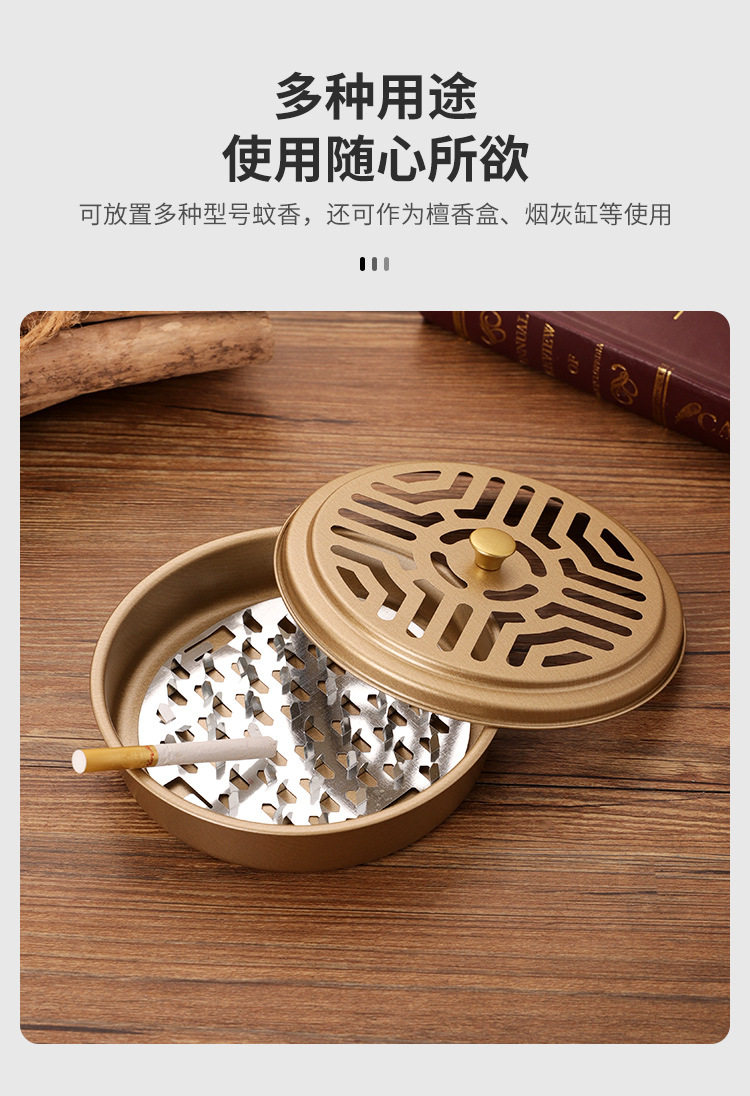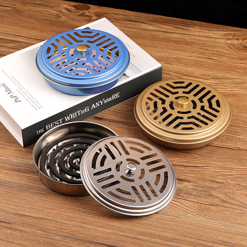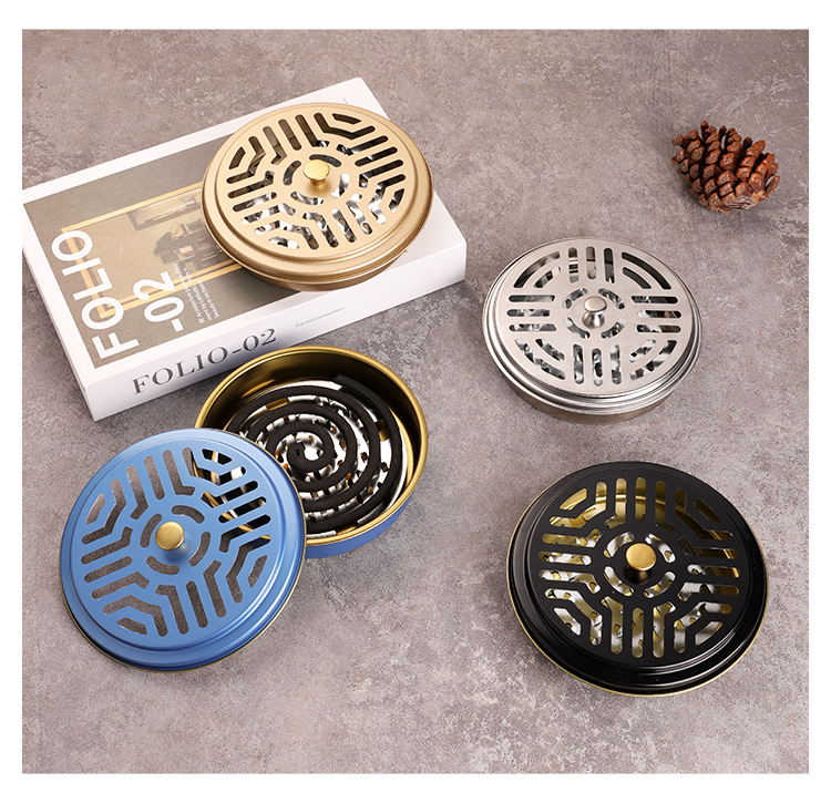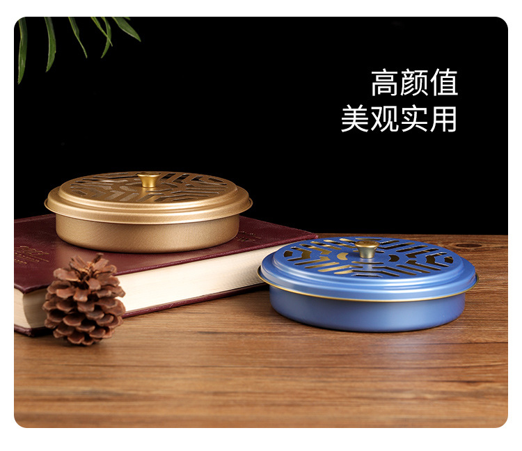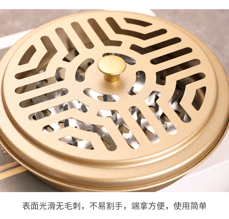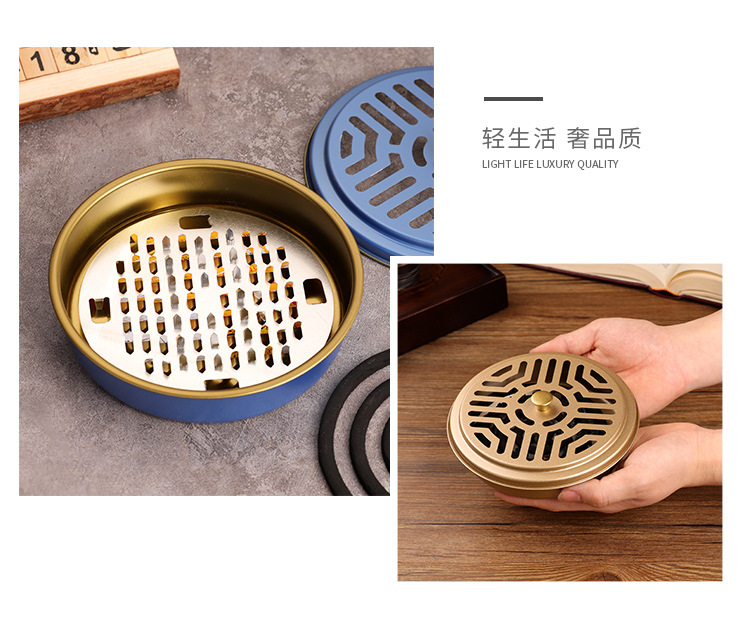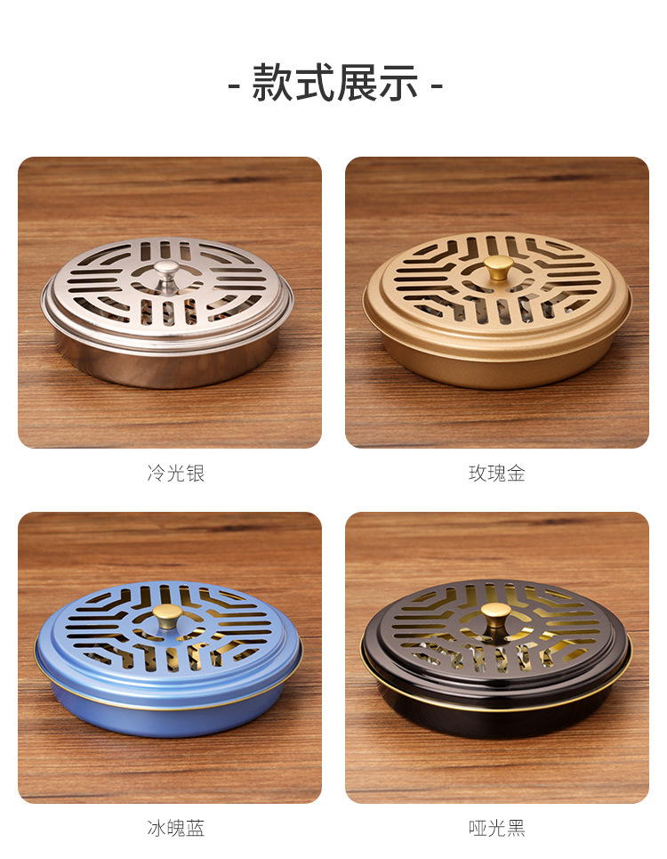简约不锈钢蚊香盘家用客厅卧室带盖防火蚊香托盘香炉檀香盒接灰盘