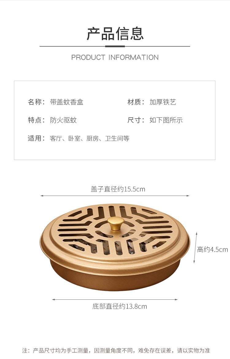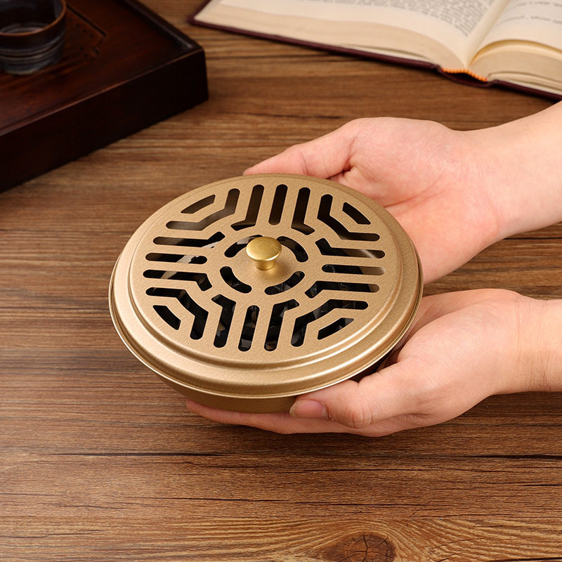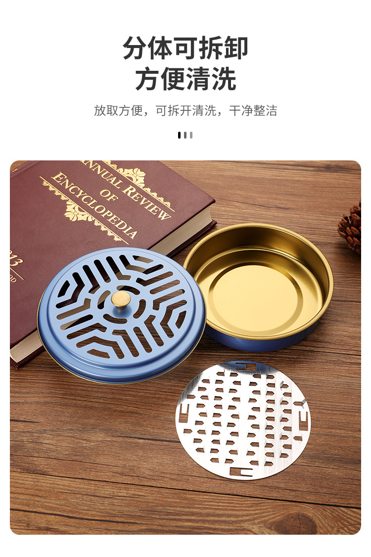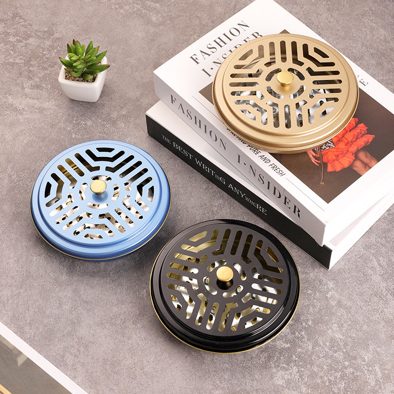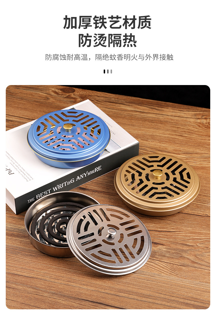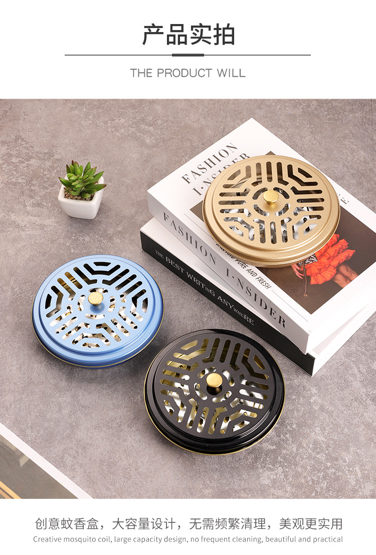 简约不锈钢蚊香盘家用客厅卧室带盖防火蚊香托盘香炉檀香盒接灰盘