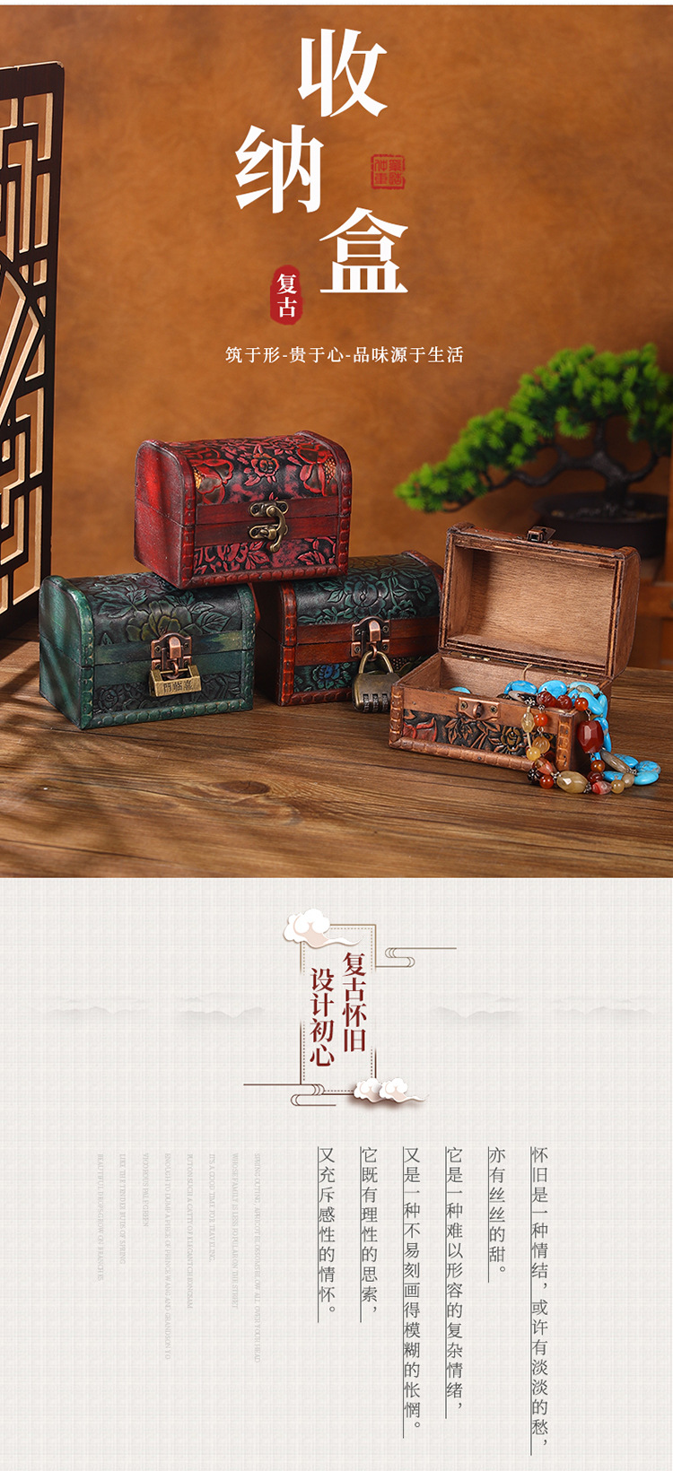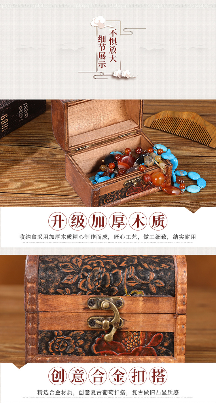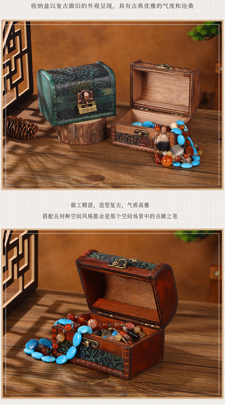 中式复古山茶花纹皮革木盒影视拍摄道具饰品珠宝收纳盒带锁百宝箱