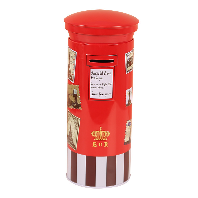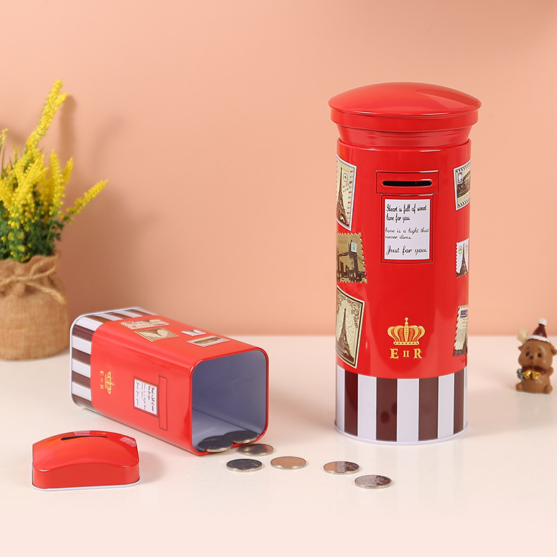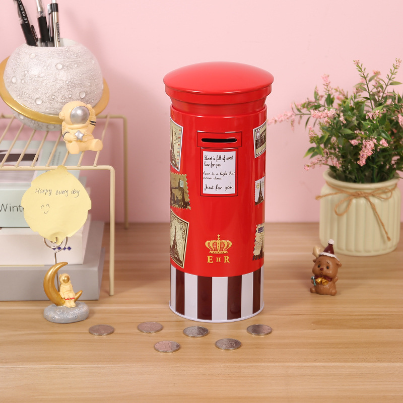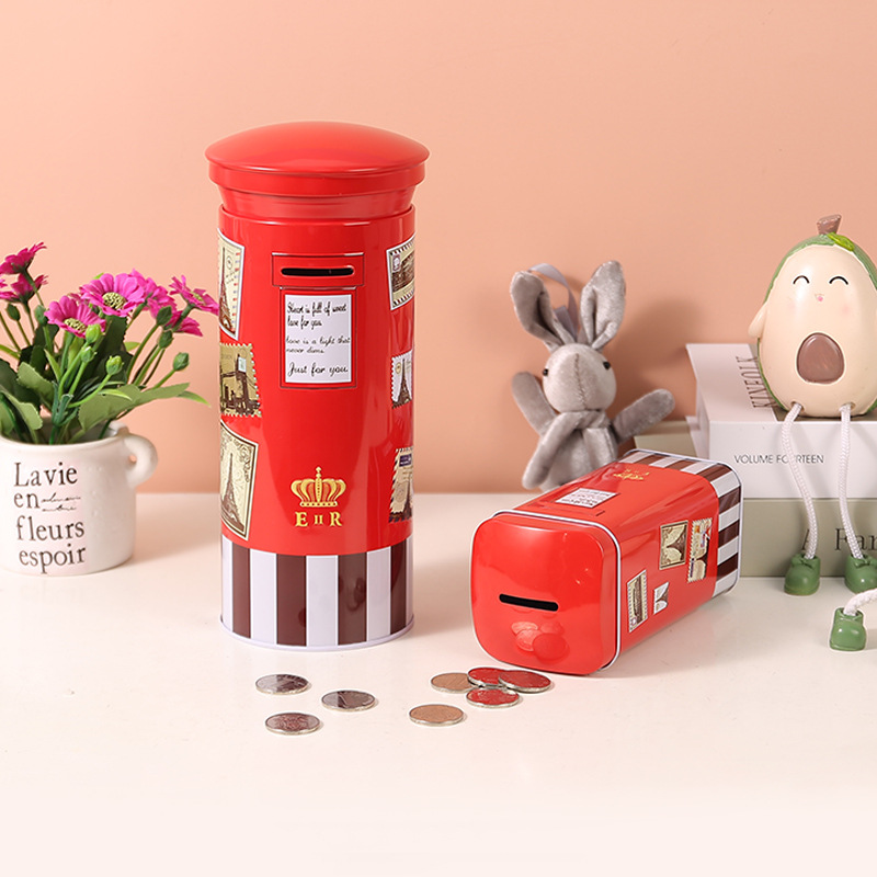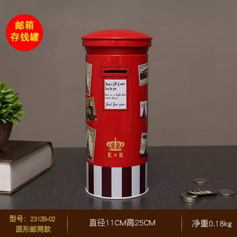 个性复古邮筒铁艺储蓄罐桌面摆件创意儿童礼物可存可取红色存钱罐