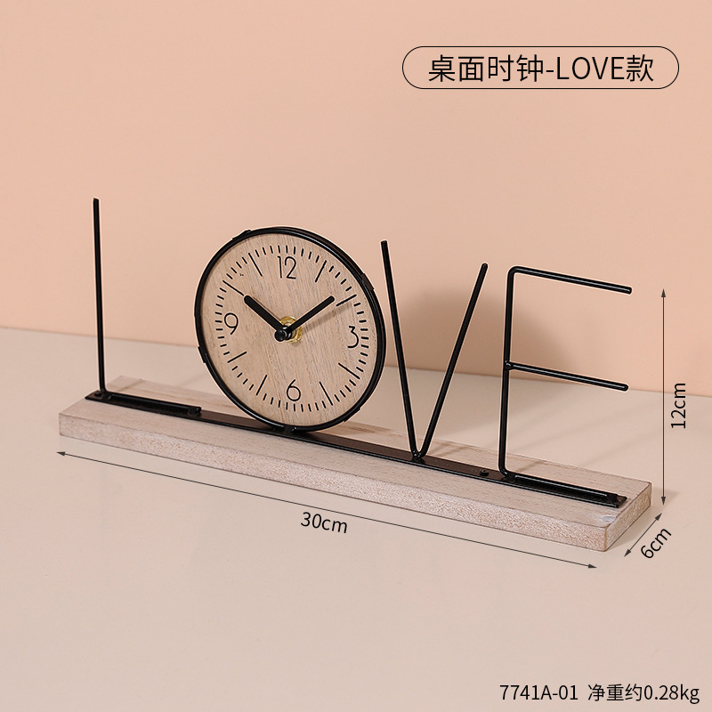 创意简约钟表字母铁艺时钟摆件家居玄关客厅电视柜桌面装饰品摆设