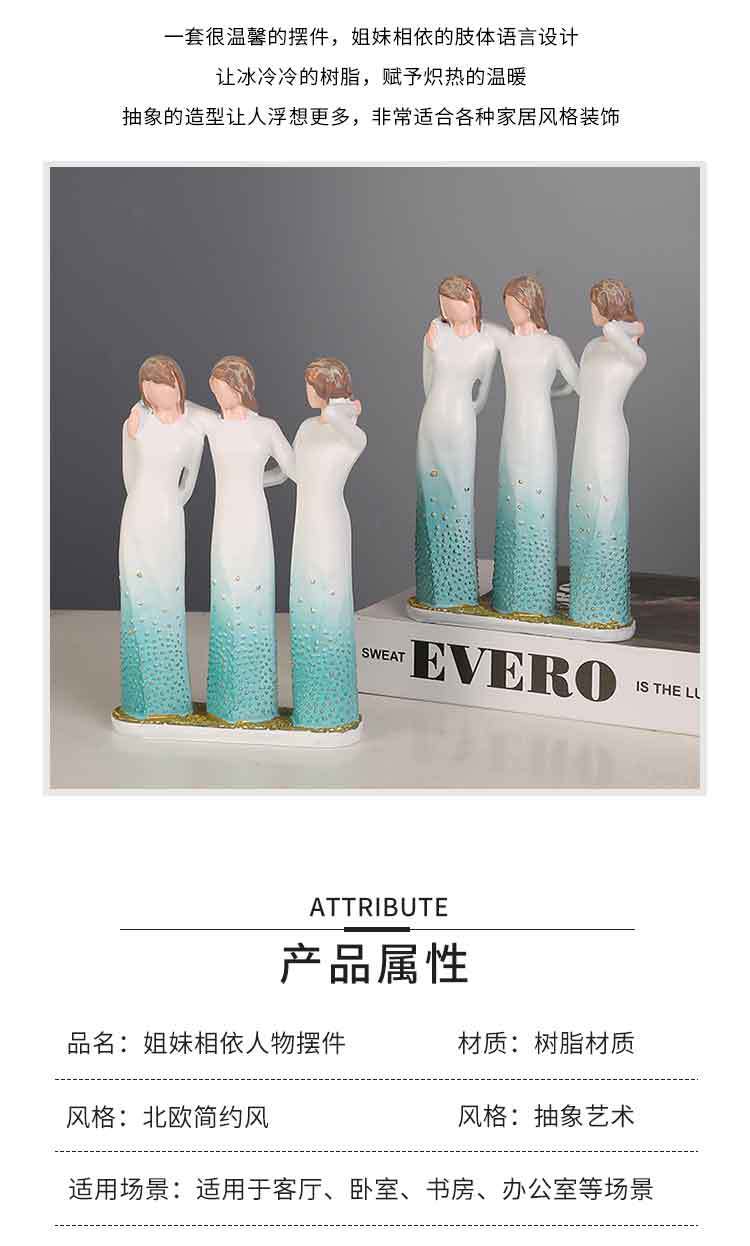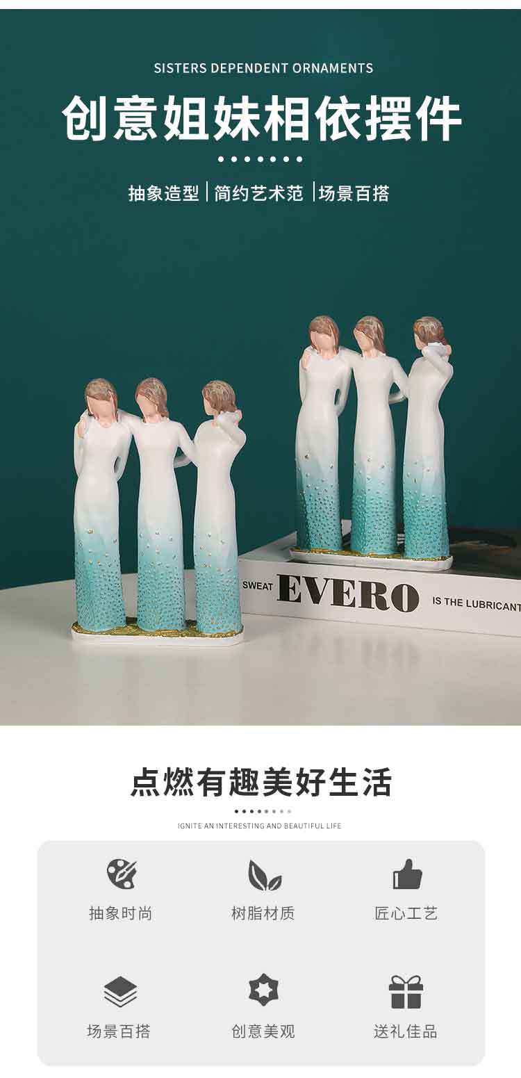 跨境人物摆件三姐妹家居玄关客厅酒柜办公室树脂摆设创意闺蜜礼物