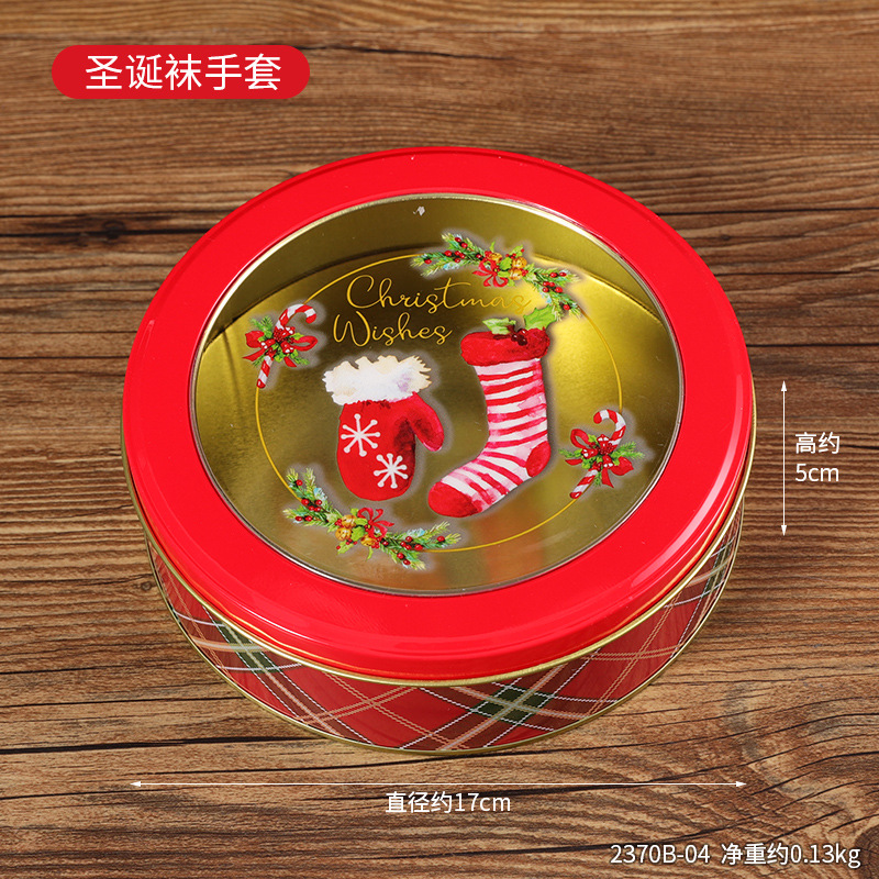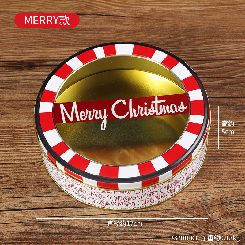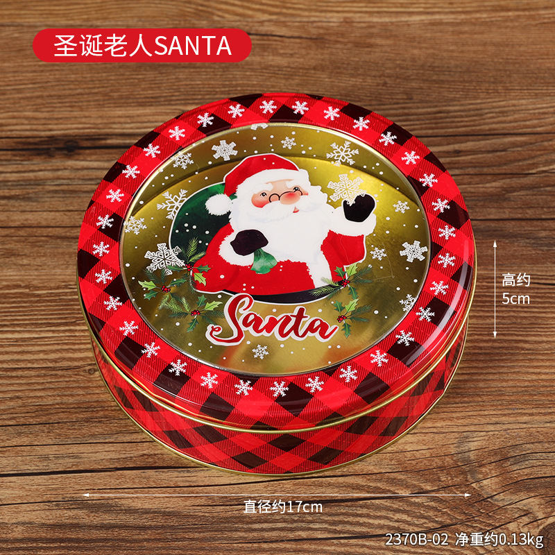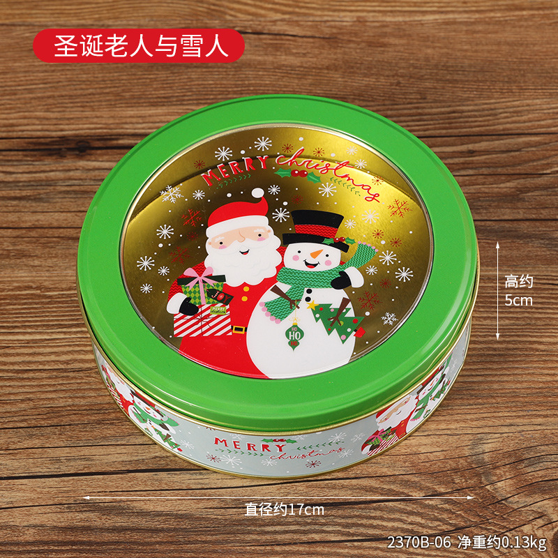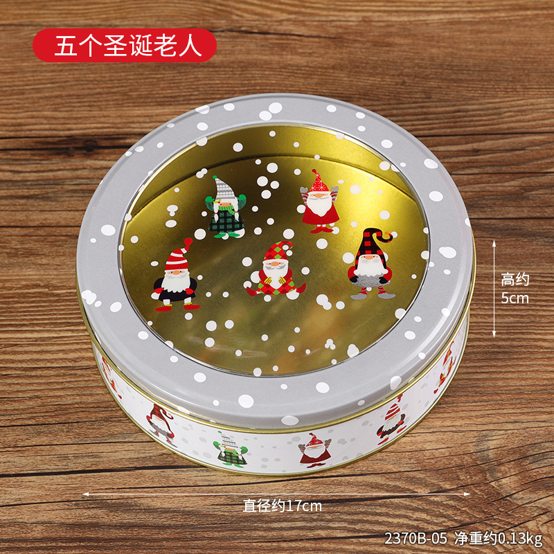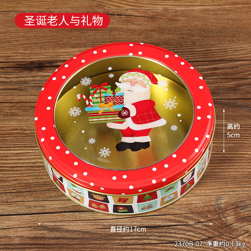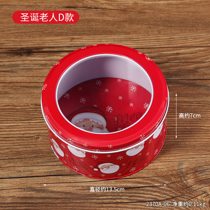圣诞圆形透明卡通铁盒烘焙饼干曲奇马口铁包装盒圣诞节儿童糖果罐