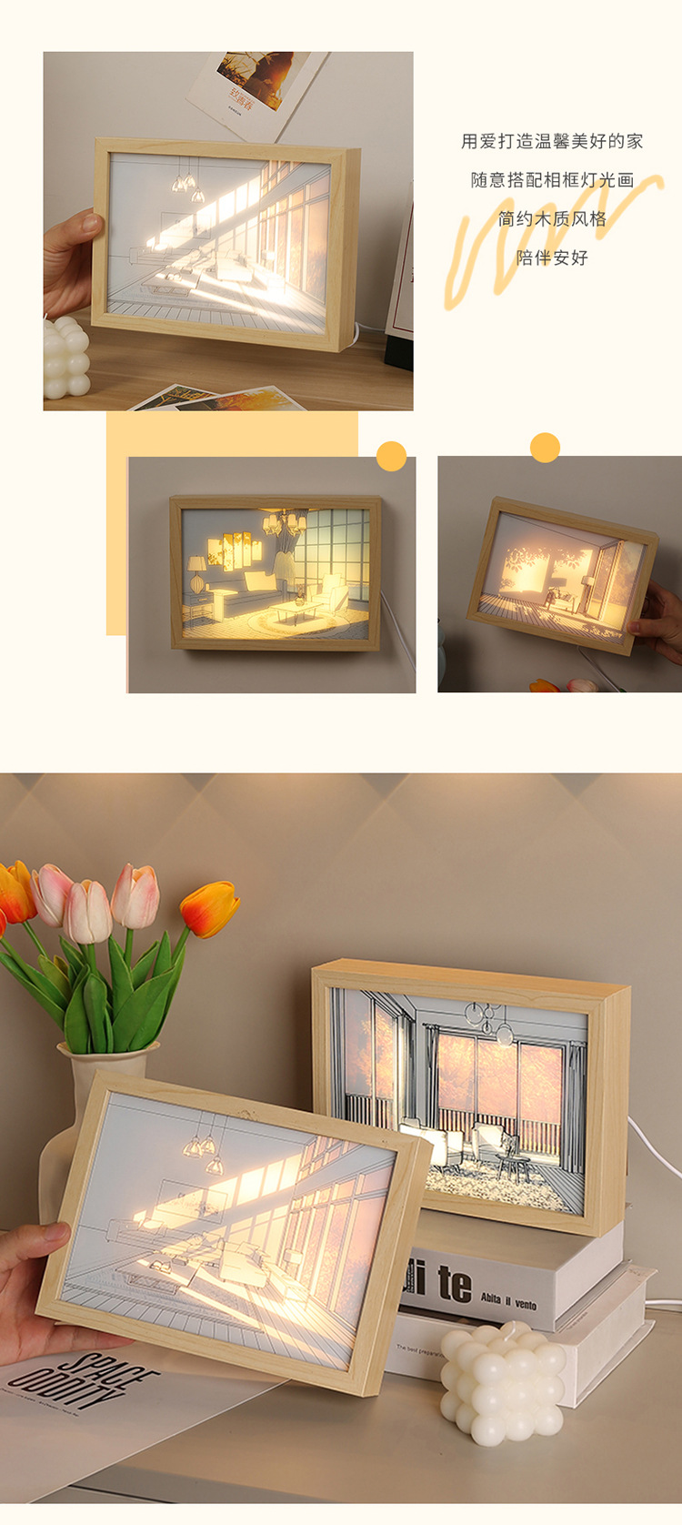 创意灯光画装饰卧室床头小夜灯相框摆件阳光画情侣女友闺蜜礼物
