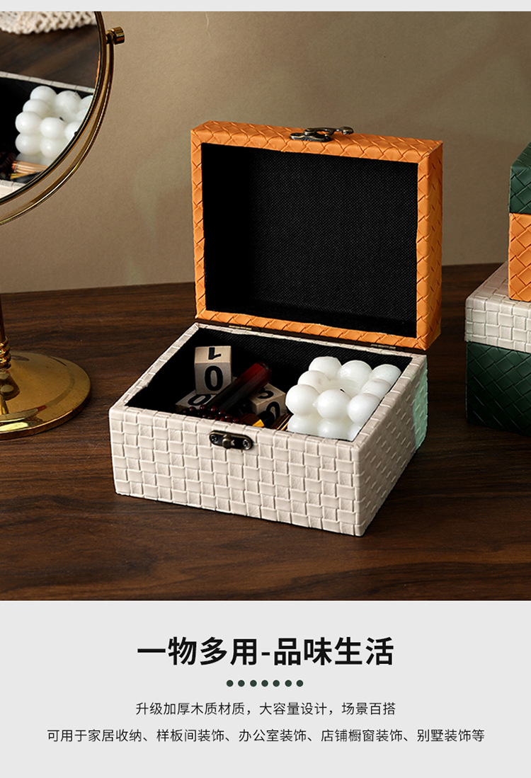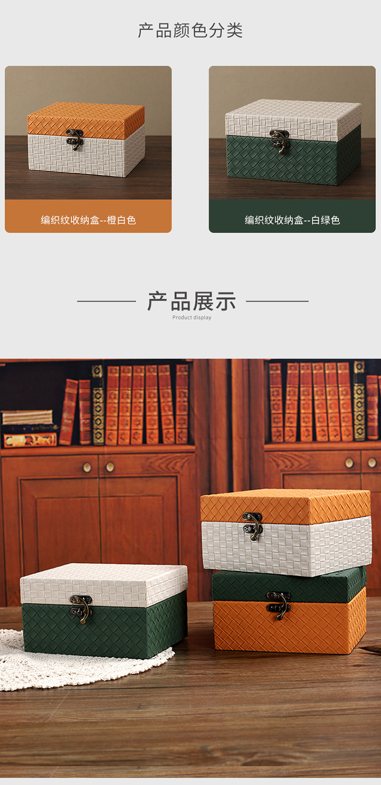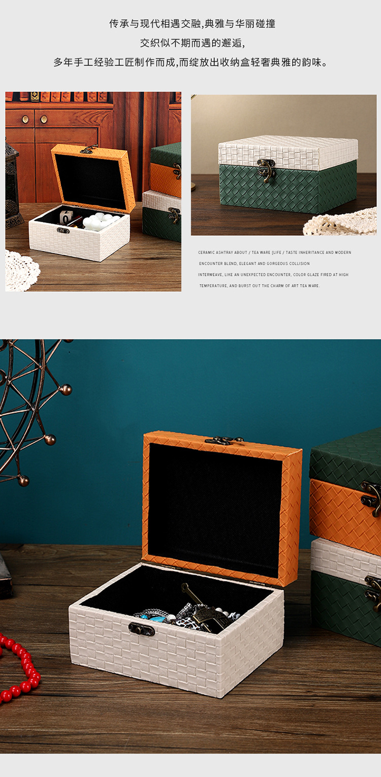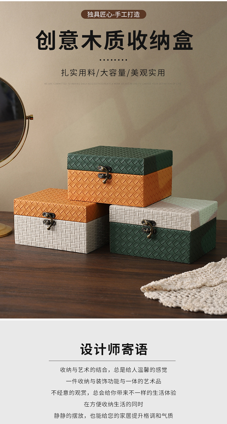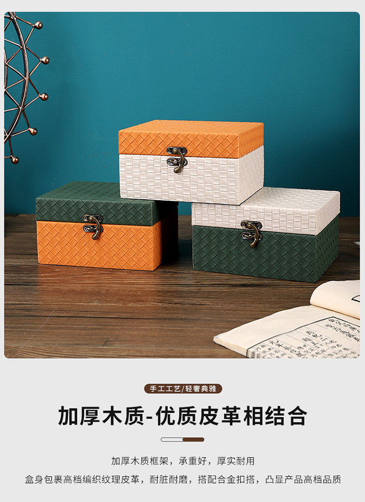 复古拼色皮革编织首饰盒装饰品桌面收纳盒小物件整理储物盒木盒子