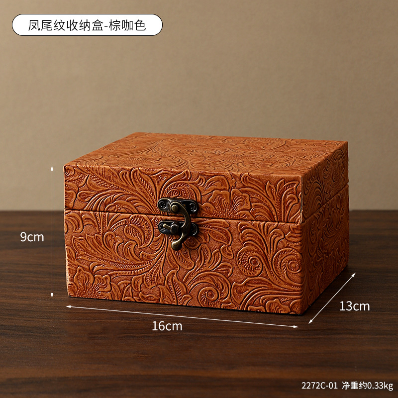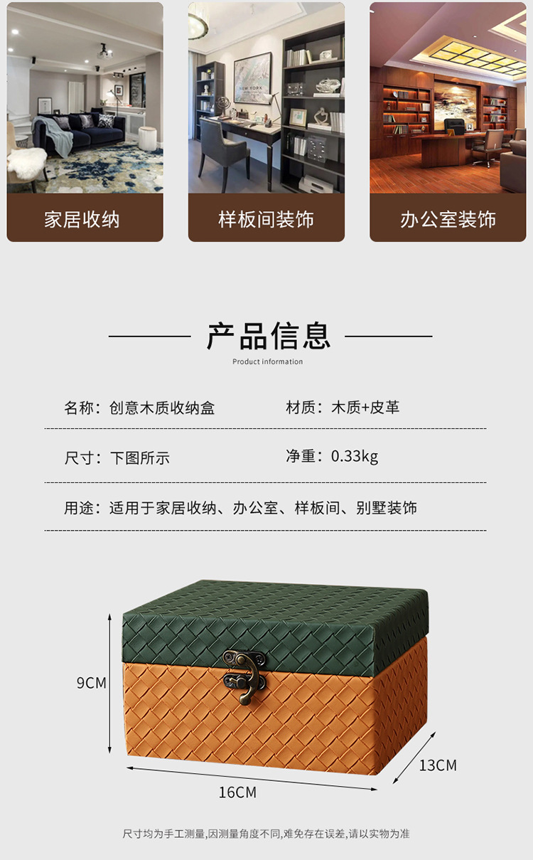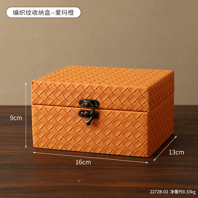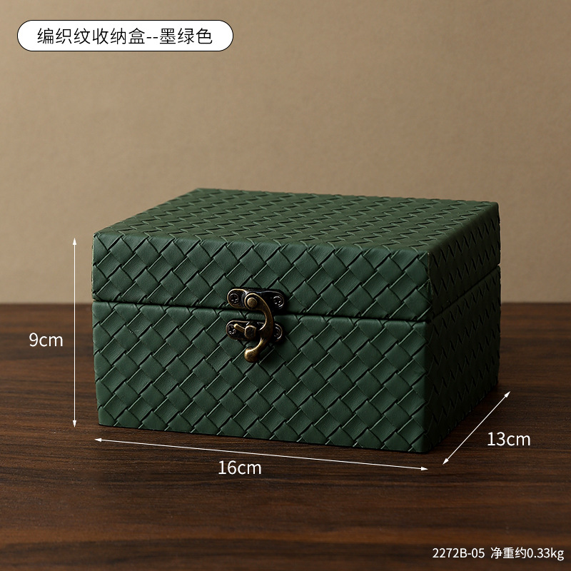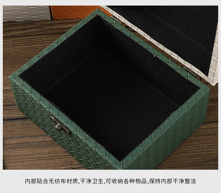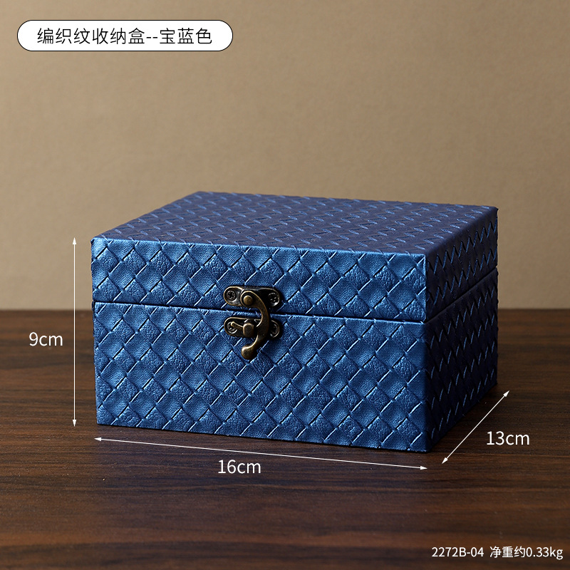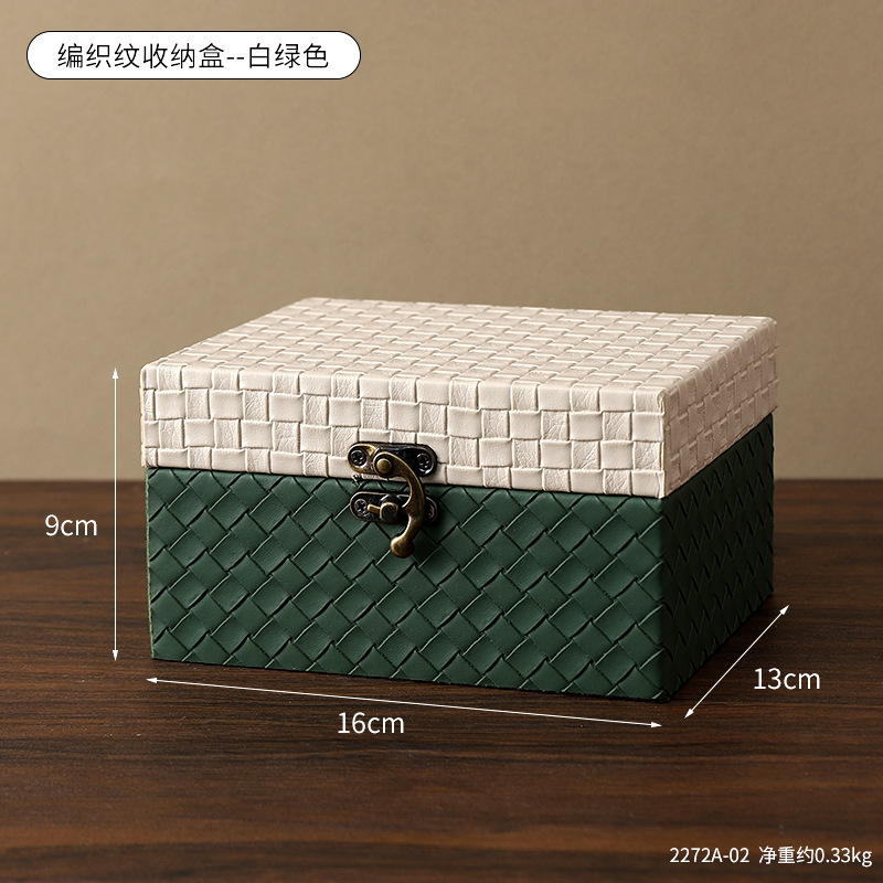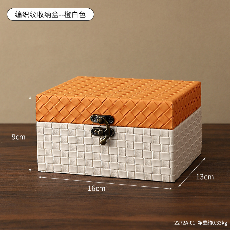 复古拼色皮革编织首饰盒装饰品桌面收纳盒小物件整理储物盒木盒子