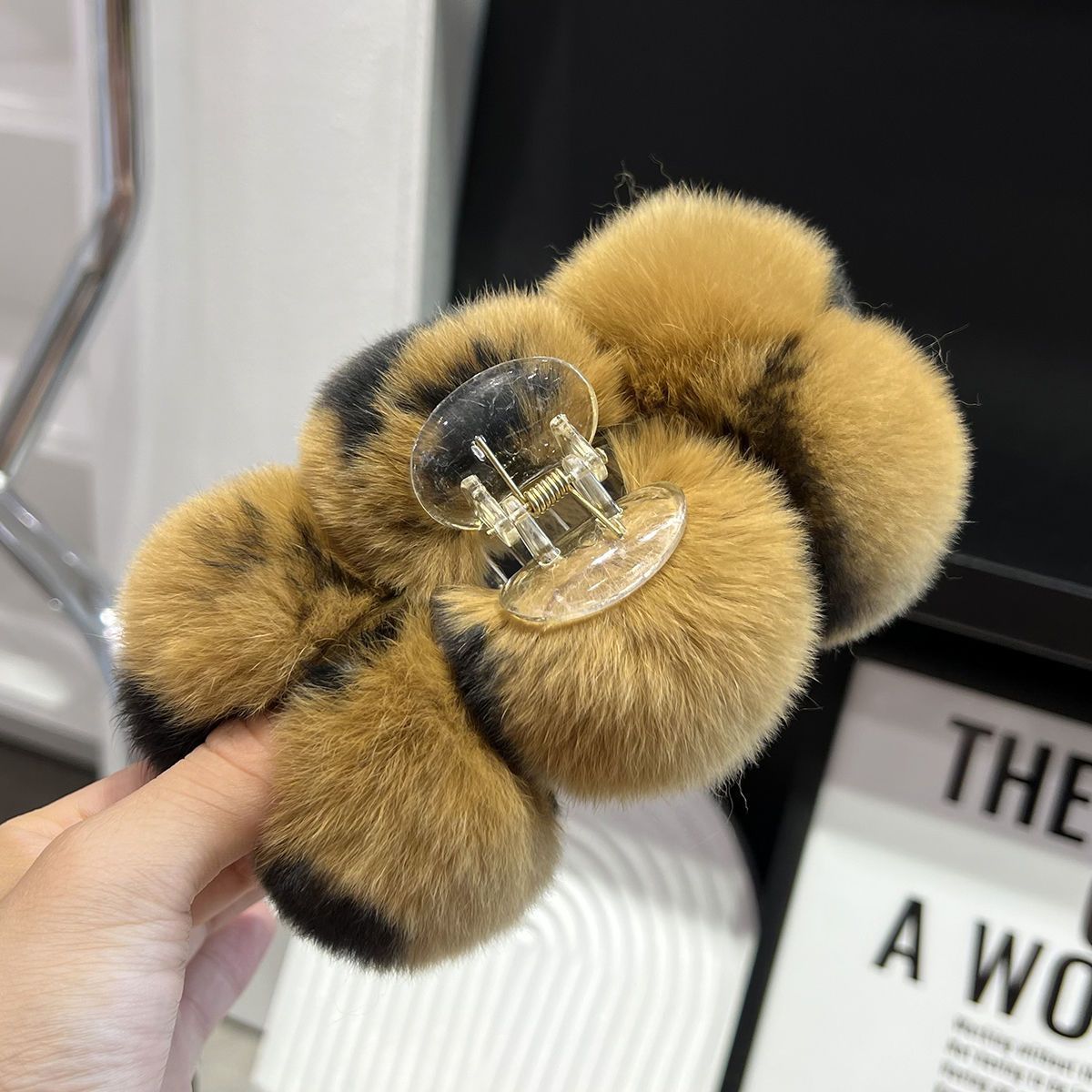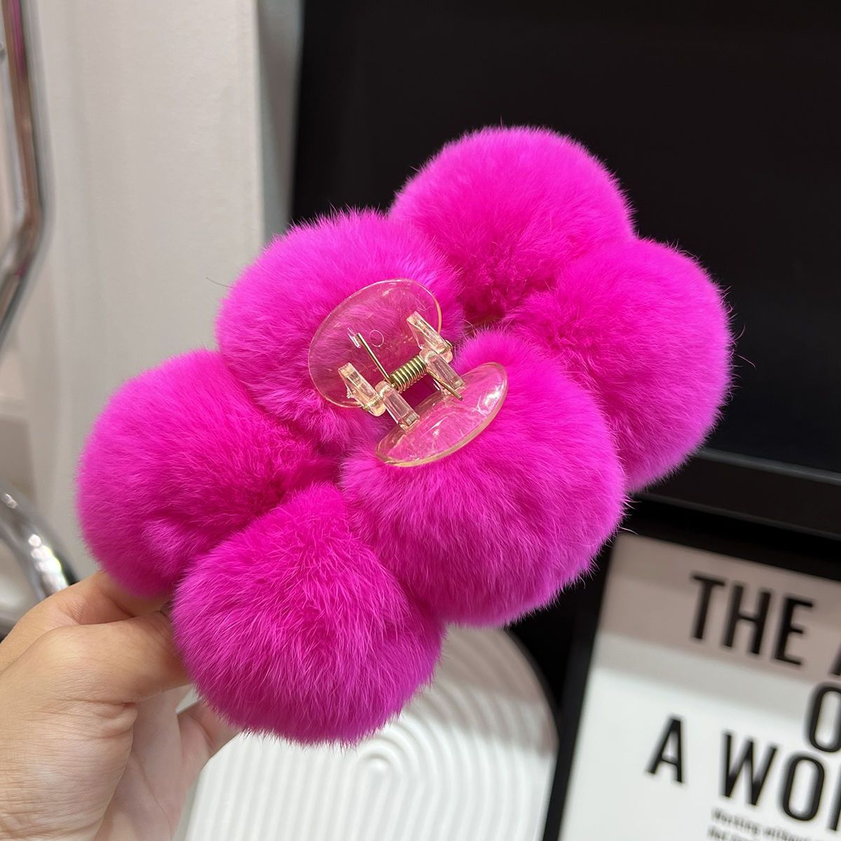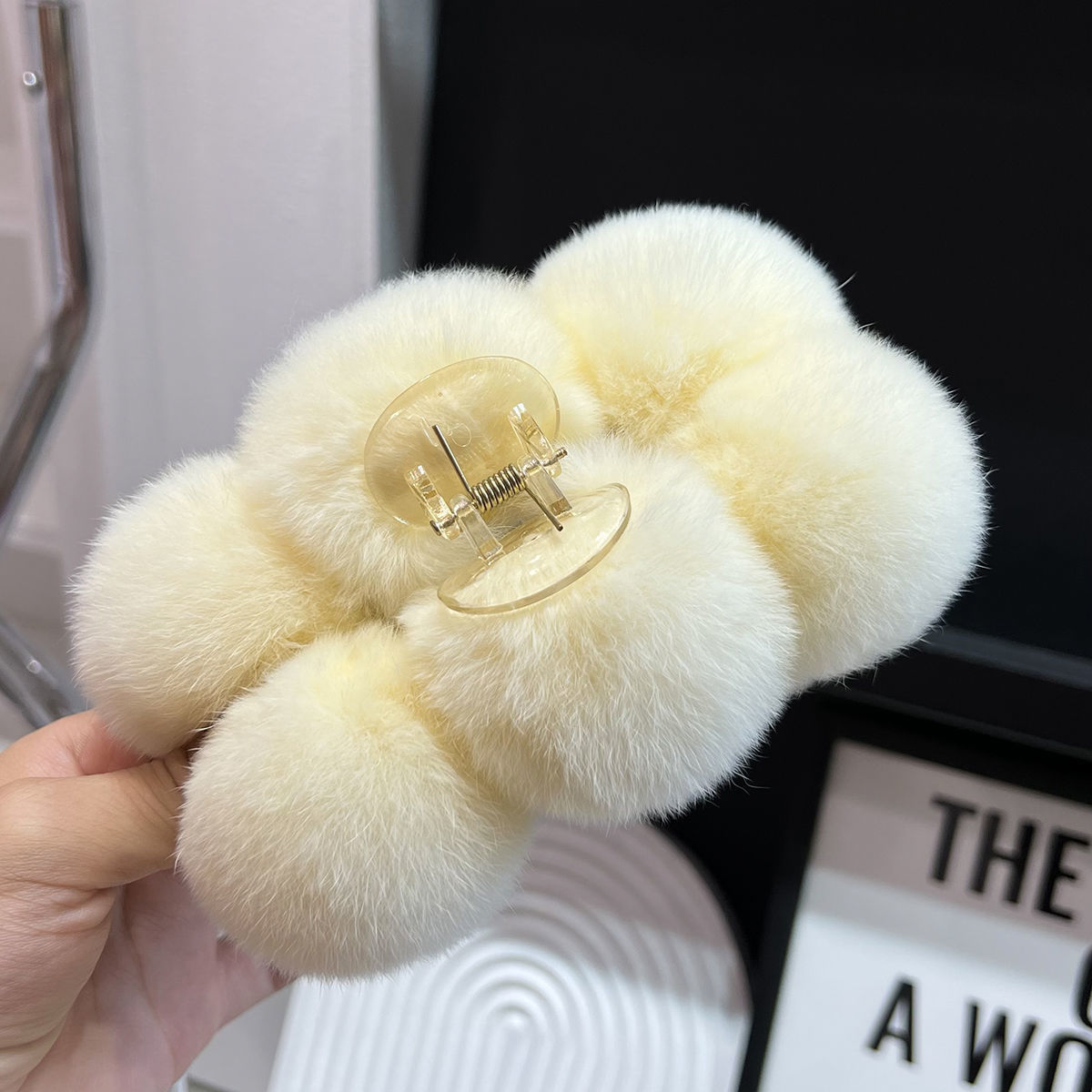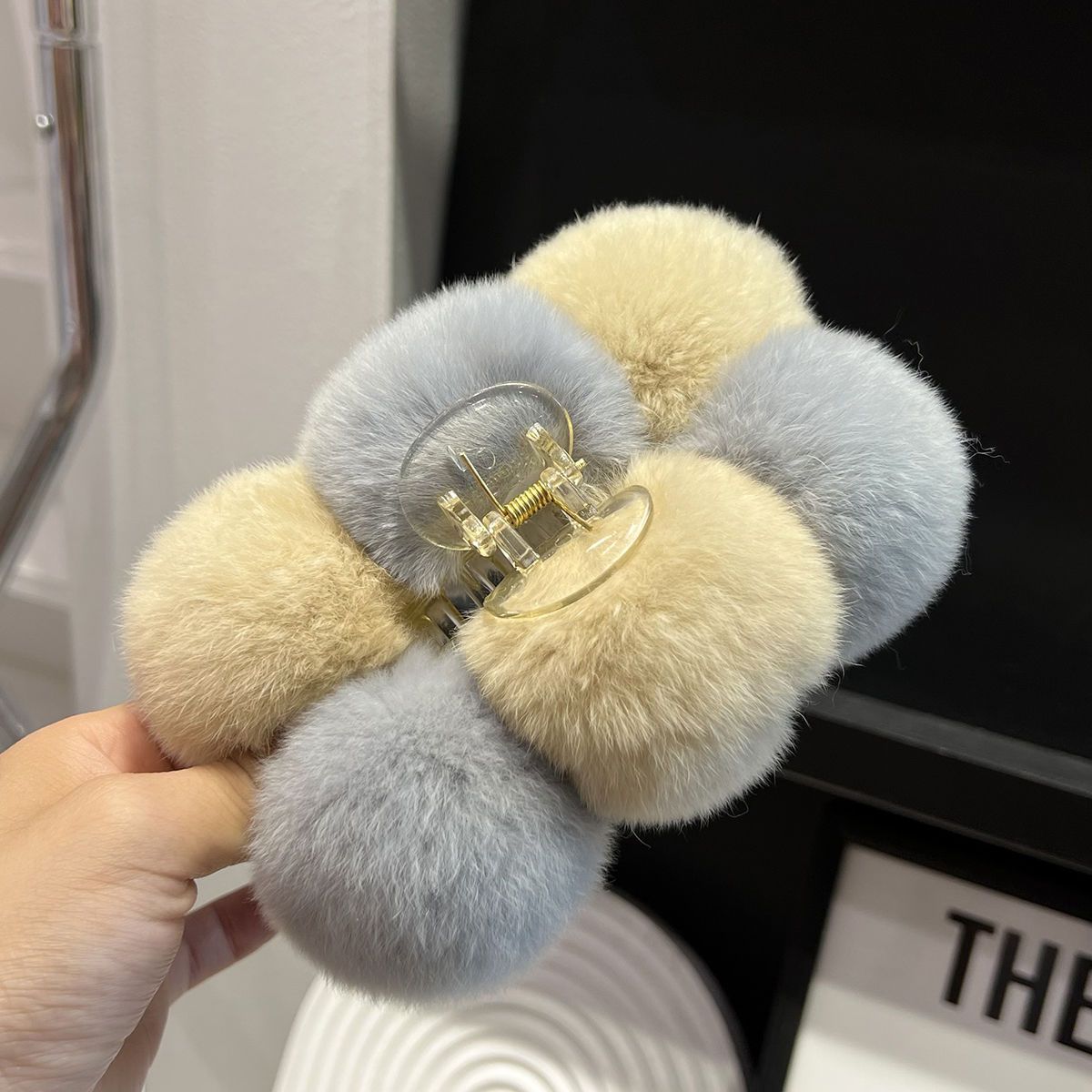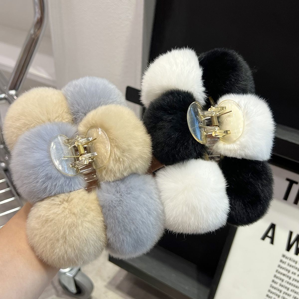 批发秋冬季新款仿獭兔毛毛球抓卡时尚网红鲨鱼夹发卡抖音爆款