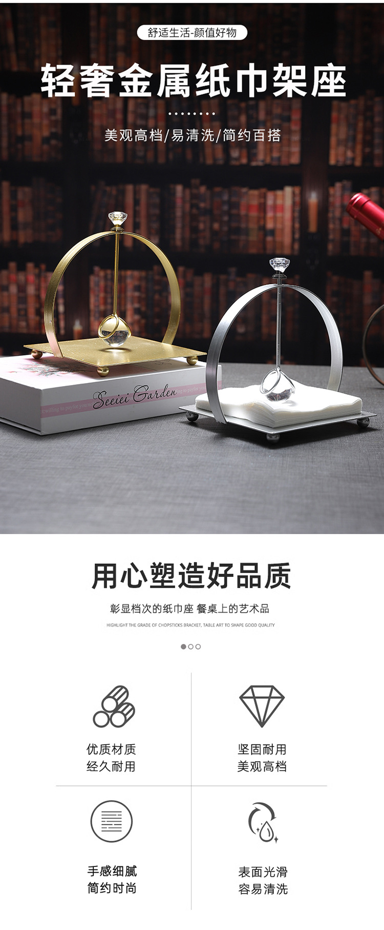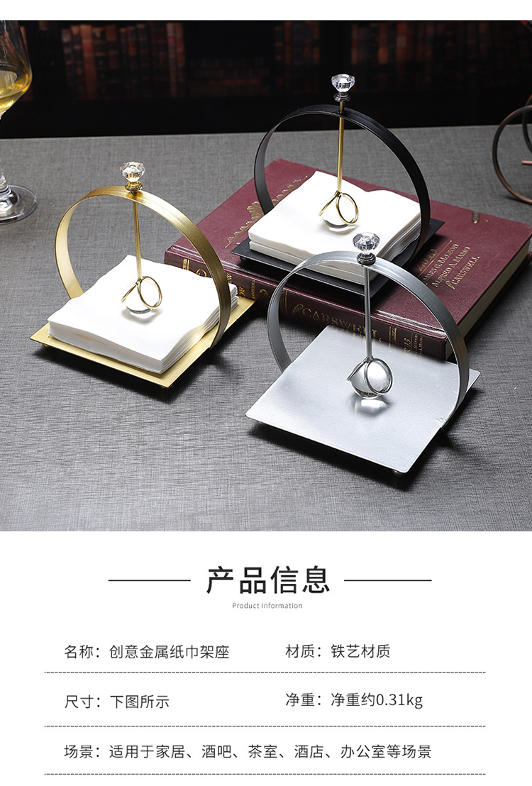 现代轻奢创意圆弧形金属纸巾架酒吧酒店餐厅咖啡店桌面艺术纸巾架