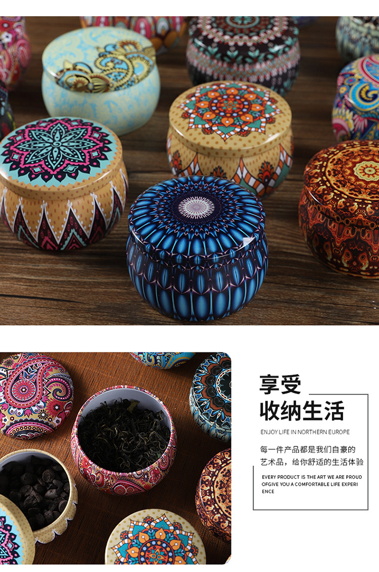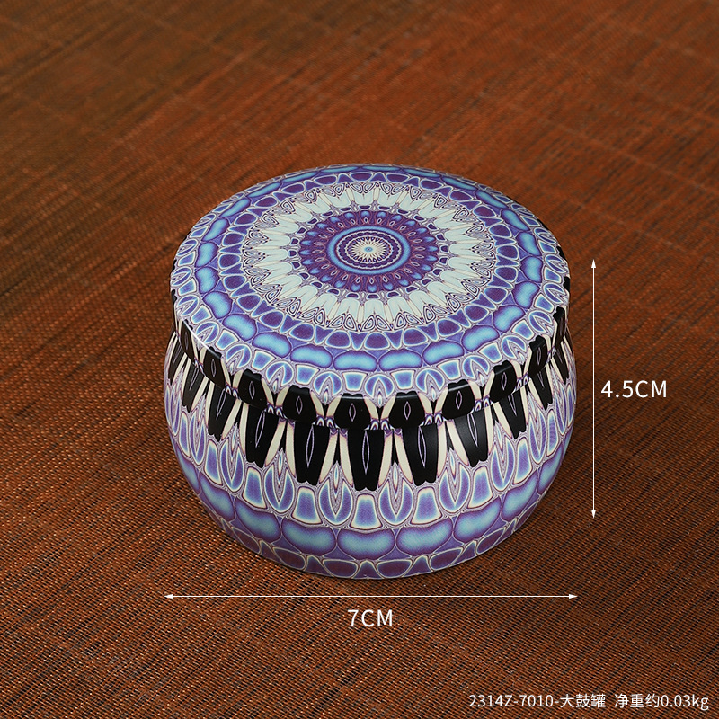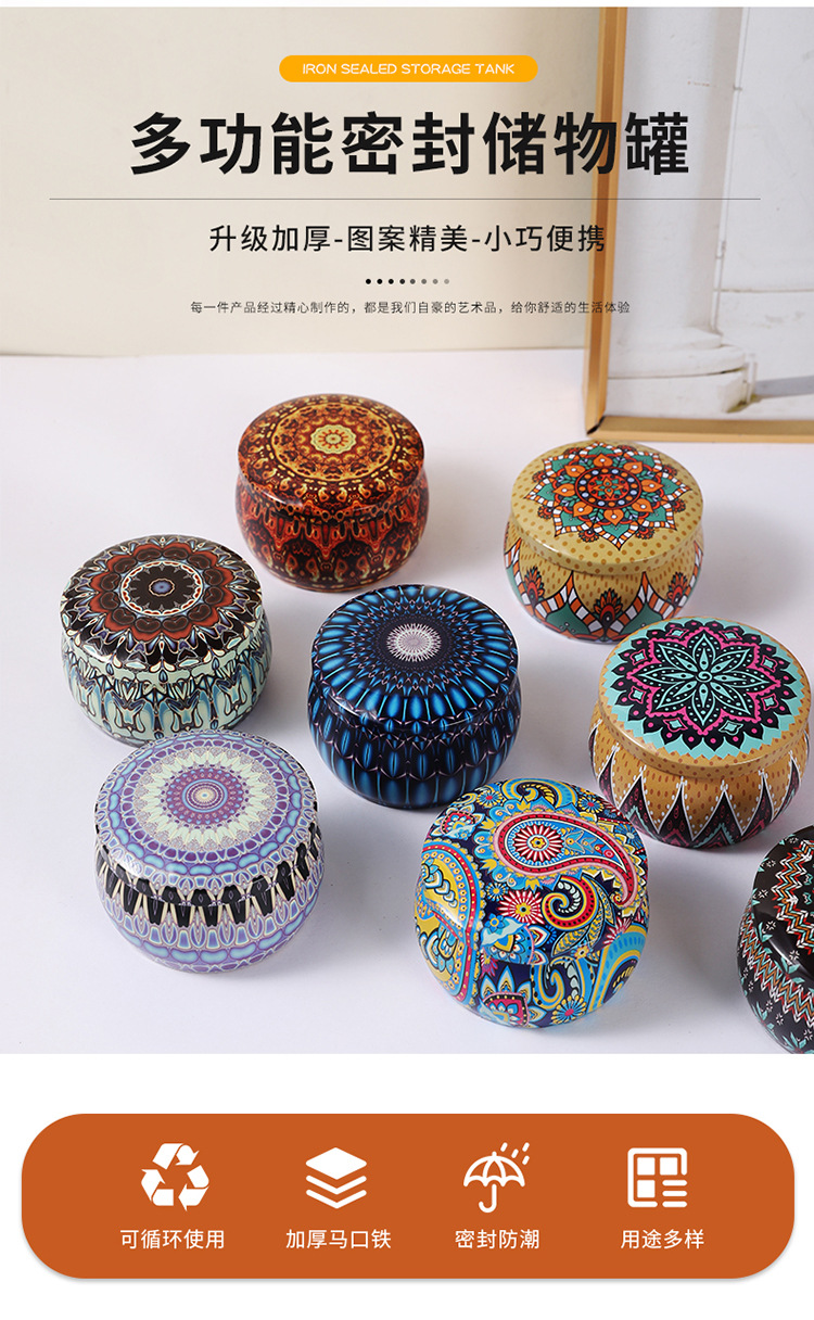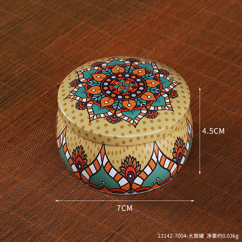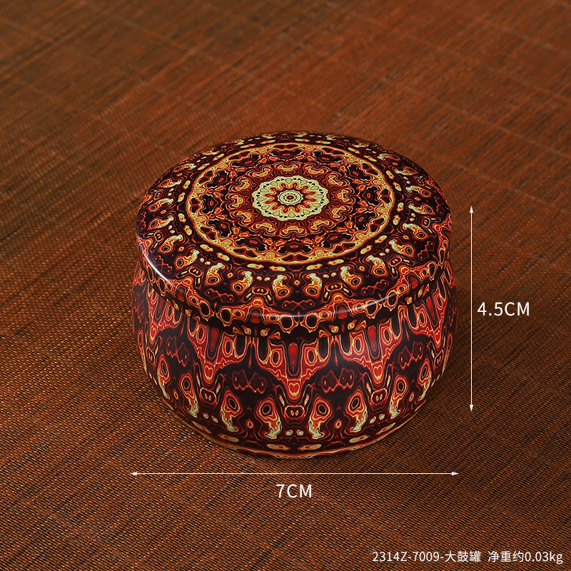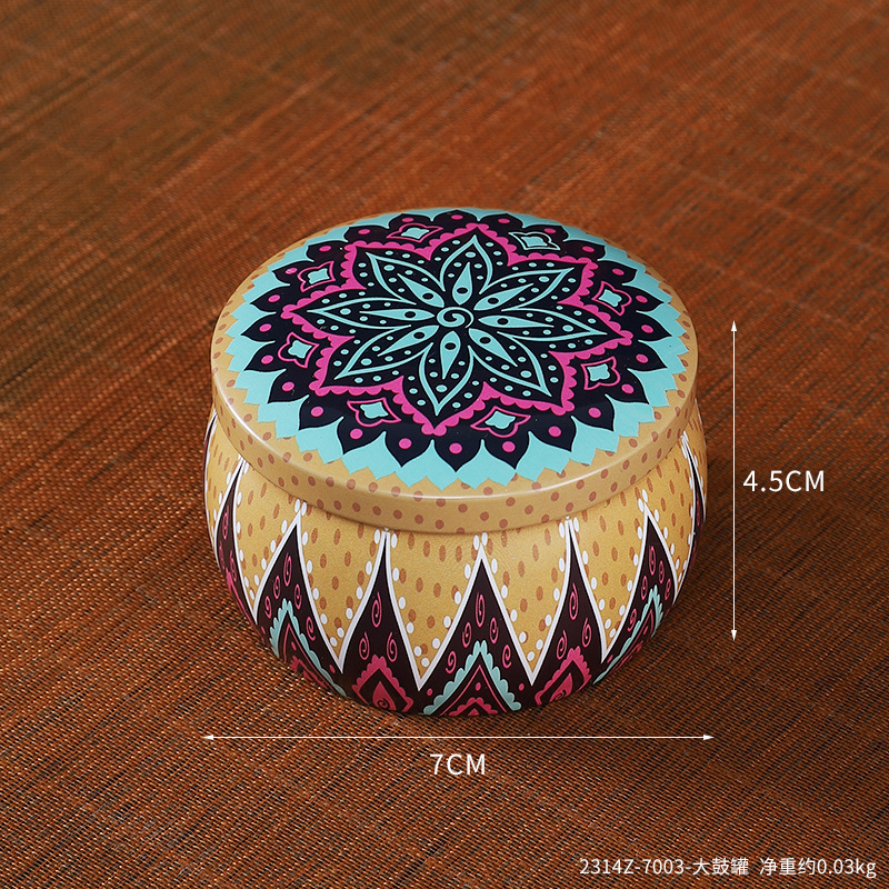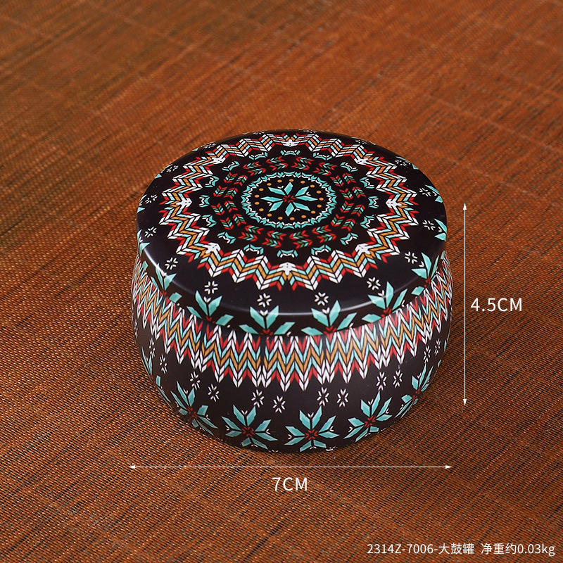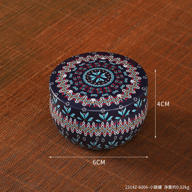 复古几何印花圆形大肚罐马口铁香薰蜡烛罐子糖果杂物迷你收纳罐