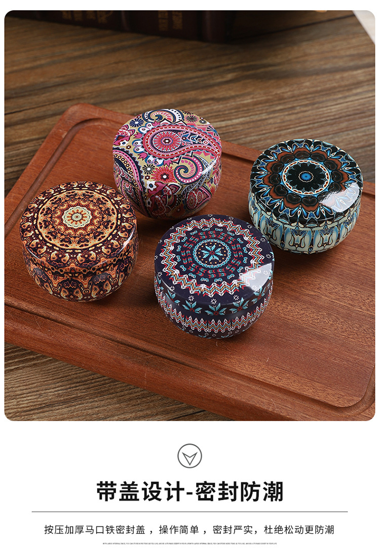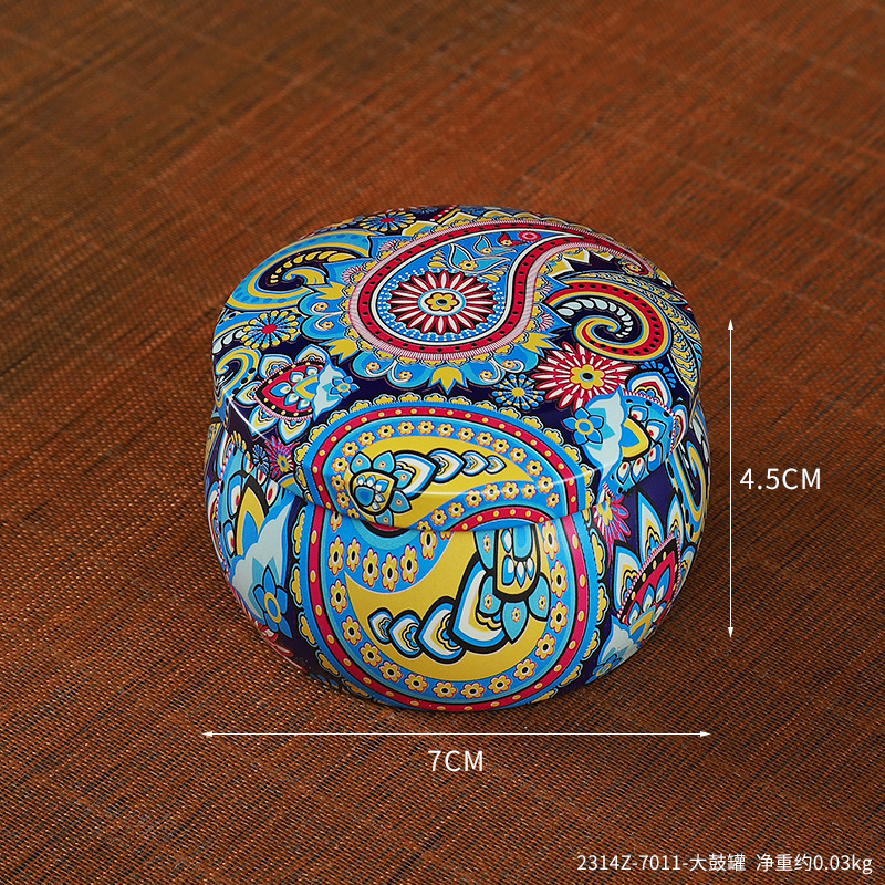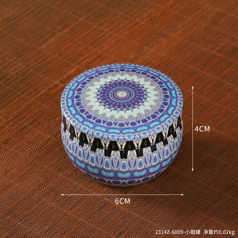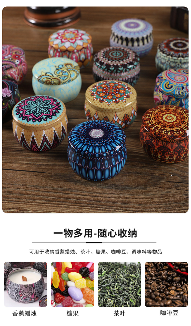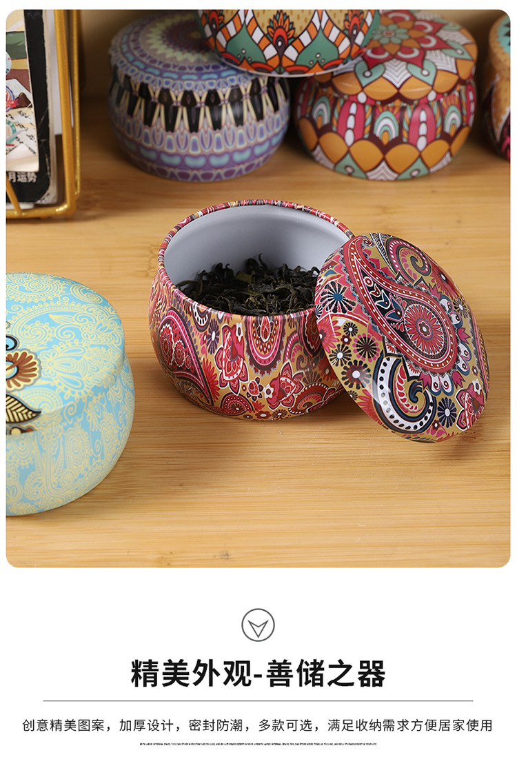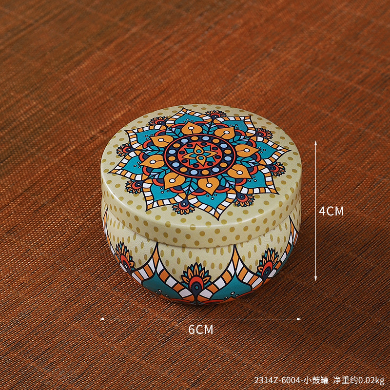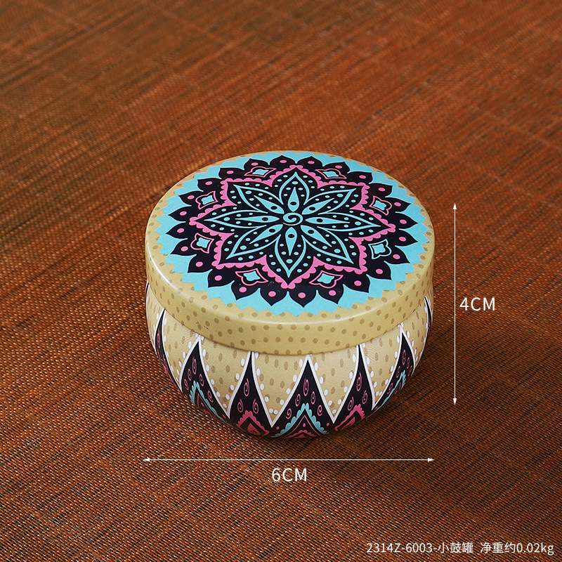 复古几何印花圆形大肚罐马口铁香薰蜡烛罐子糖果杂物迷你收纳罐