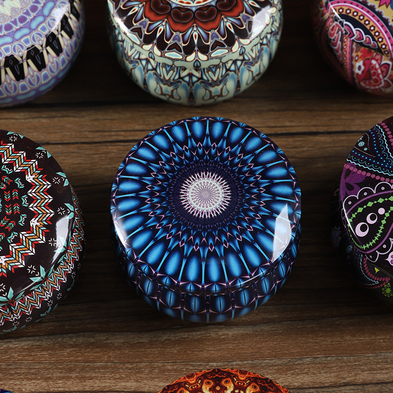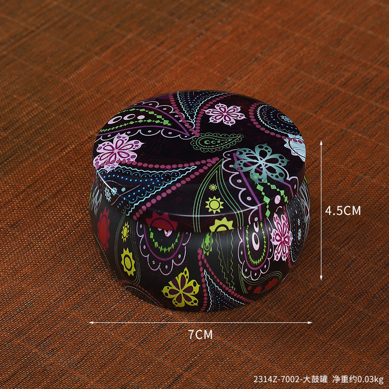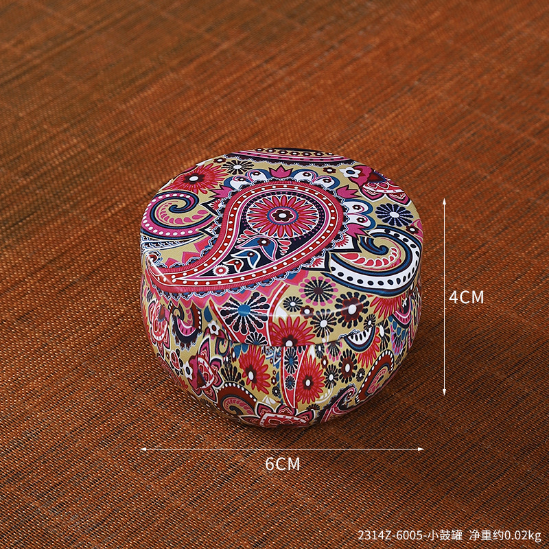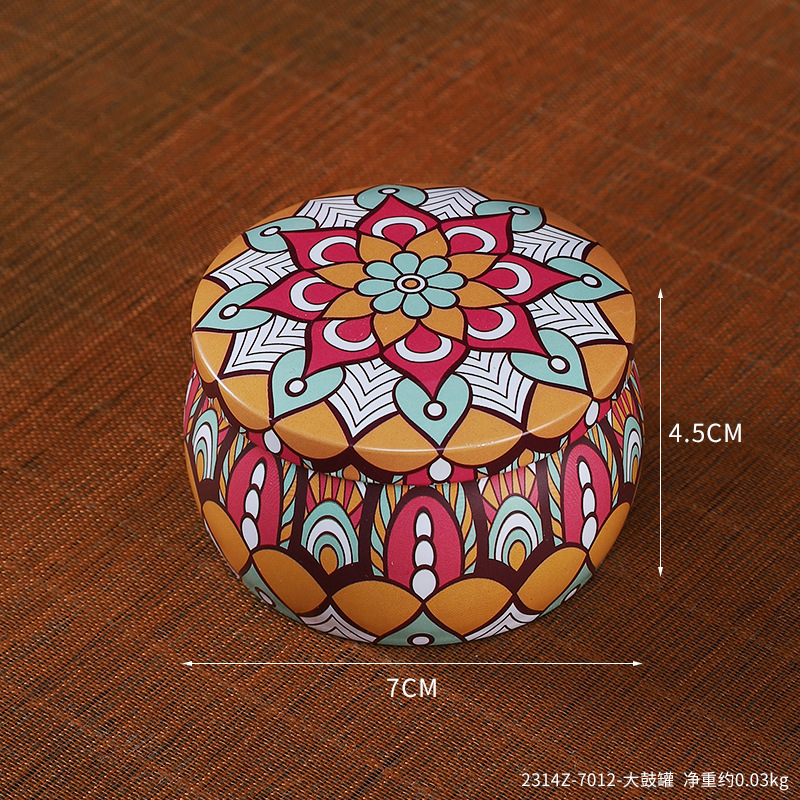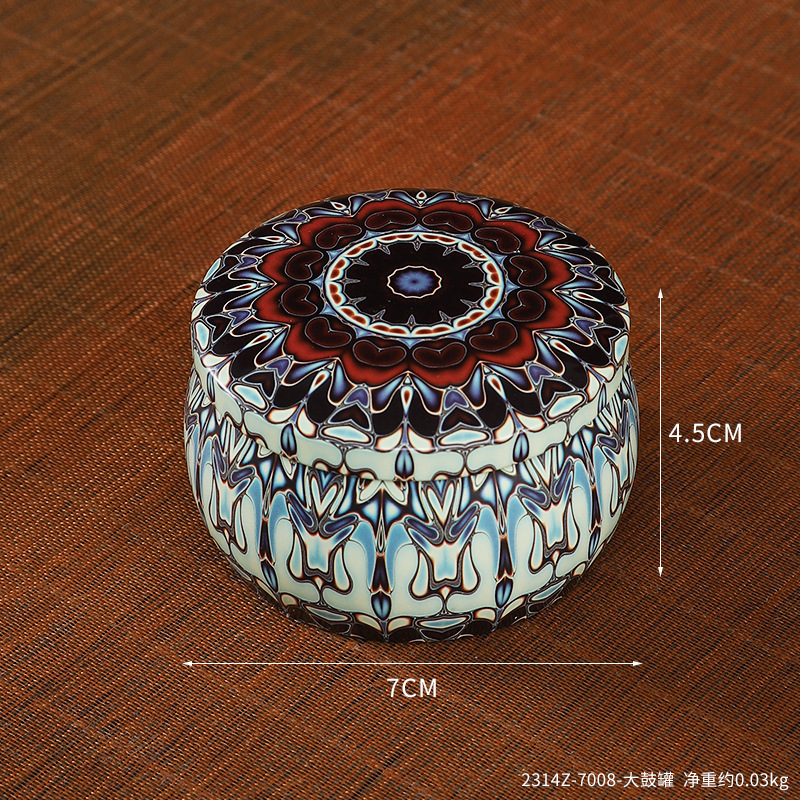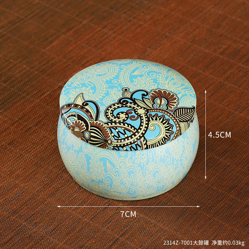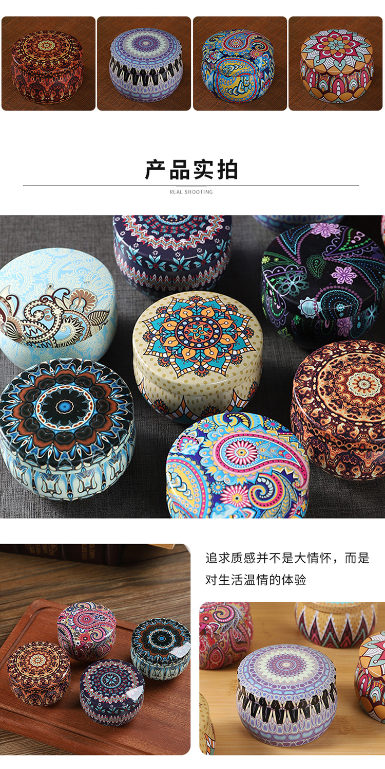 复古几何印花圆形大肚罐马口铁香薰蜡烛罐子糖果杂物迷你收纳罐