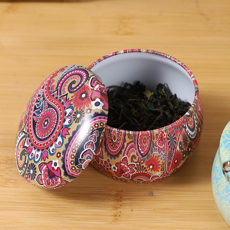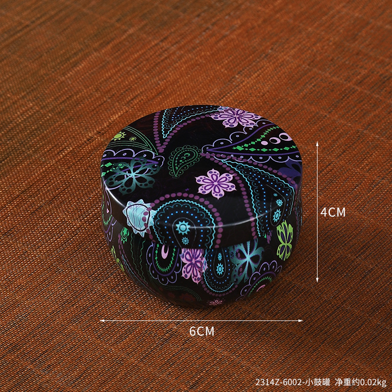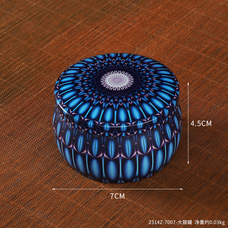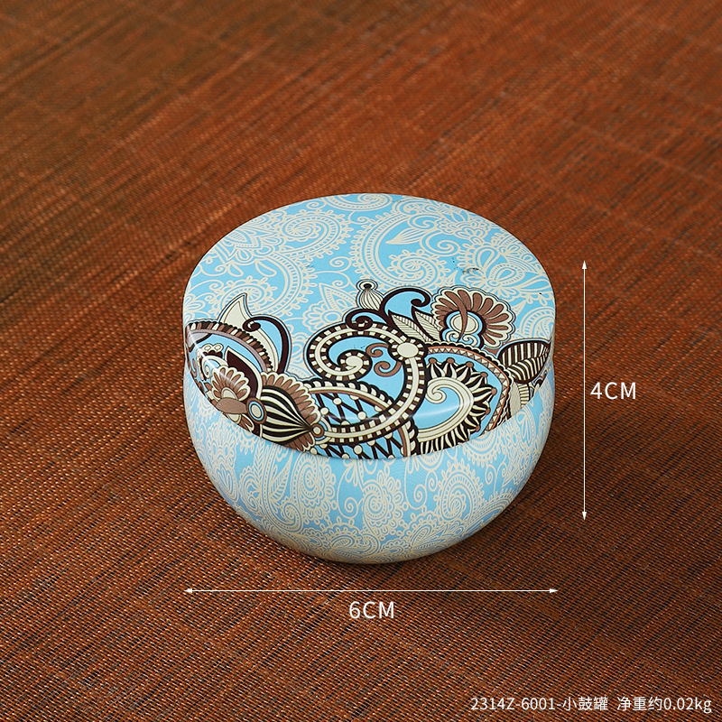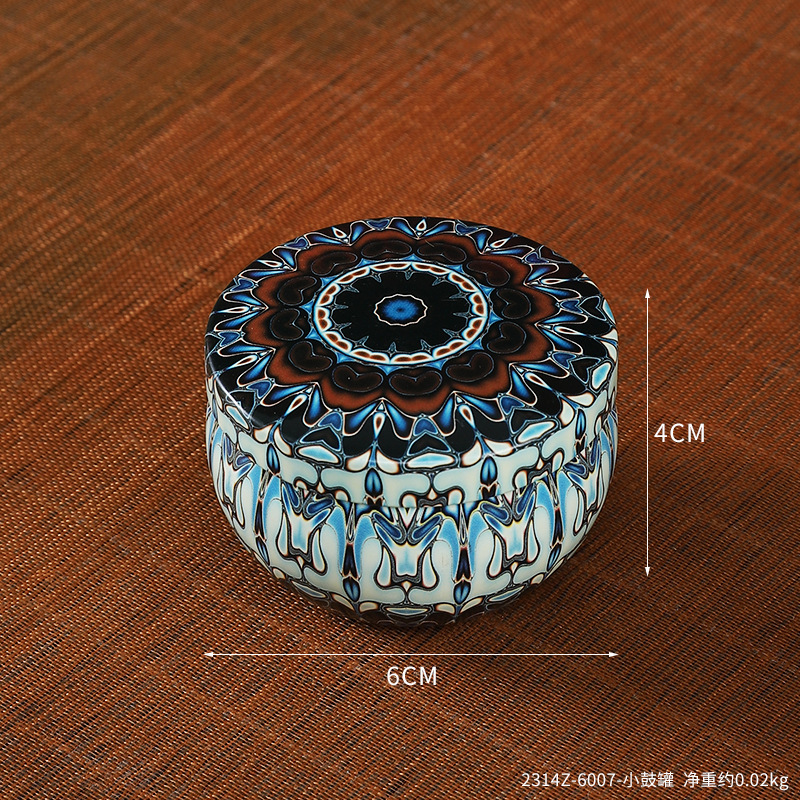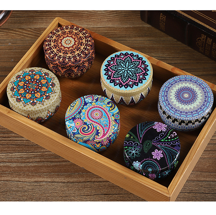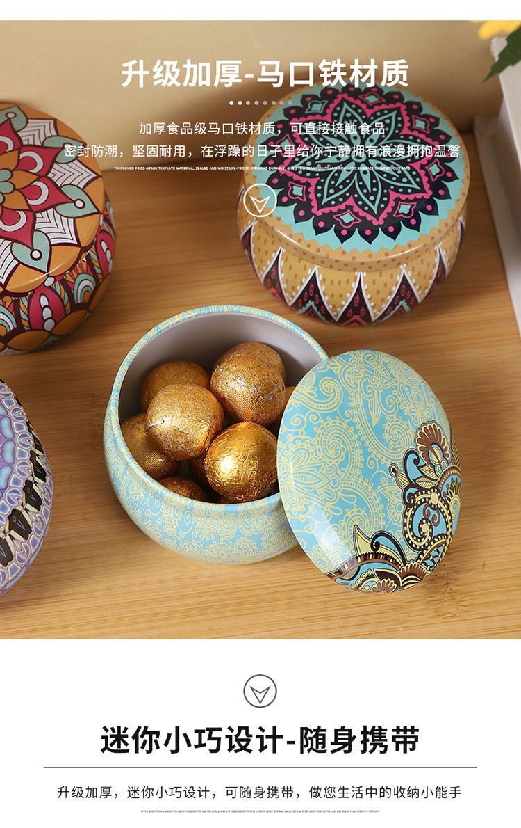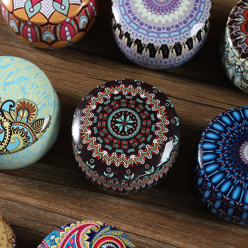 复古几何印花圆形大肚罐马口铁香薰蜡烛罐子糖果杂物迷你收纳罐