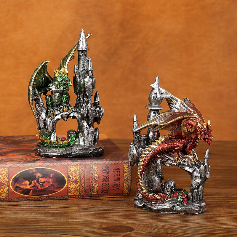 跨境万圣节道具熔岩战斗龙桌面摆件手办欧式万圣节骷髅龙布置道具