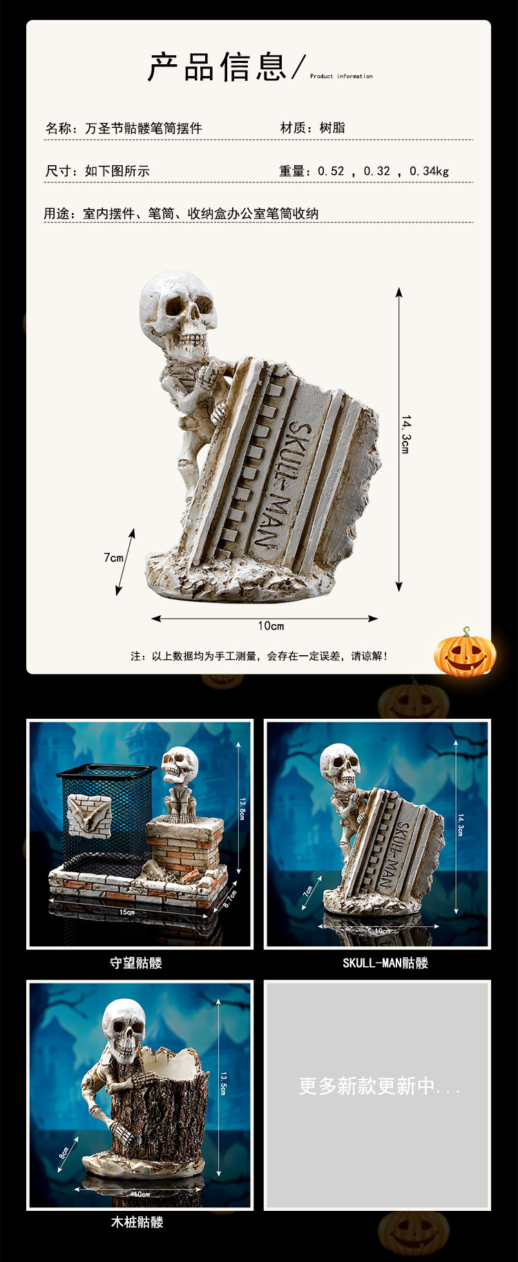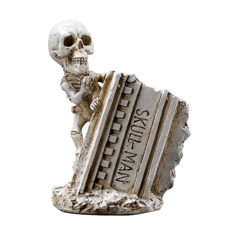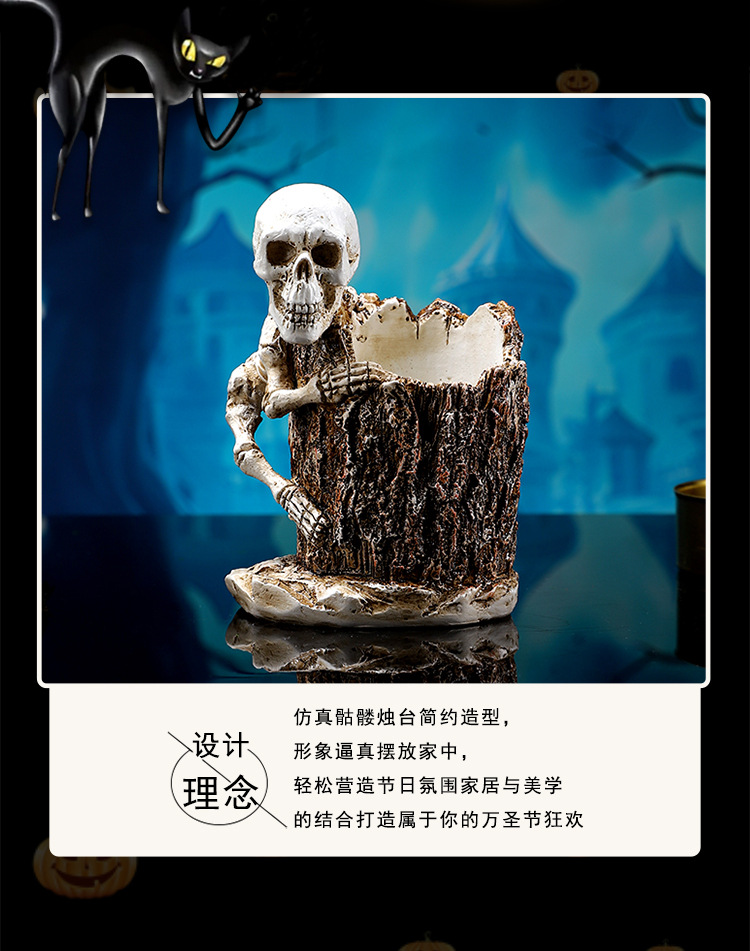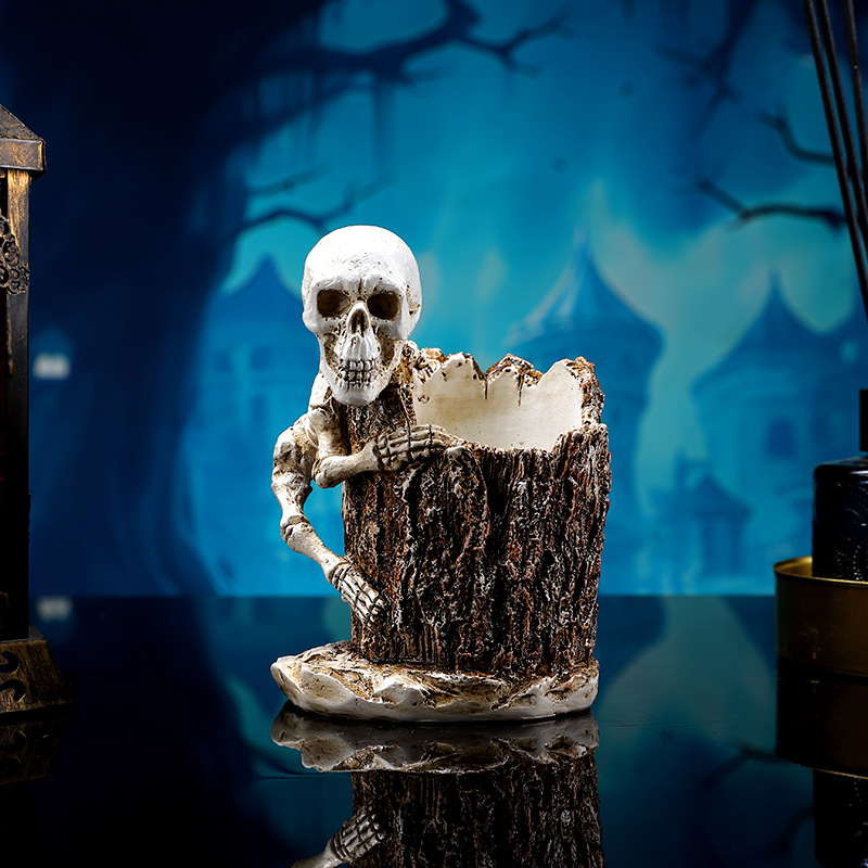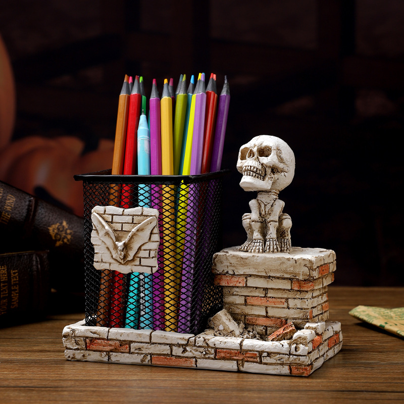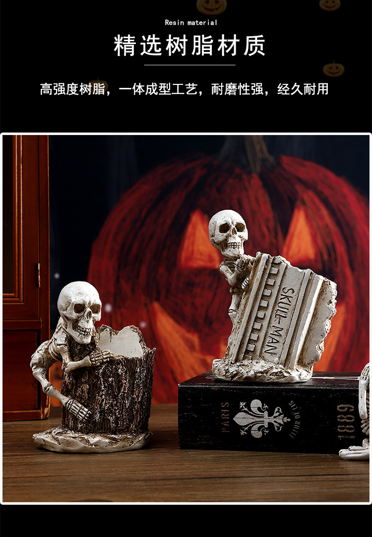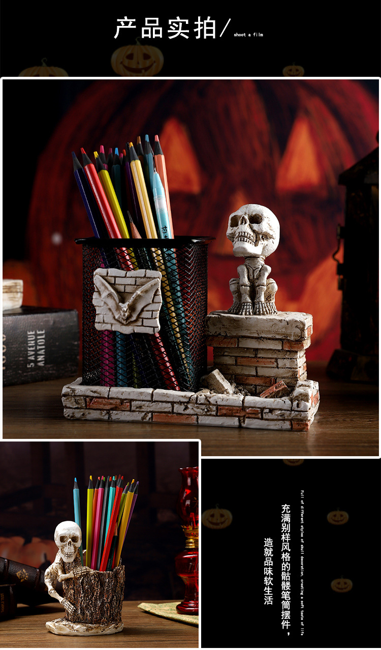 跨境暗黑系万圣节骷髅笔筒家居书房书桌面杂物收纳筒树脂工艺品