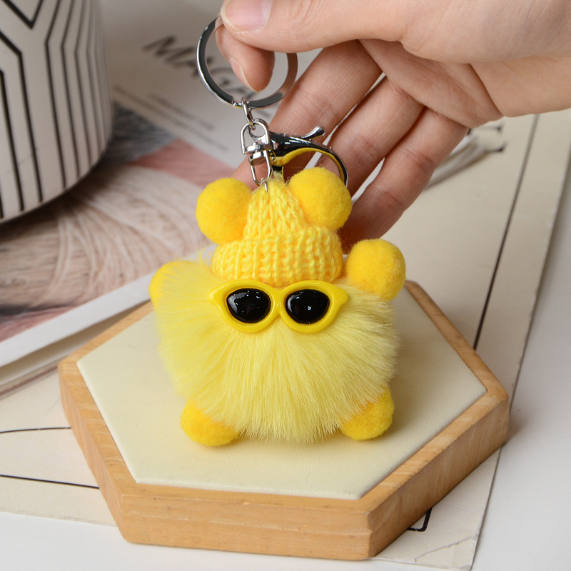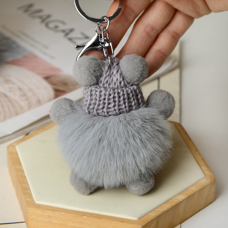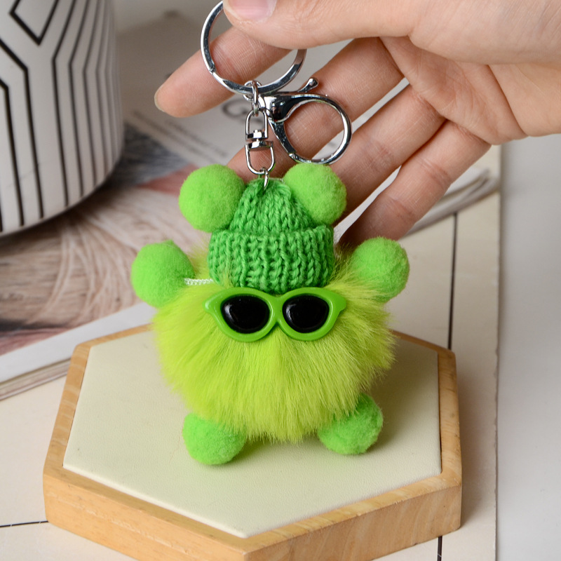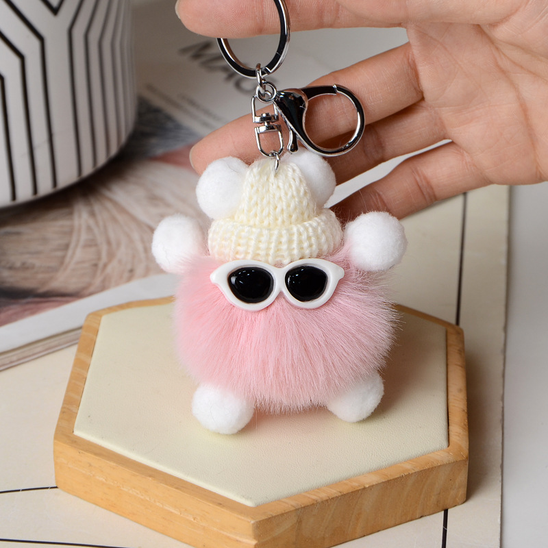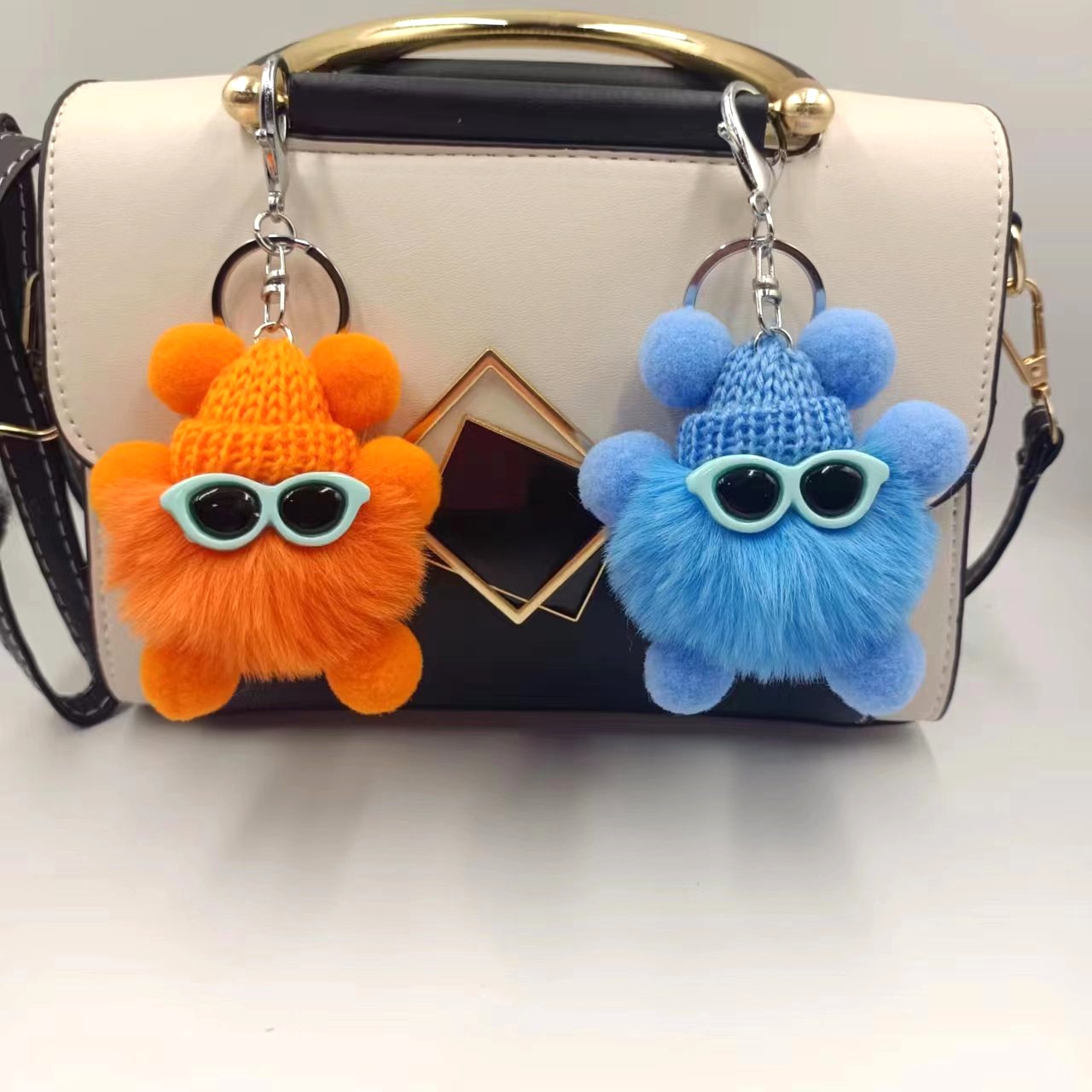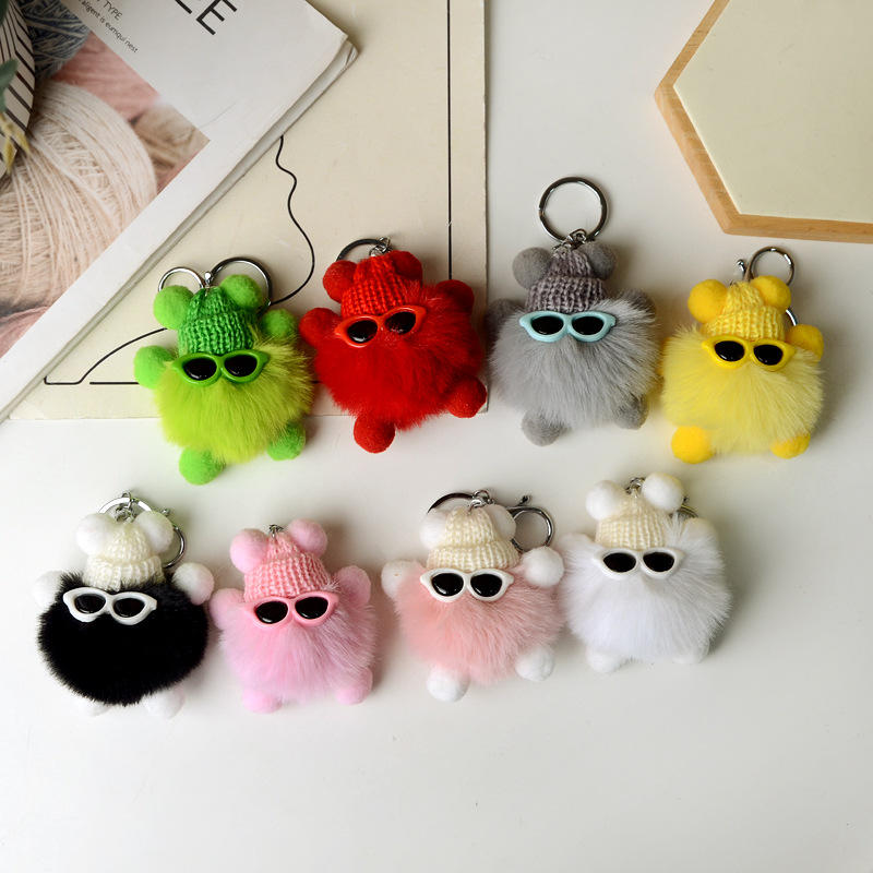 批发仿毛小煤球挂件可爱卡通毛绒包包挂饰酷潮汽车钥匙扣手机链