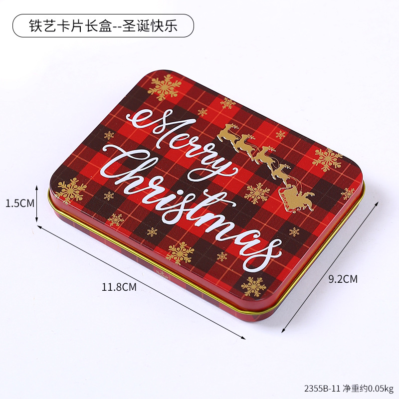圣诞节日礼物包装盒糖果曲奇饼干小卡片杂物收纳盒空盒长方形铁盒