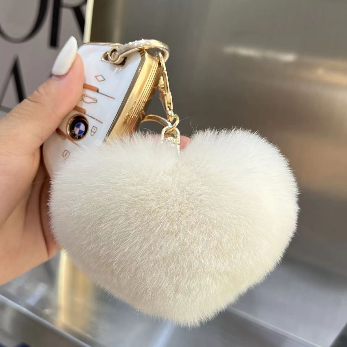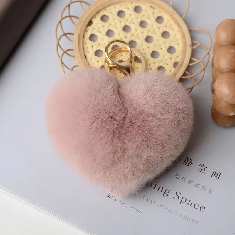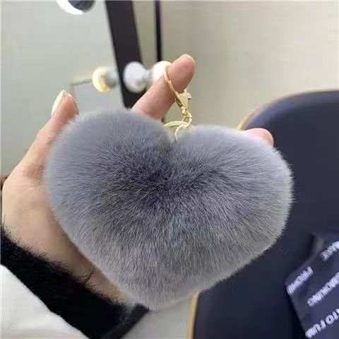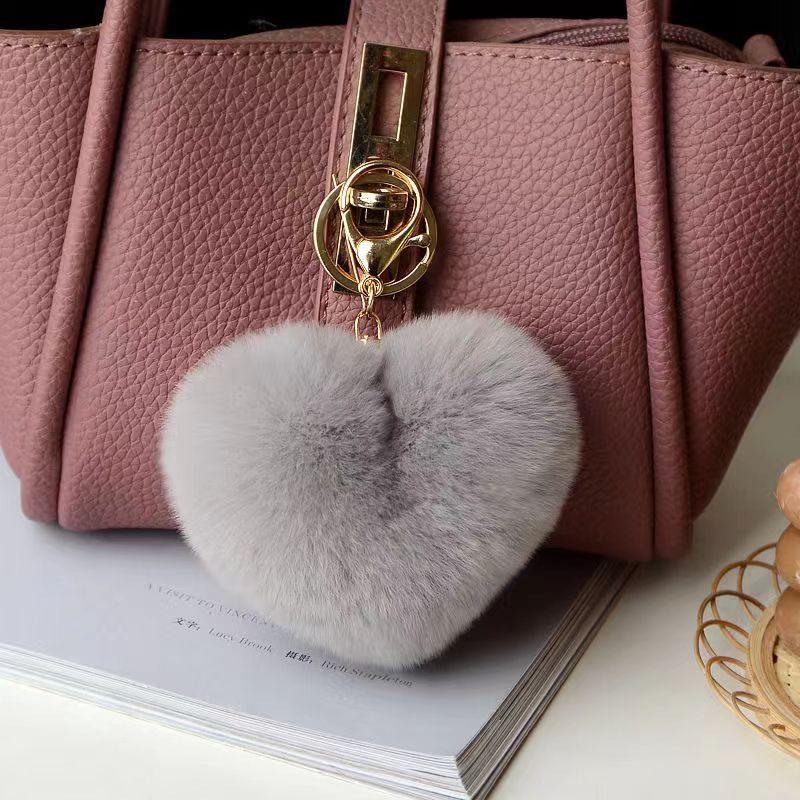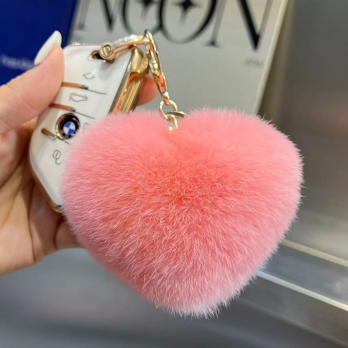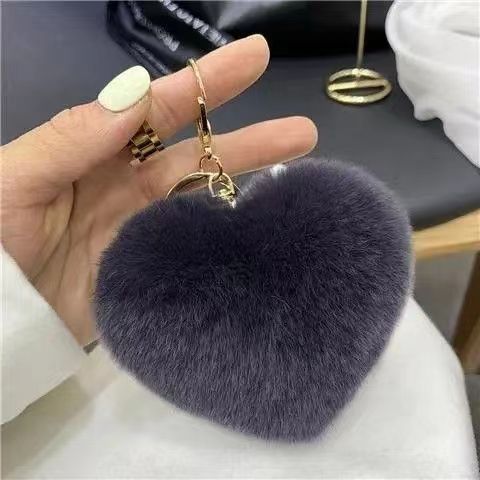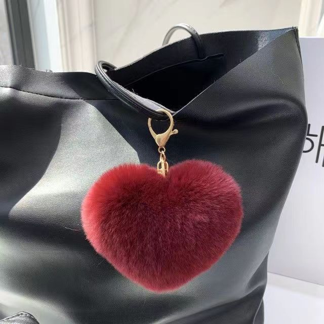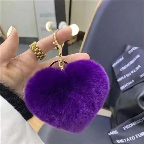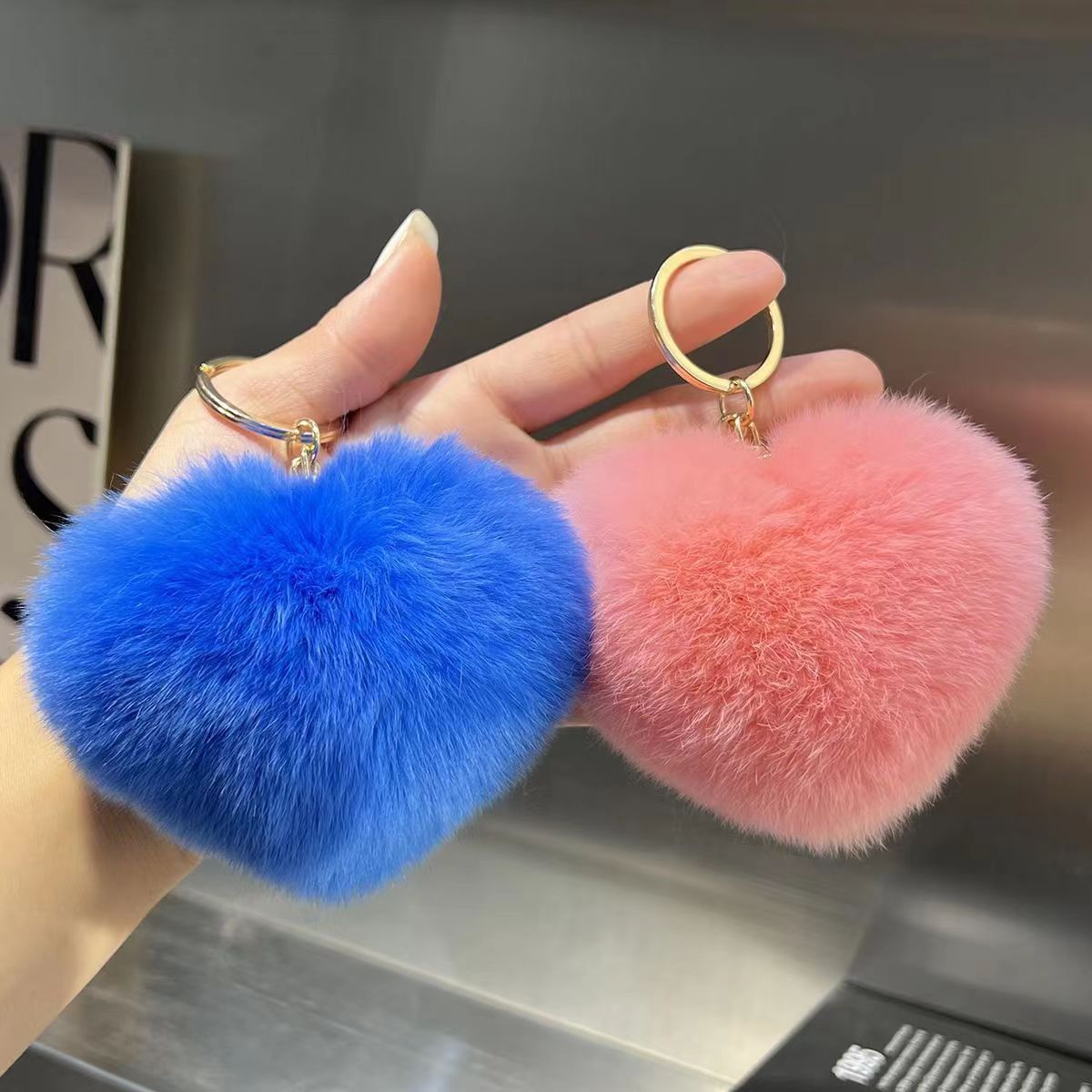 热销仿毛绒爱心挂件毛球桃心钥匙扣时尚包包挂件汽车钥匙扣