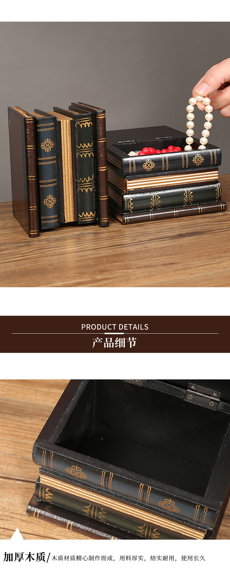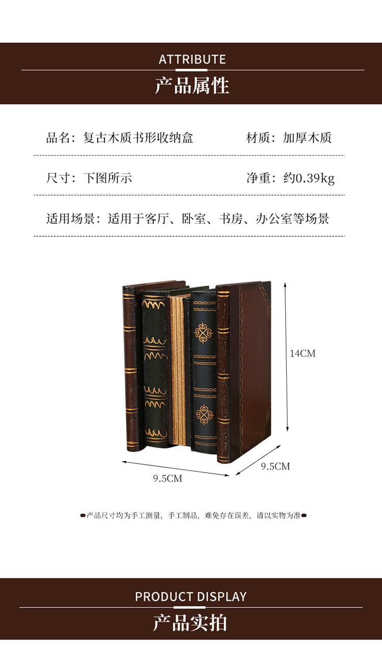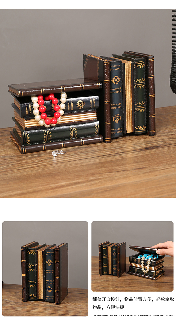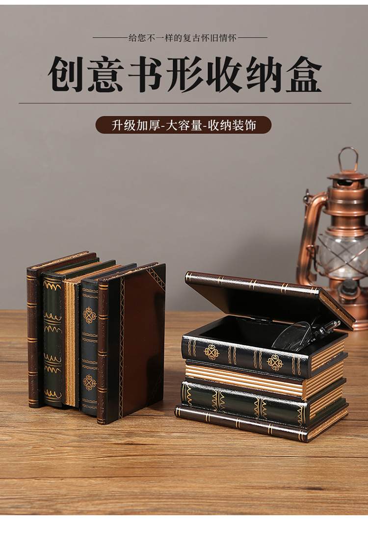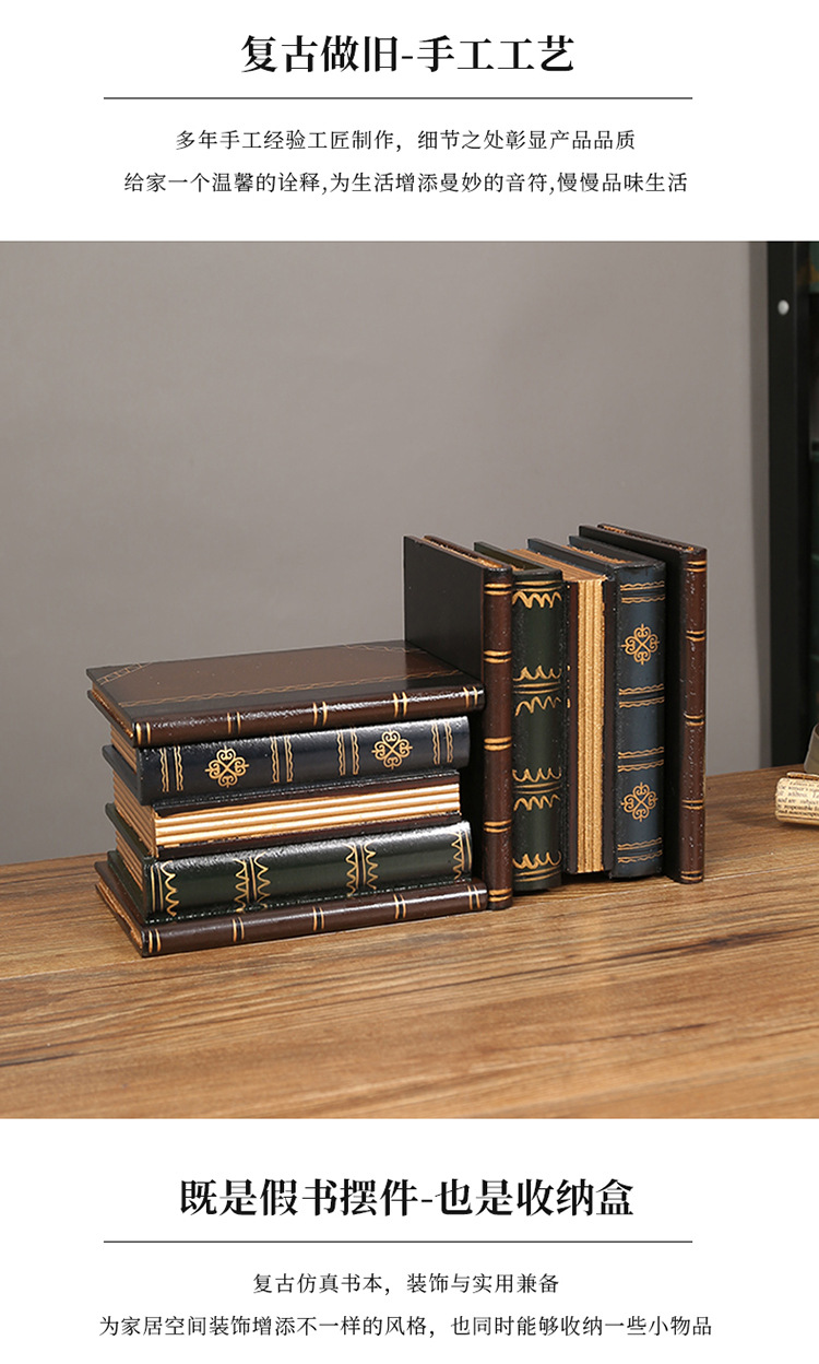 欧式复古笔筒书房办公室假书摆件桌面装饰拍照道具仿真书盒收纳盒