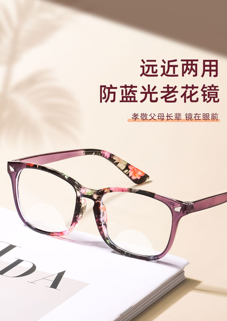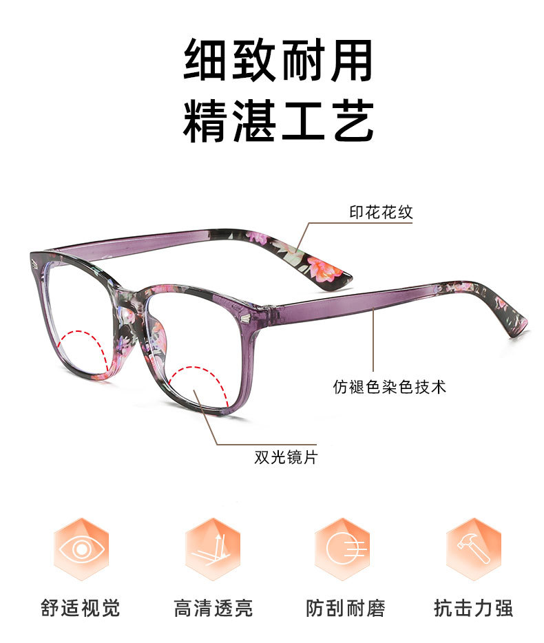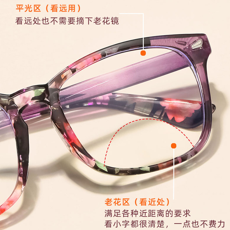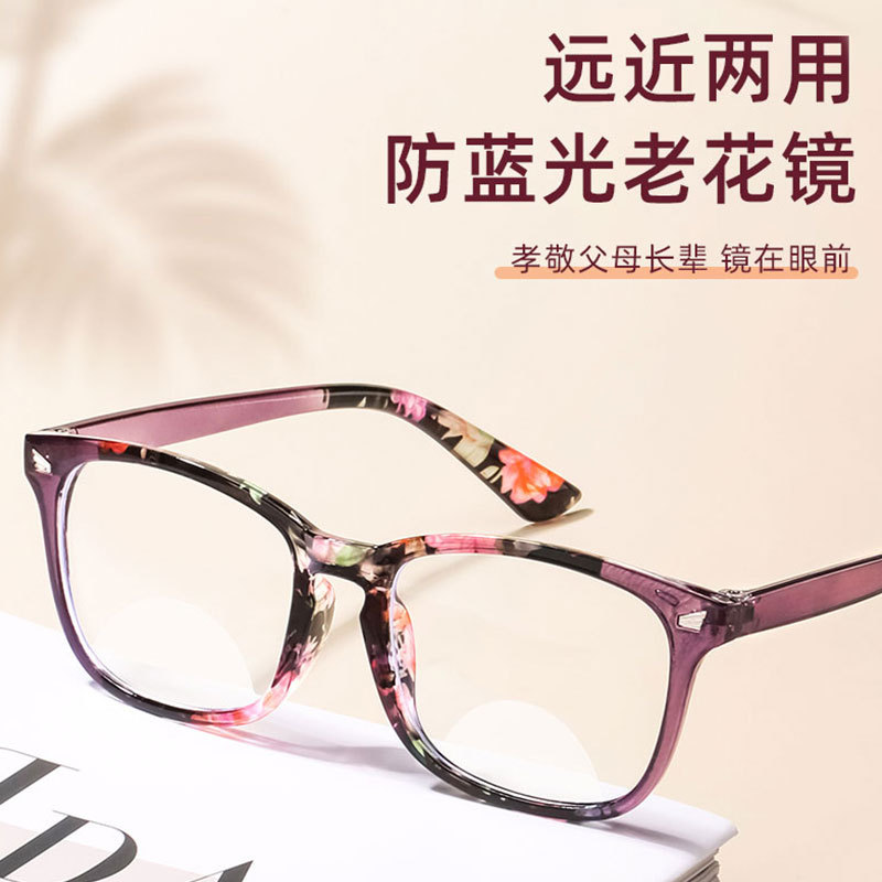 2024新款跨境包花老花镜防蓝光时尚远近两用老花双光眼镜超轻外贸
