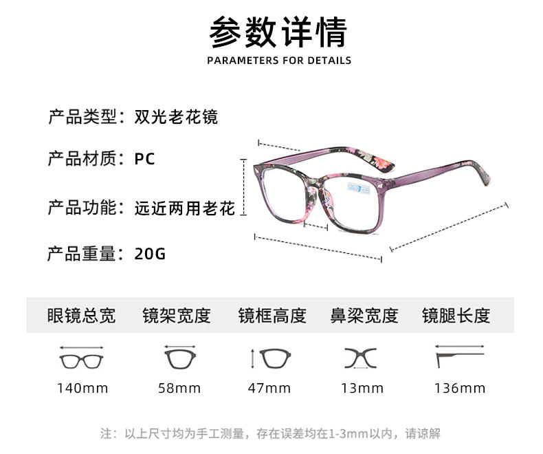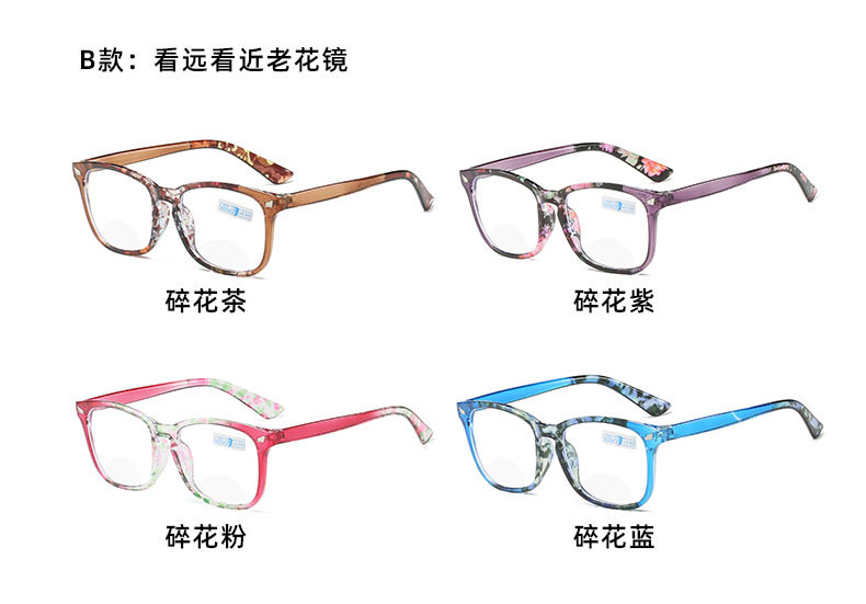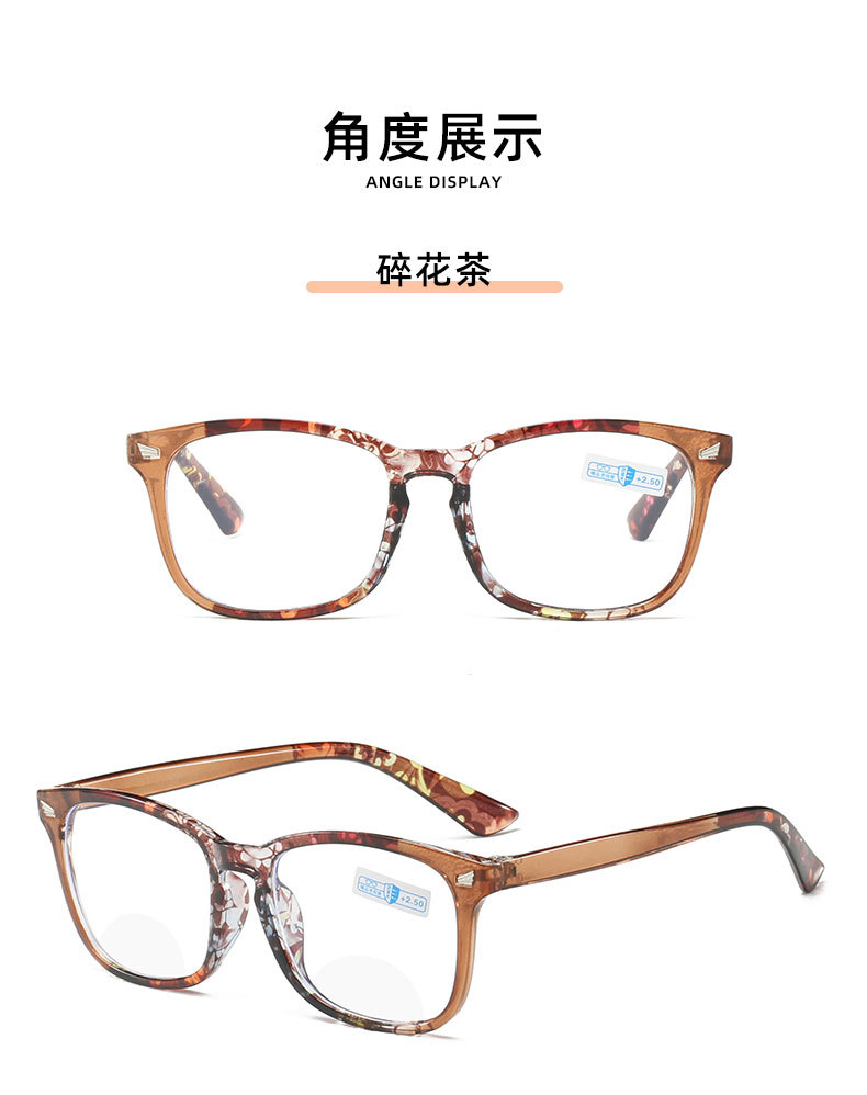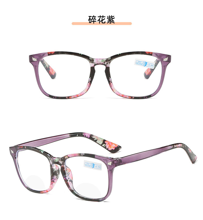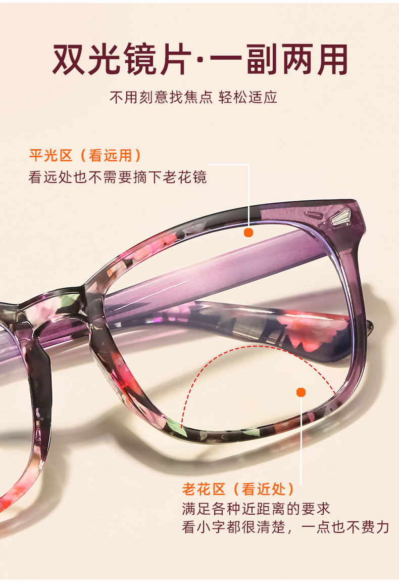 2024新款跨境包花老花镜防蓝光时尚远近两用老花双光眼镜超轻外贸