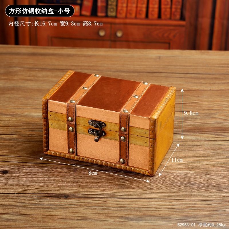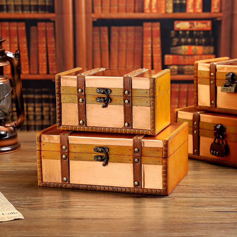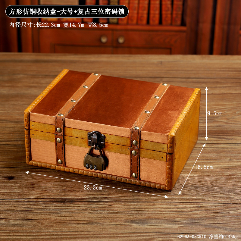 复古木质桌面收纳盒带锁古风饰品整理盒首饰盒密室逃脱道具密码盒