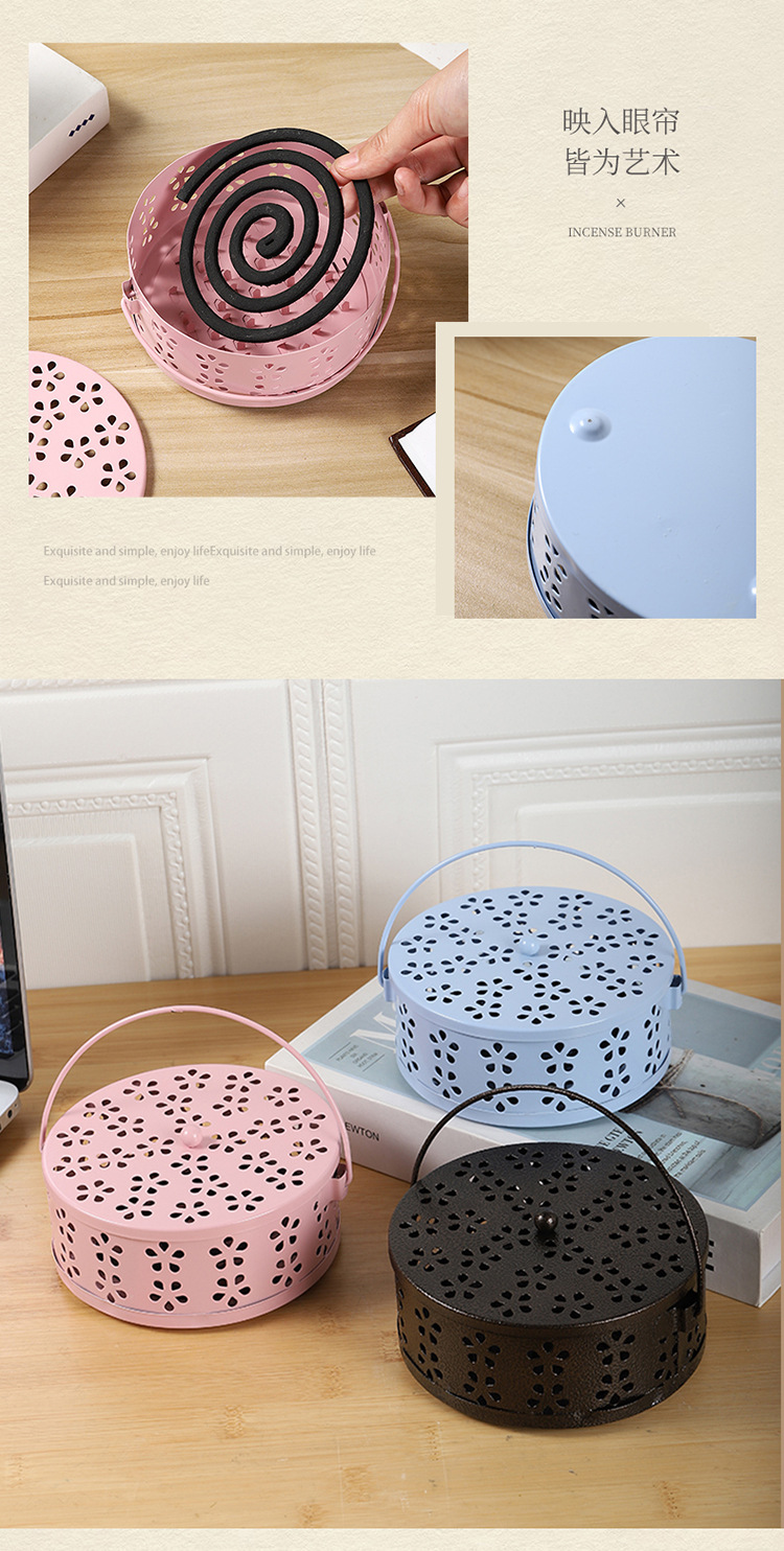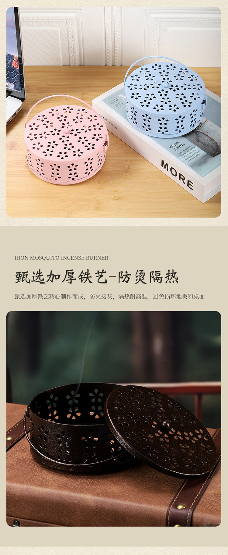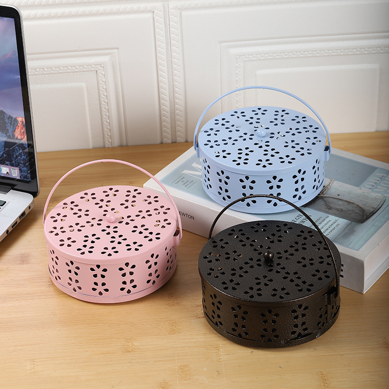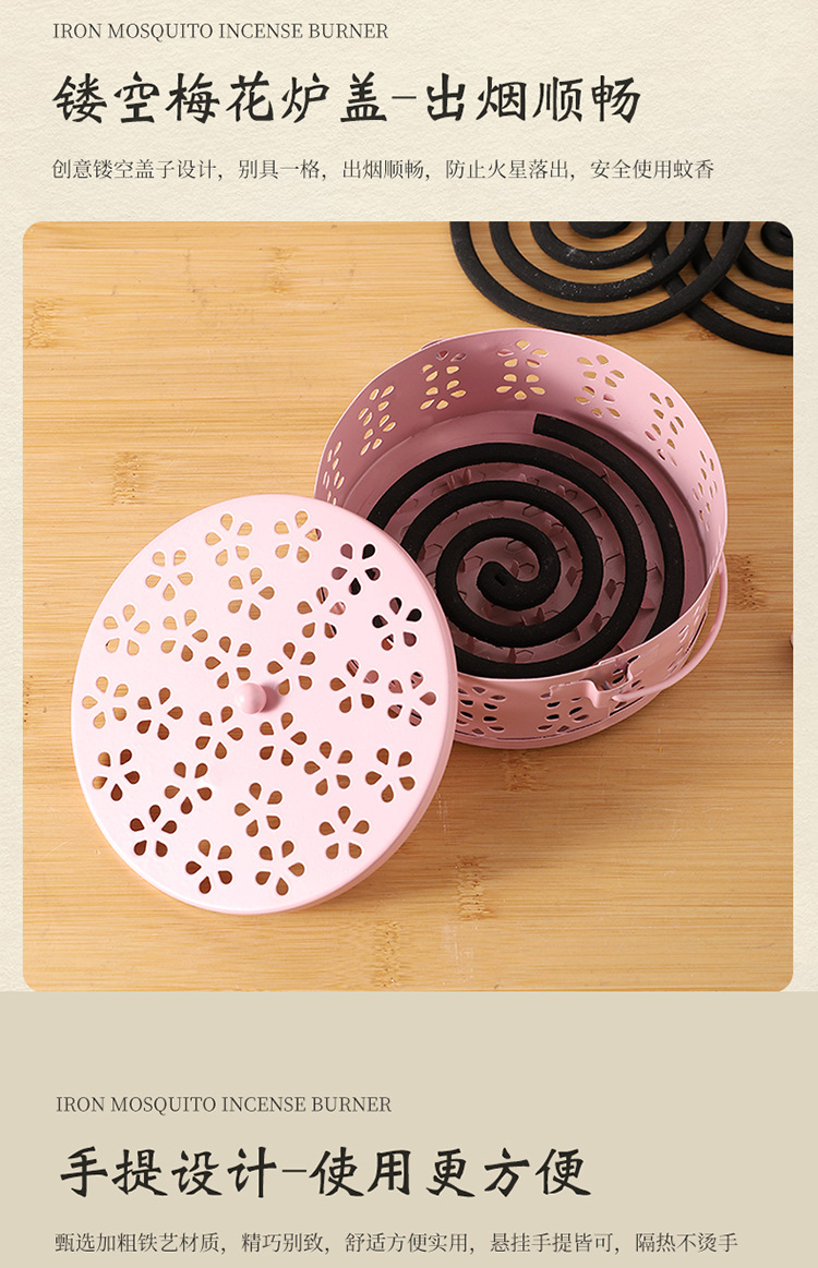简约纯色铁艺蚊香炉家居室内户外通用带盖防飞灰小号梅花纹蚊香架