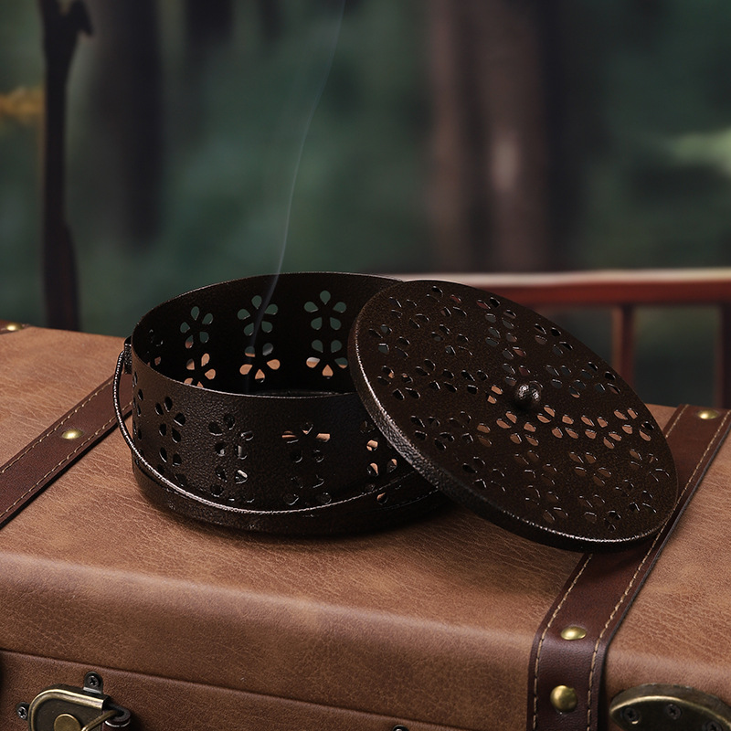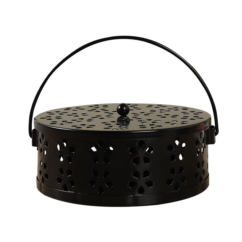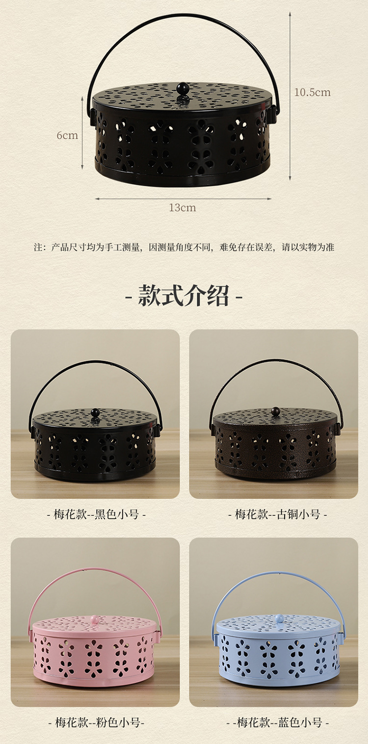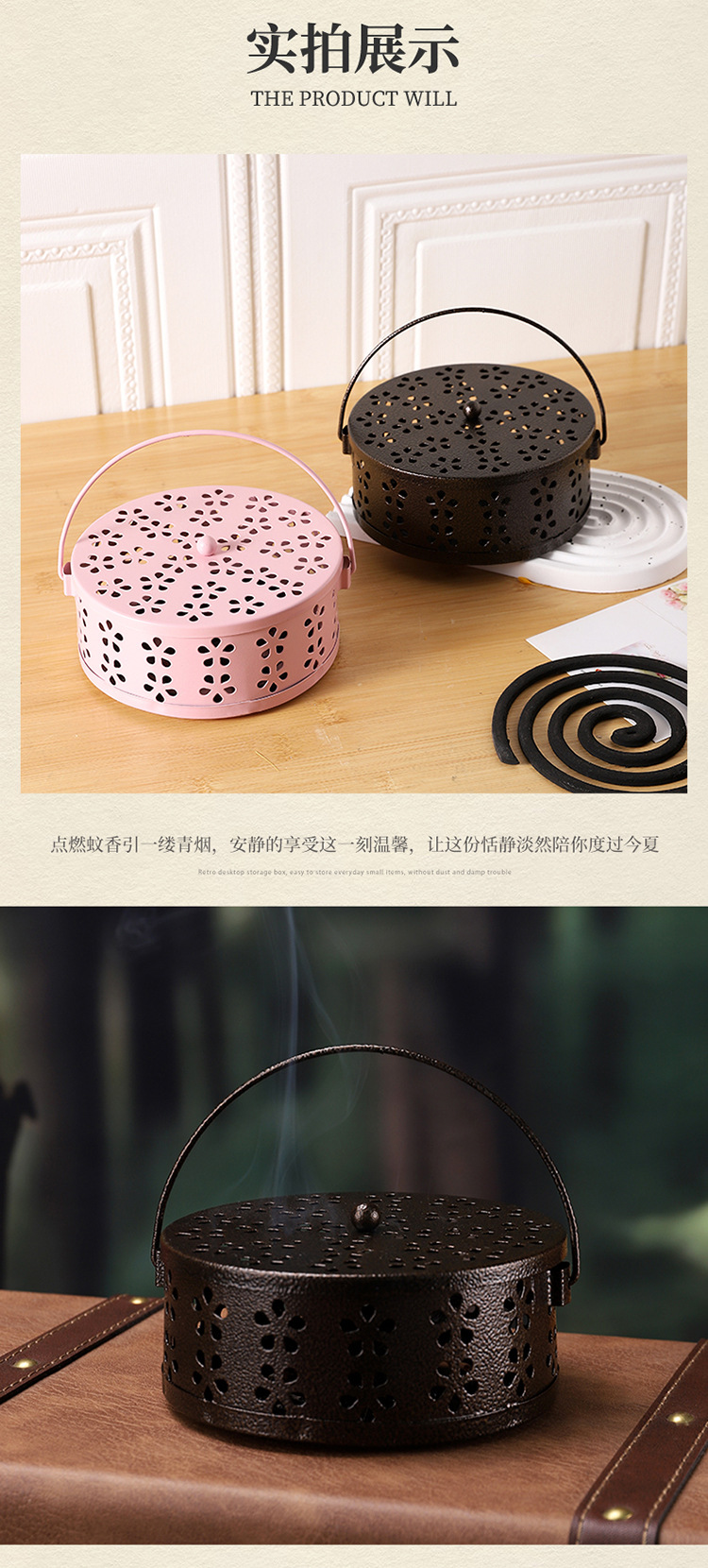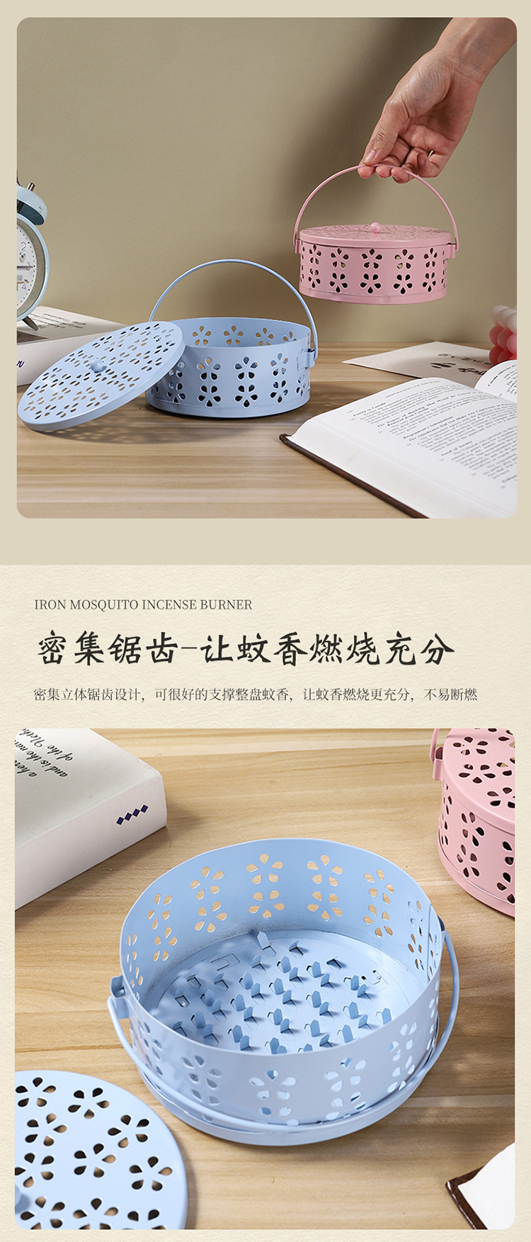 简约纯色铁艺蚊香炉家居室内户外通用带盖防飞灰小号梅花纹蚊香架